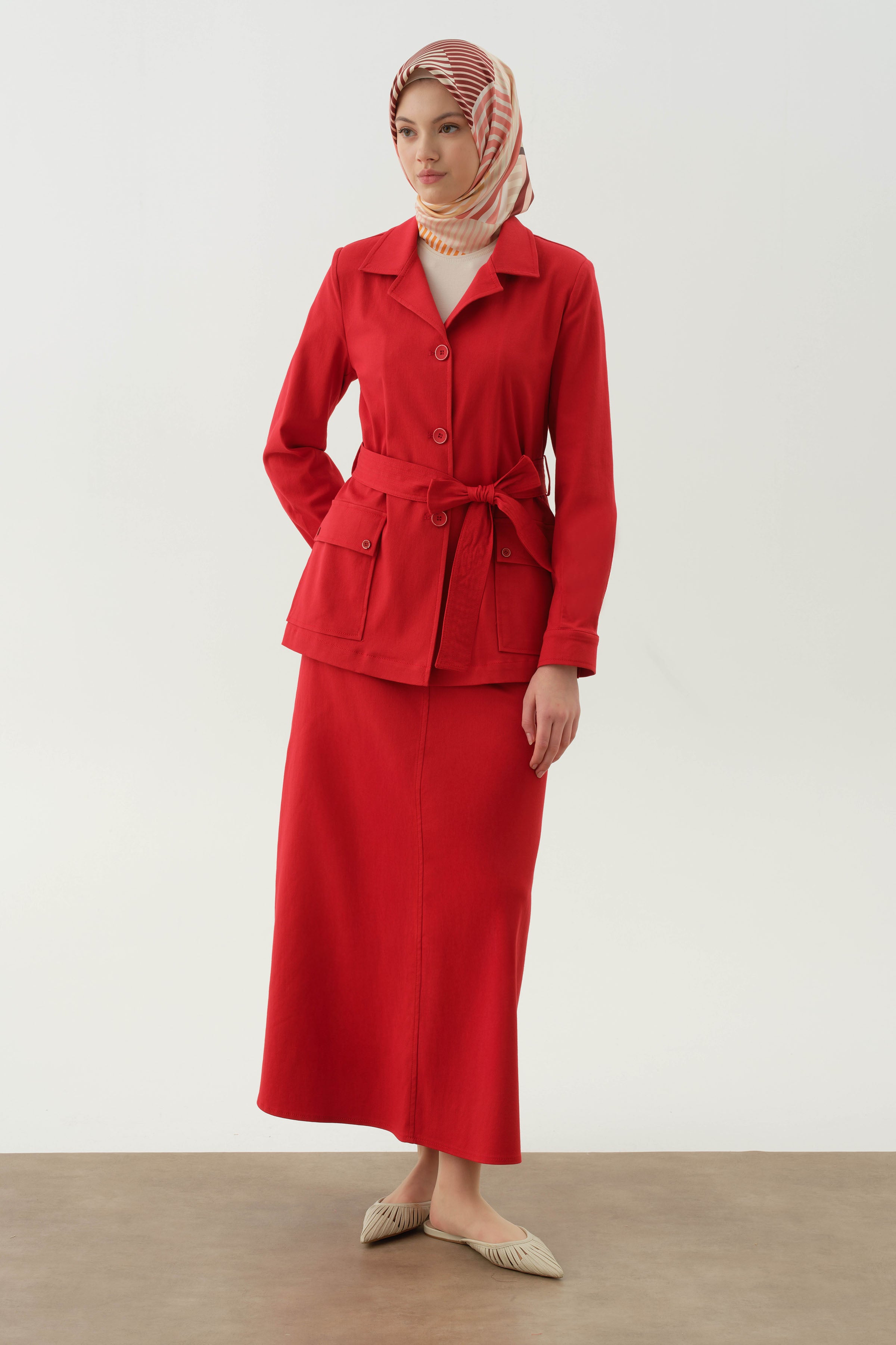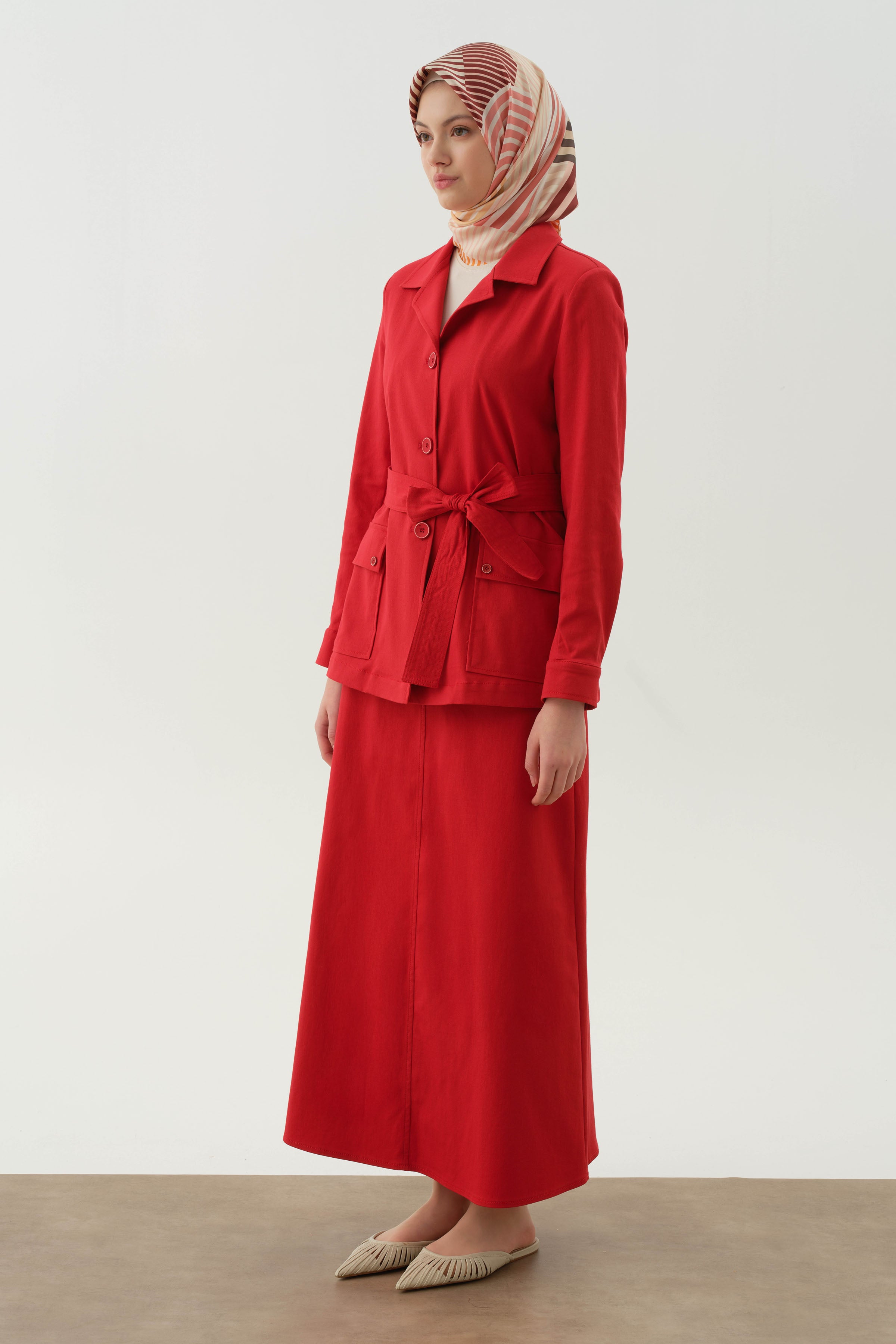 Offering both elegance and practicality with its five different pocket details, this skirt has a modern and functional design. While providing a simple look with its straight cut, it adds a dynamic air with its pocket details. It easily accompanies your daily combinations.