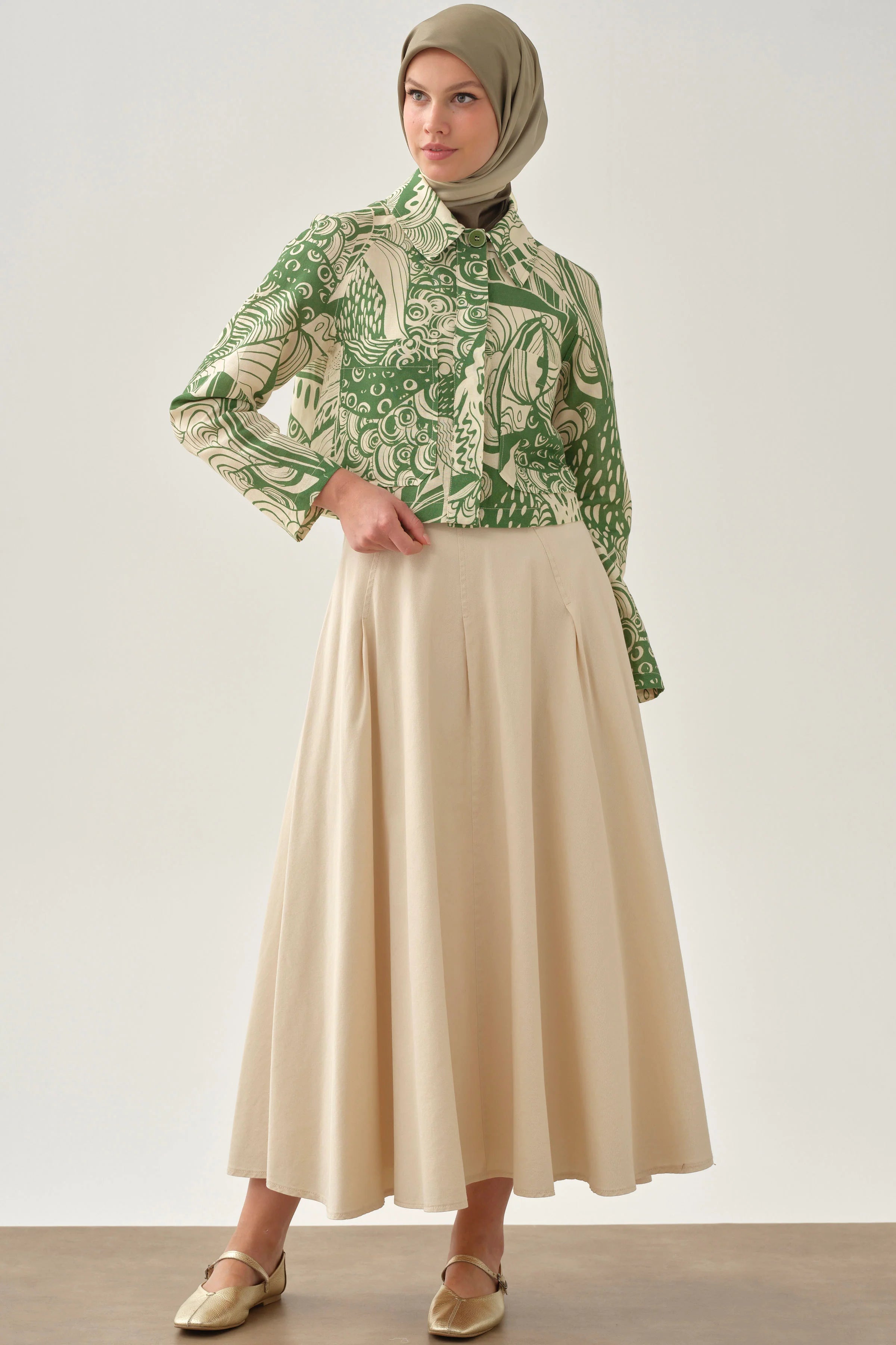 Crop Jacket and Pleated Detail Skirt Suit - Khaki