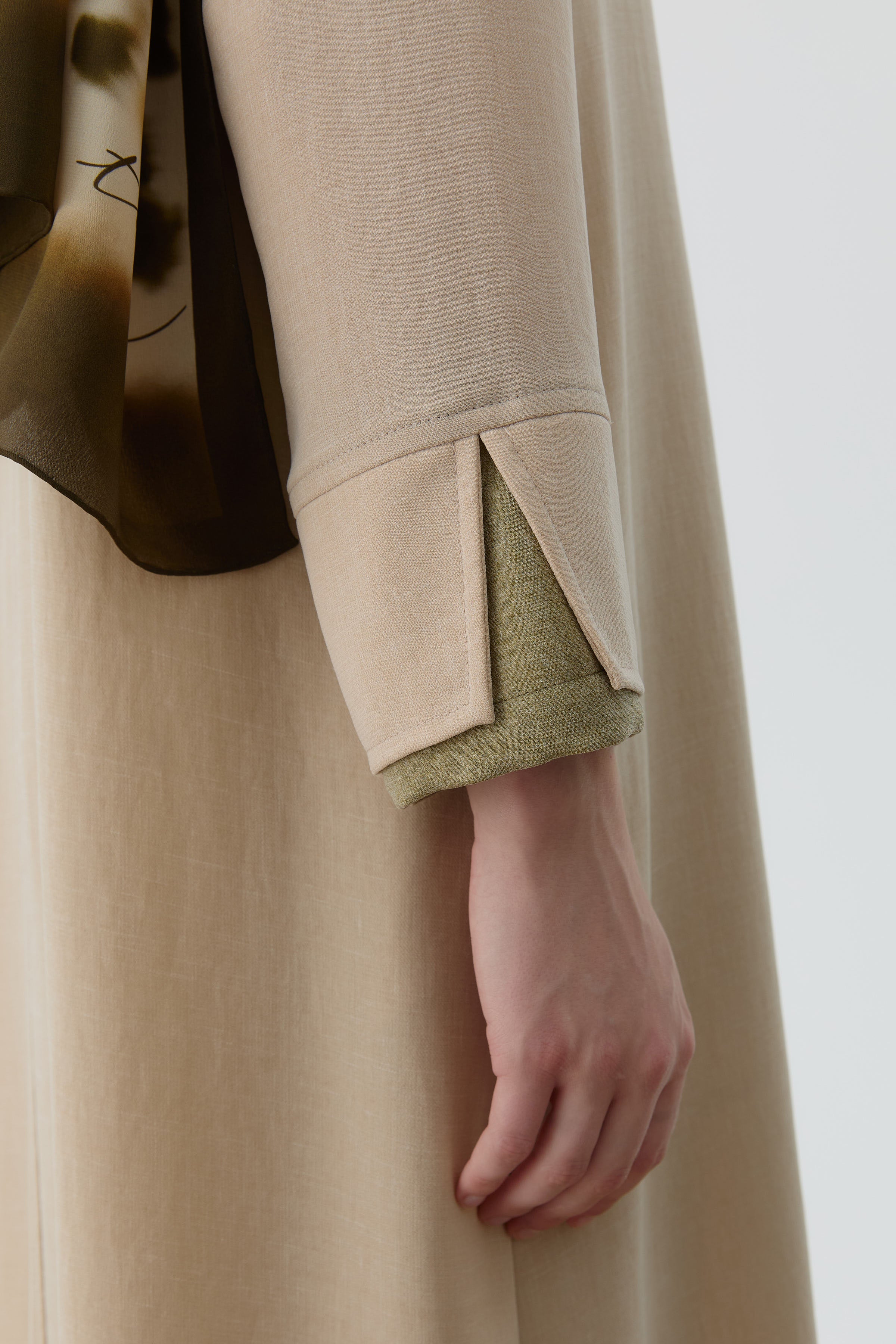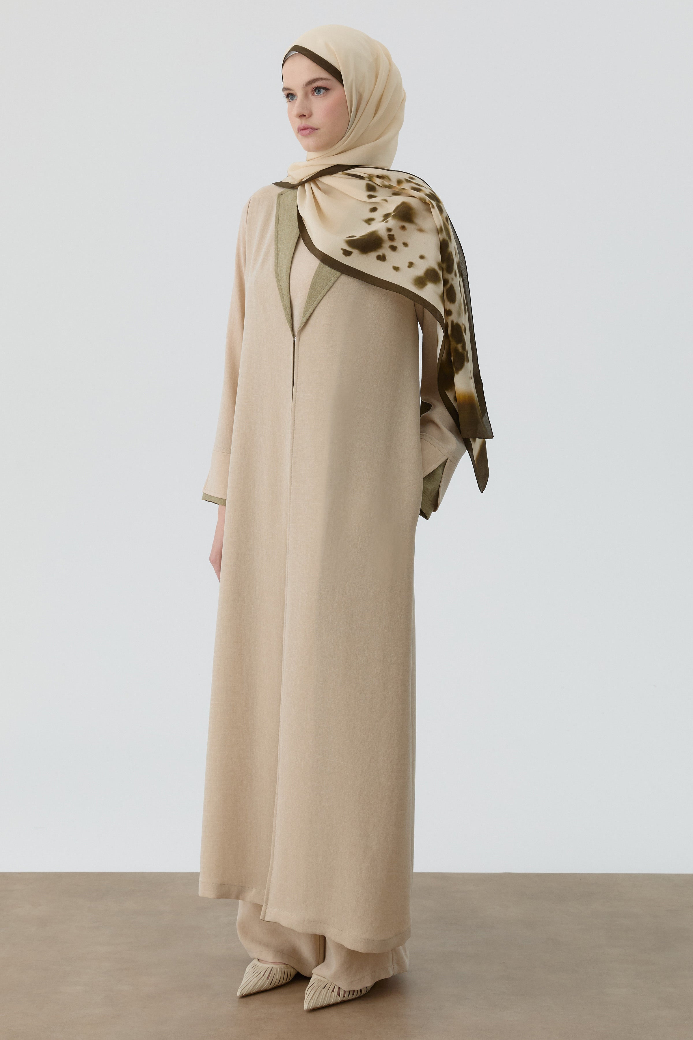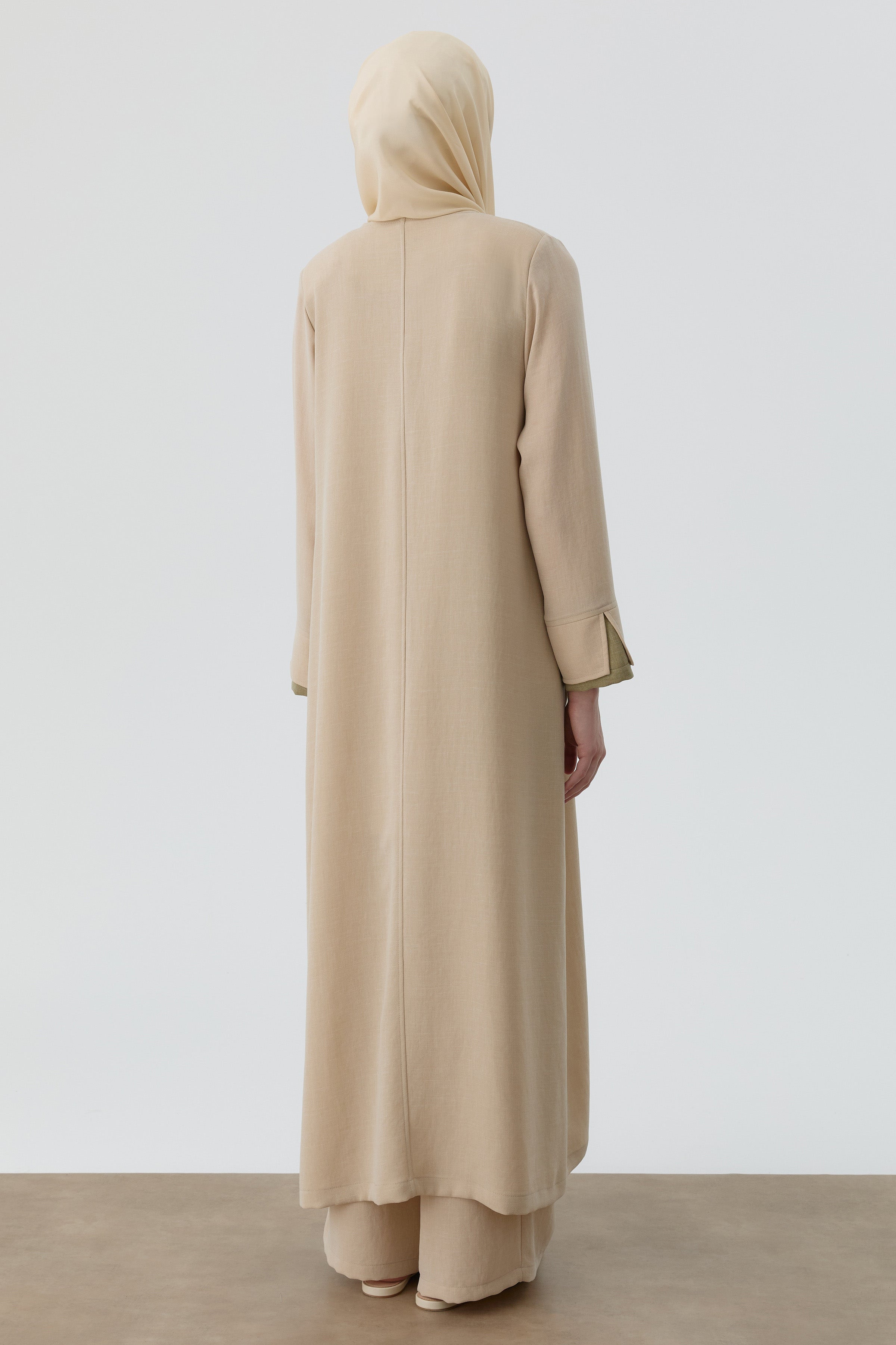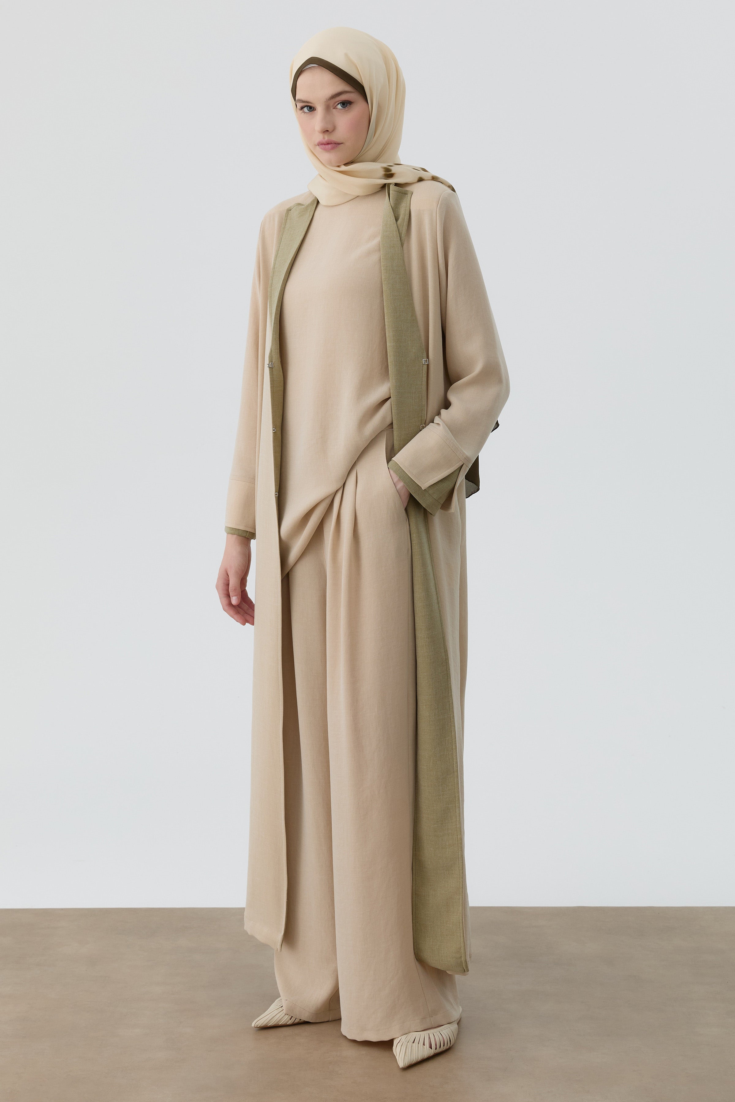 Completed with a simple, flowing tunic on the inside and a modern-cut jacket on the outside, this suit is an ideal choice for those seeking both comfort and style.