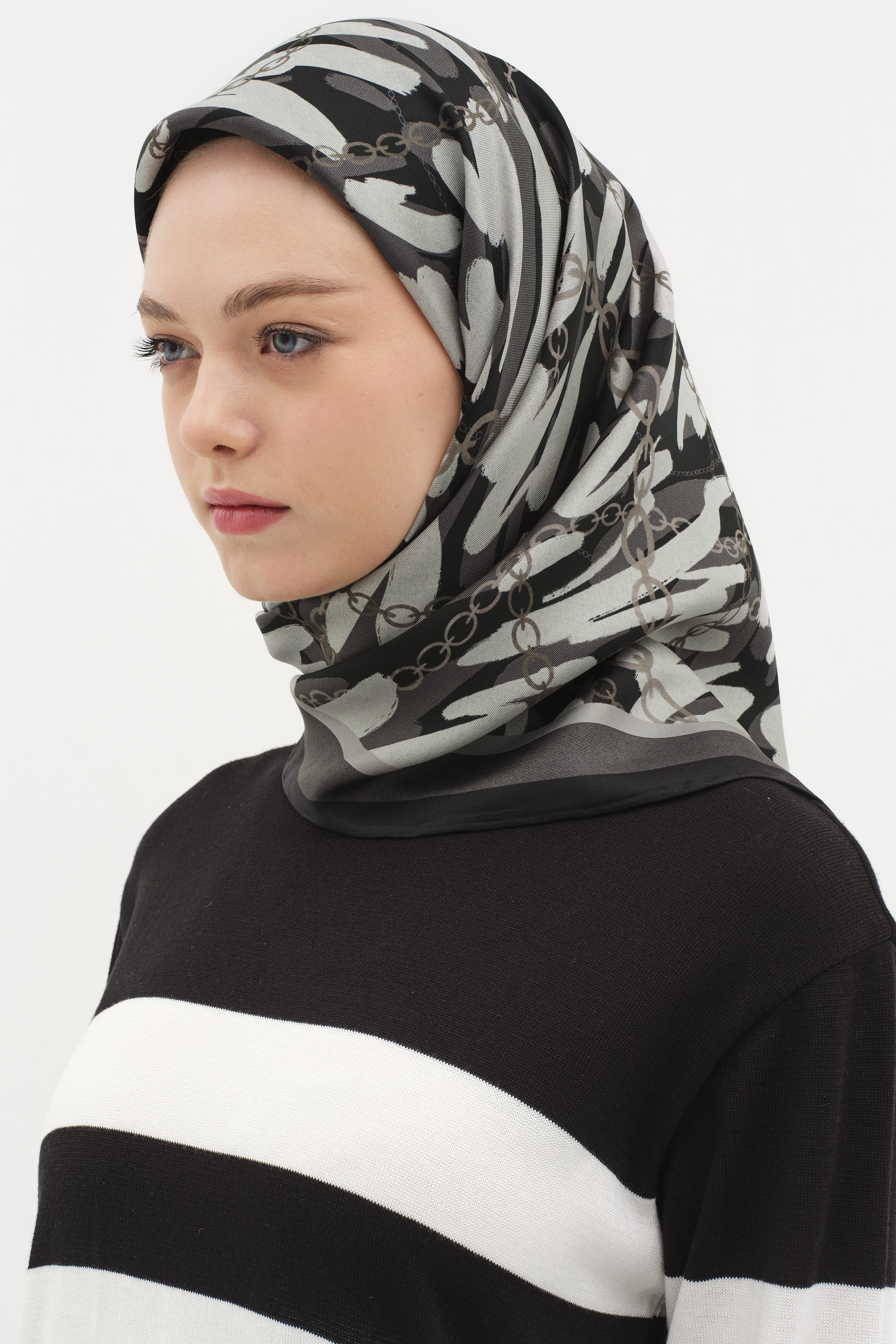 This chain-patterned twill silk scarf combines modern elegance with classic lines. Its soft texture and glossy finish make it the perfect choice for those looking to complete their look.