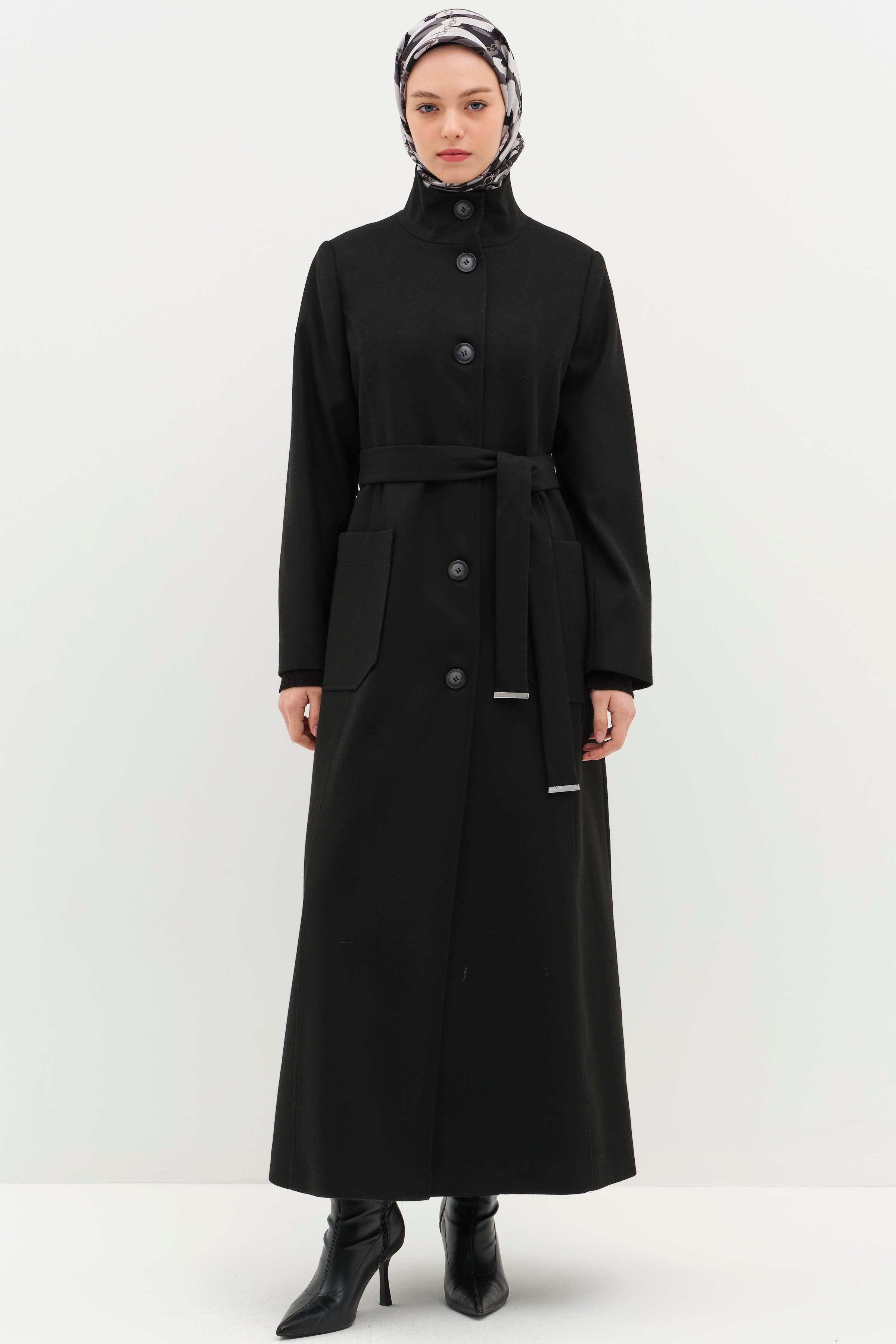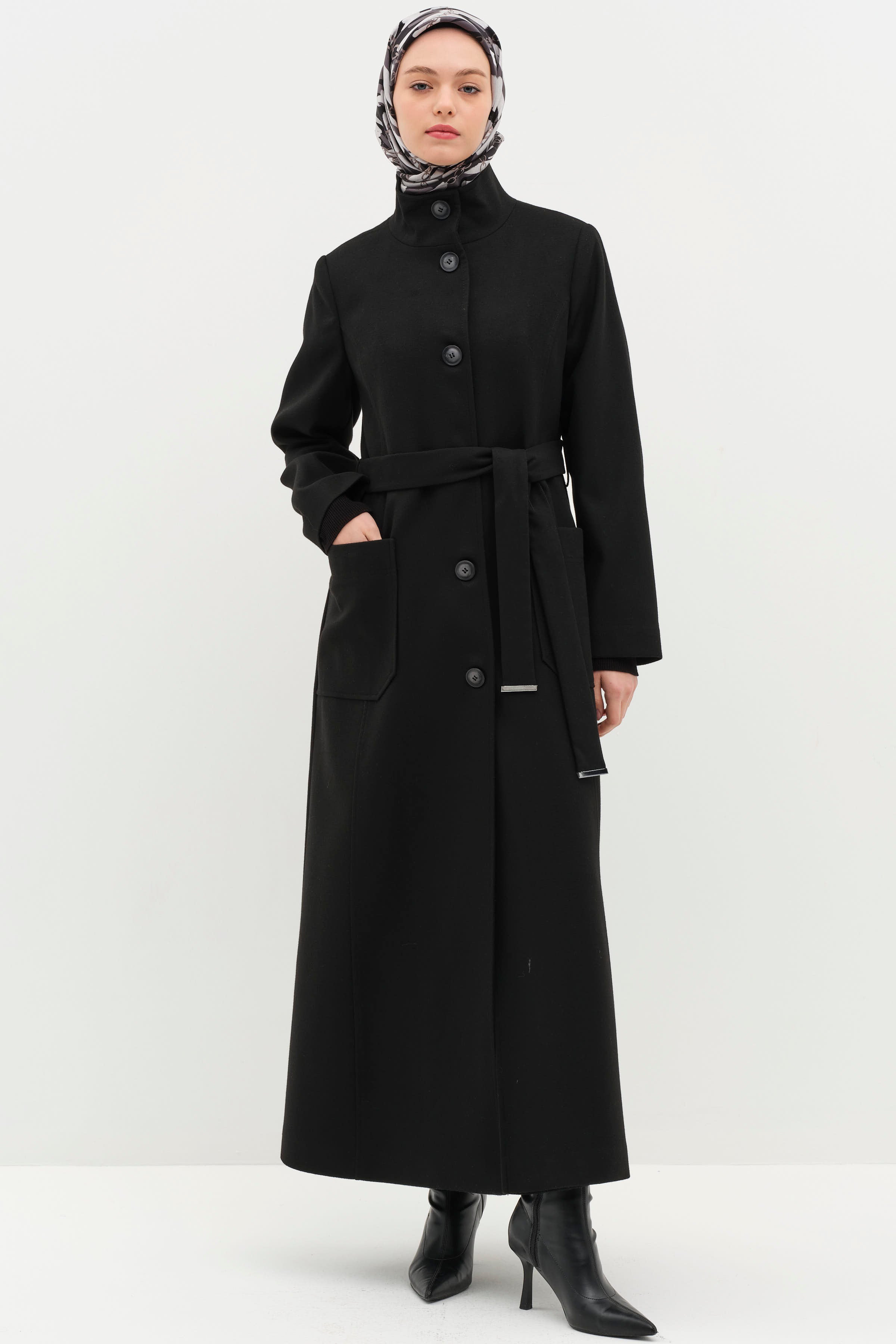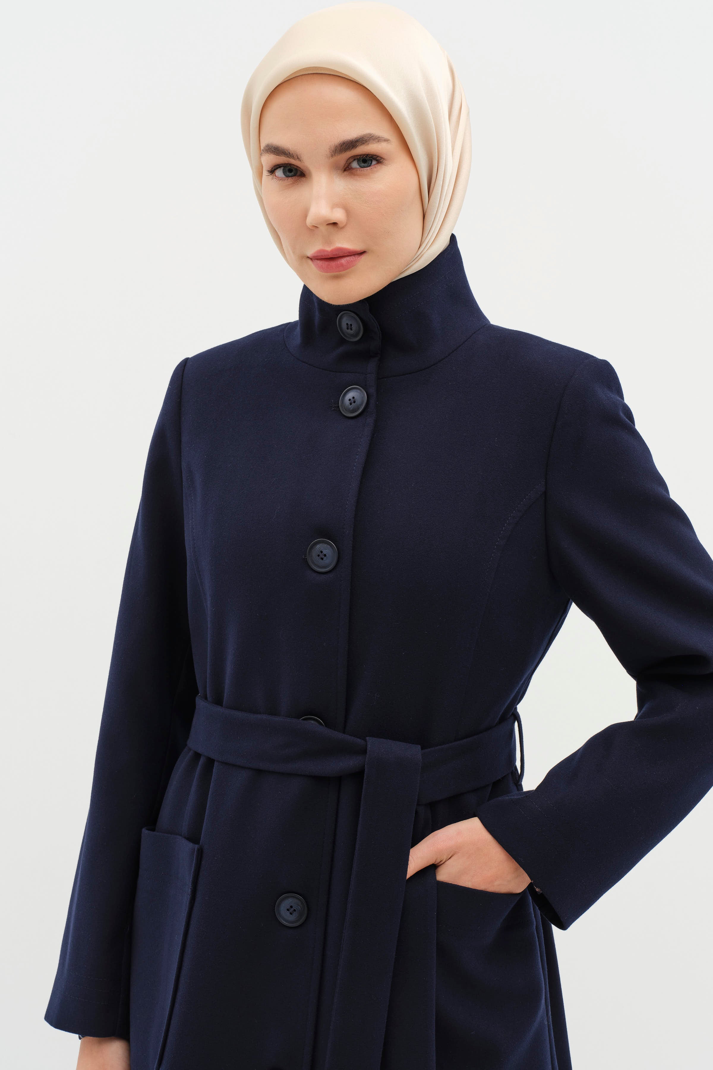Featuring a high collar and belted waist, this coat offers an elegant silhouette, combining style and functionality. The belted design accentuates your figure, while the high collar adds a modern and sophisticated touch.