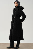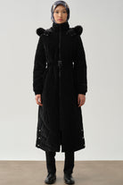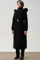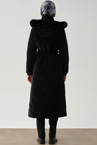 Slit Detailed Hooded Quilted Coat - Black