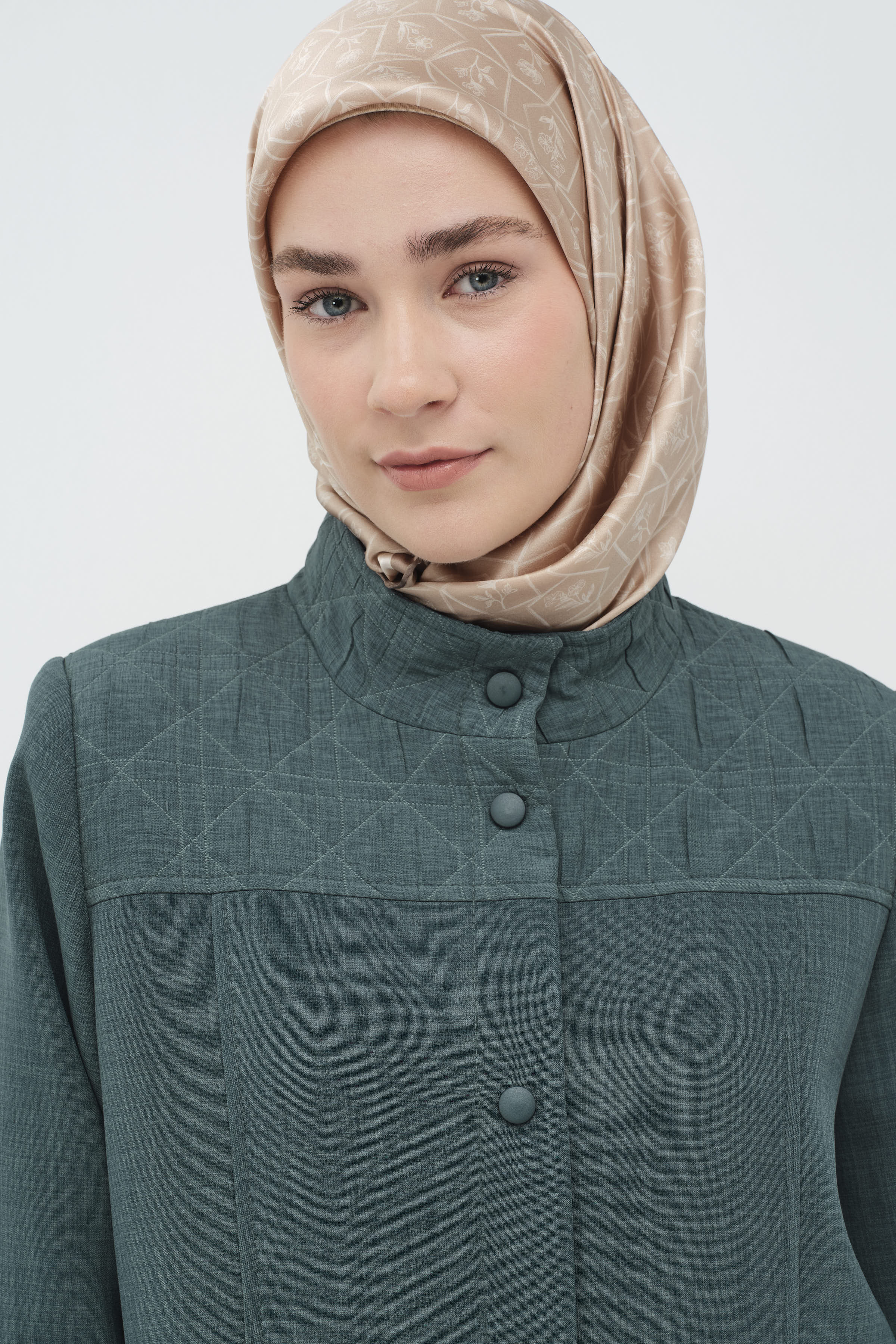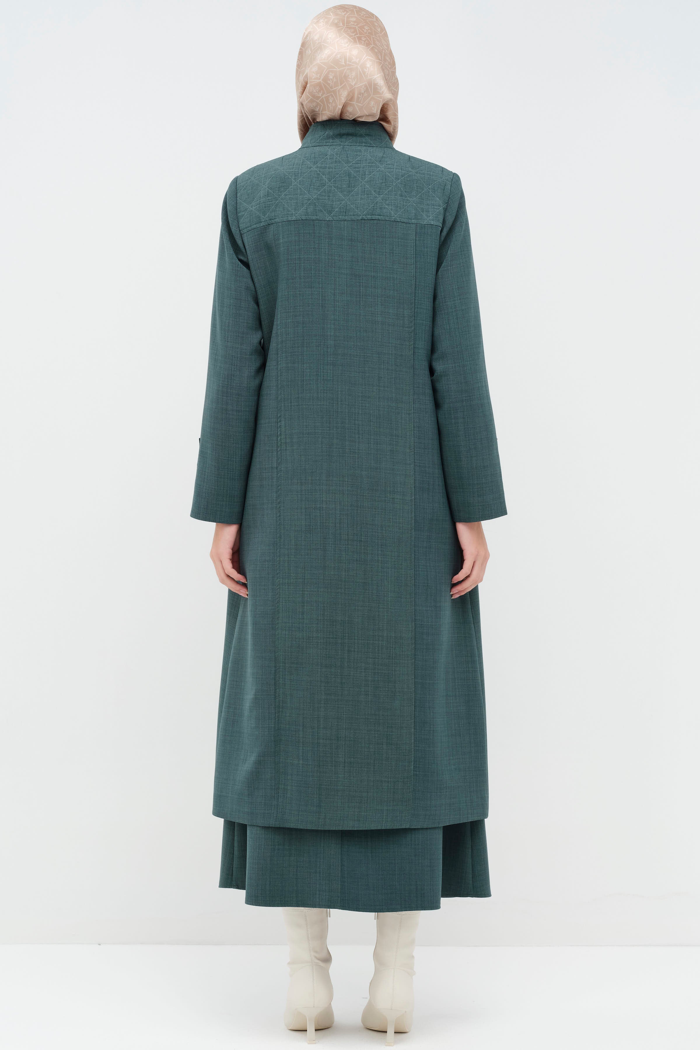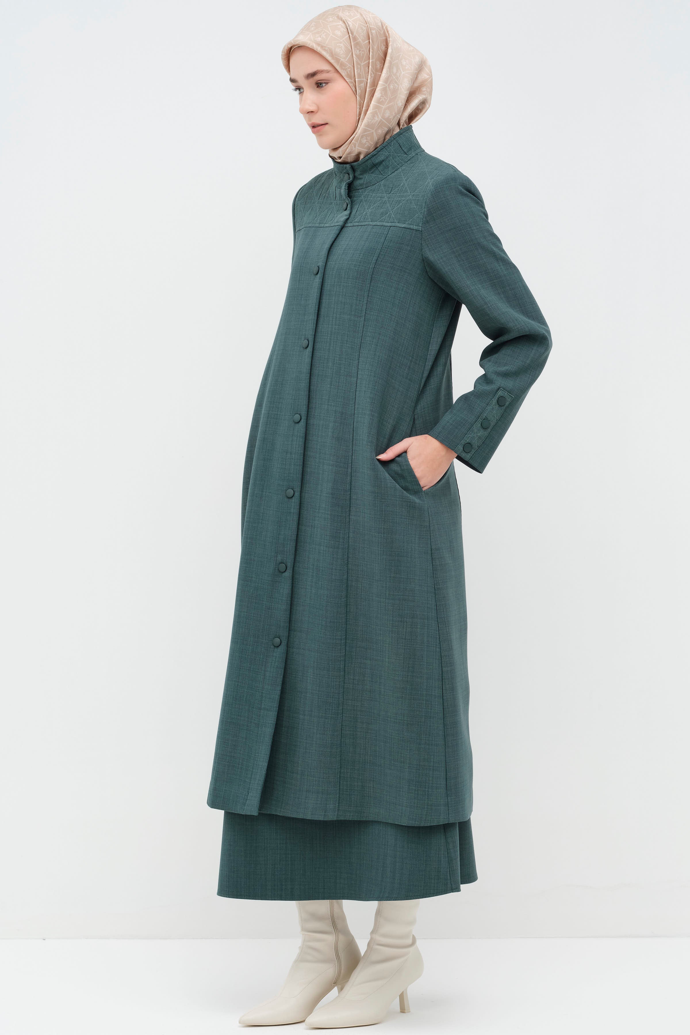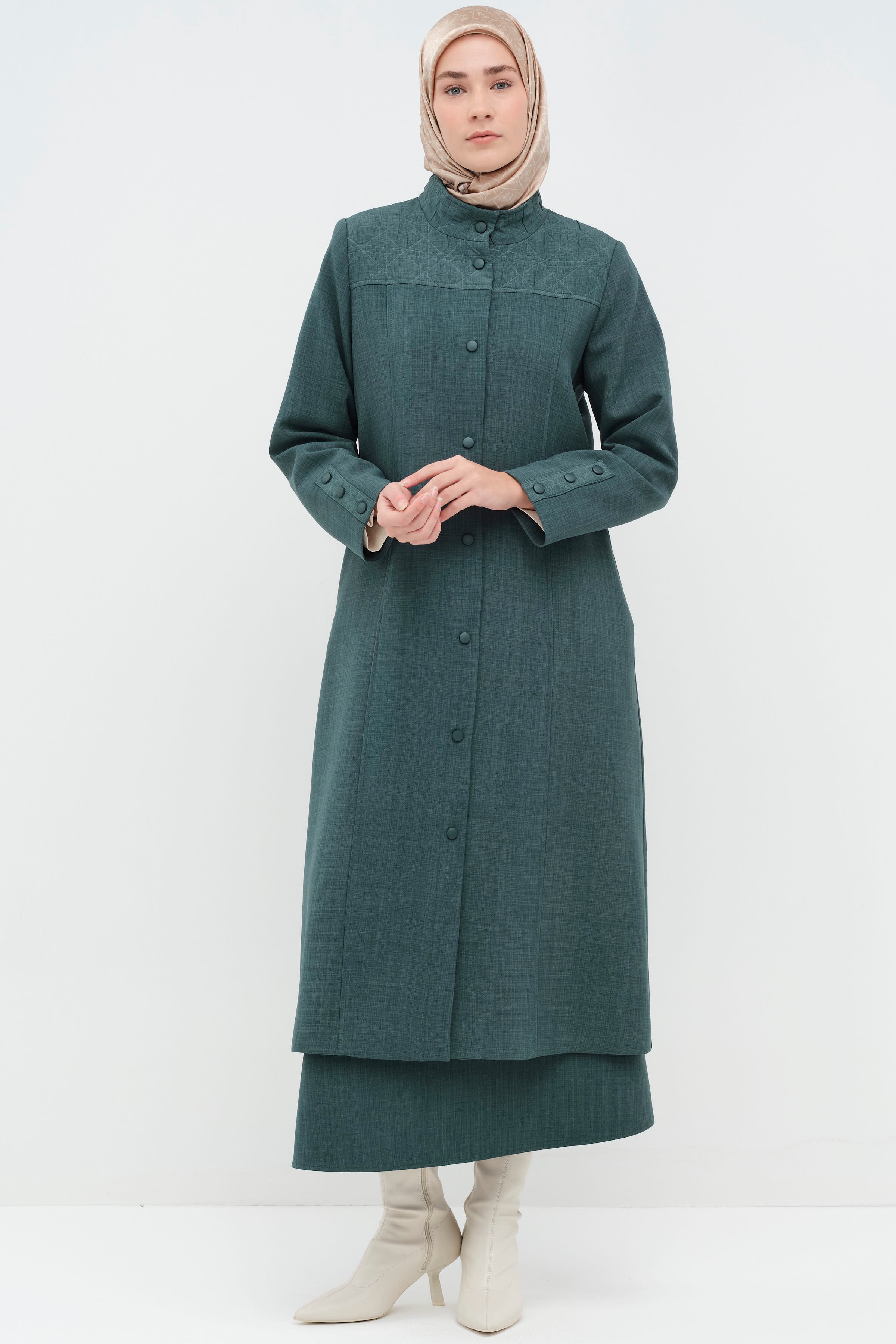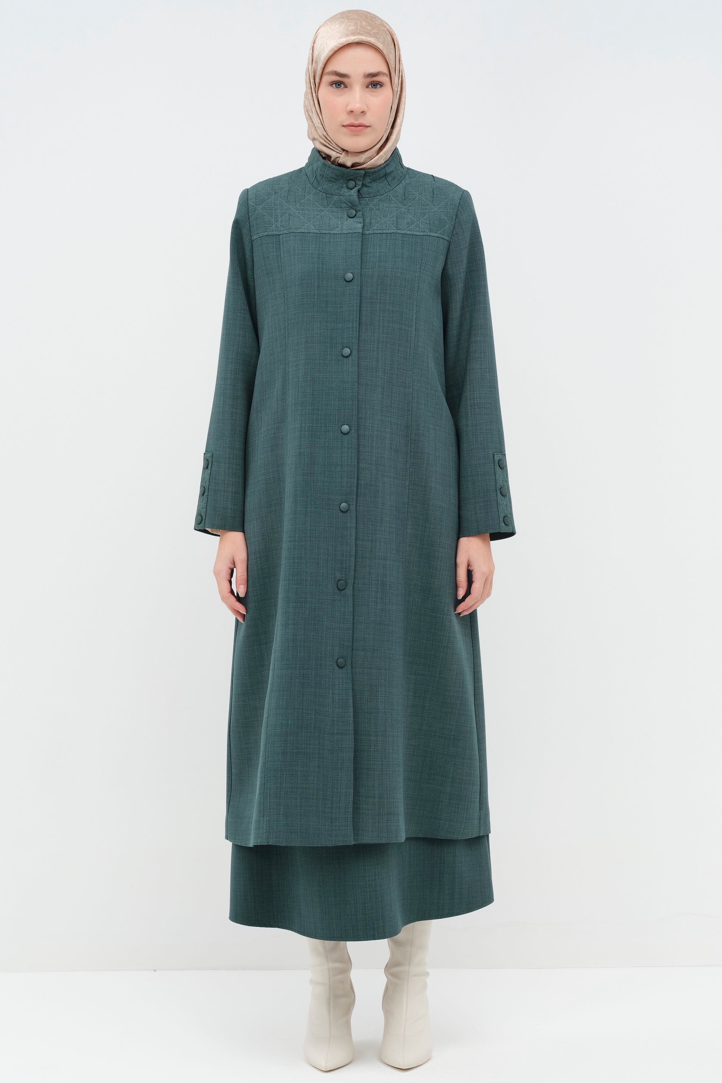 Combining style with practicality through its embellished design and snap closure, this coat offers a modern look. Its flowing cut and fine details provide both comfort and elegance for everyday wear.