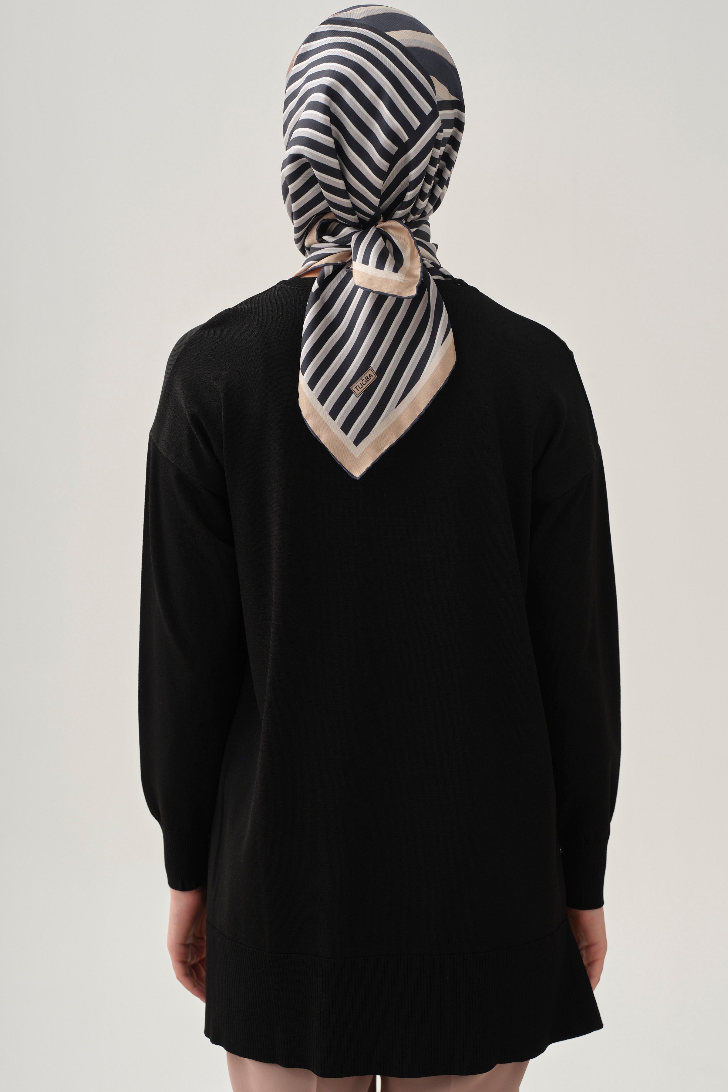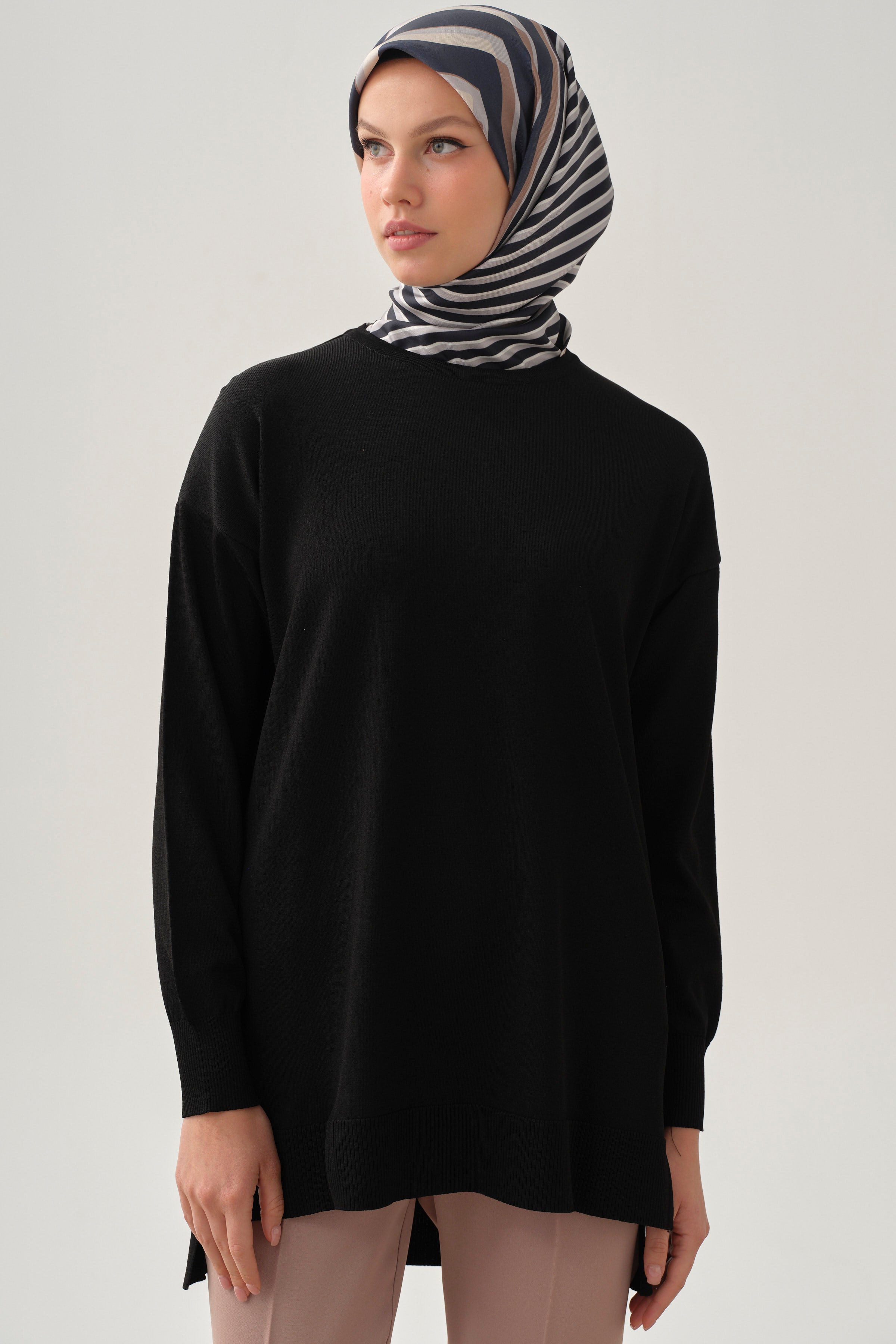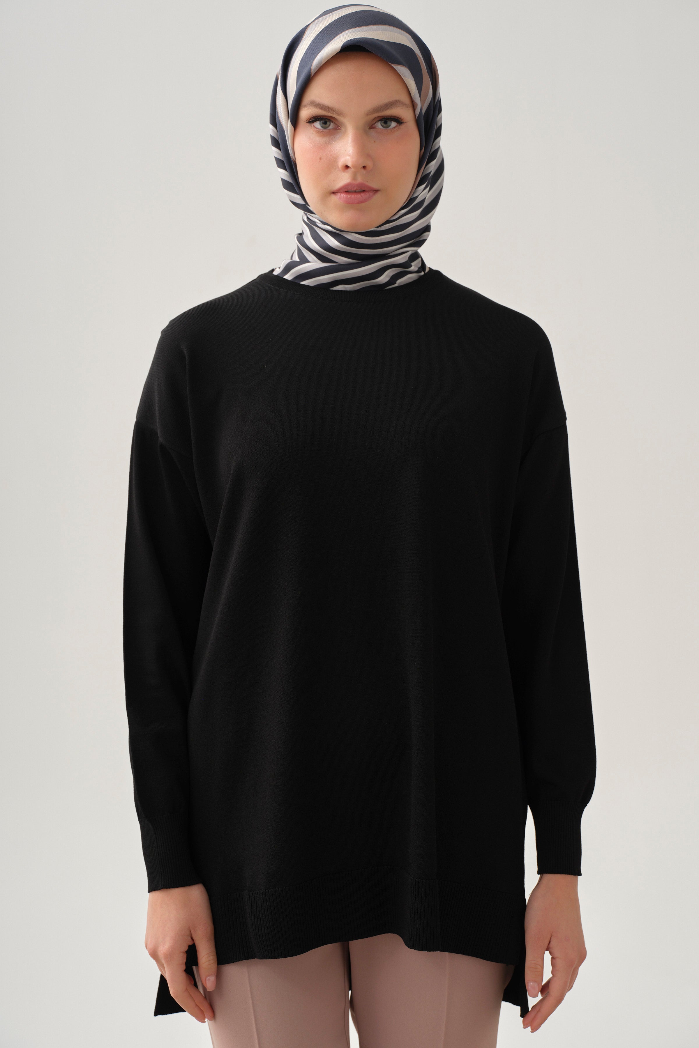 Standing out with its minimal and timeless design, the plain knit tunic offers all-day comfort with its soft texture. Thanks to its comfortable cut, it can be used both at home and outside with pleasure. It is an ideal option for those looking for simple elegance on cold days.