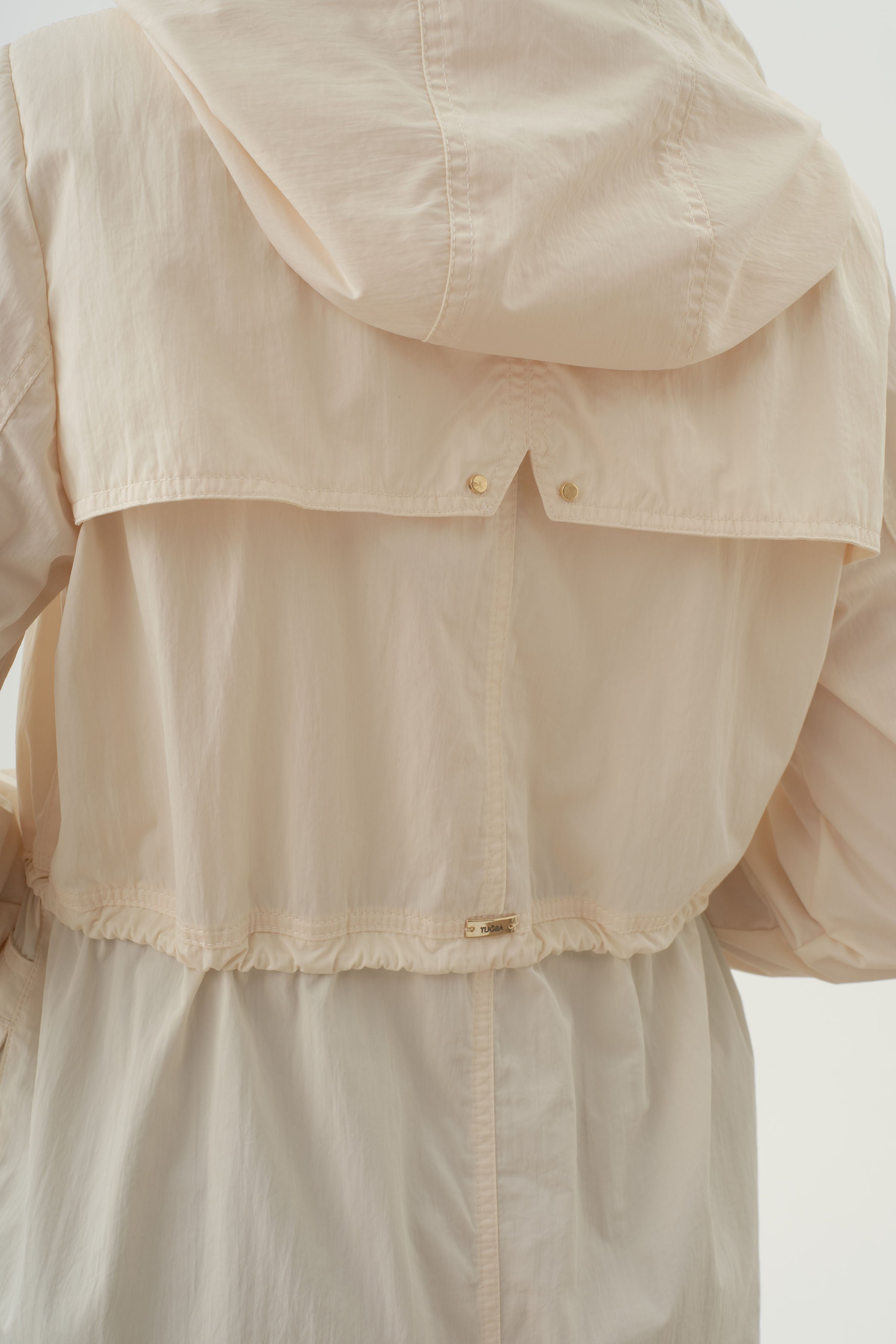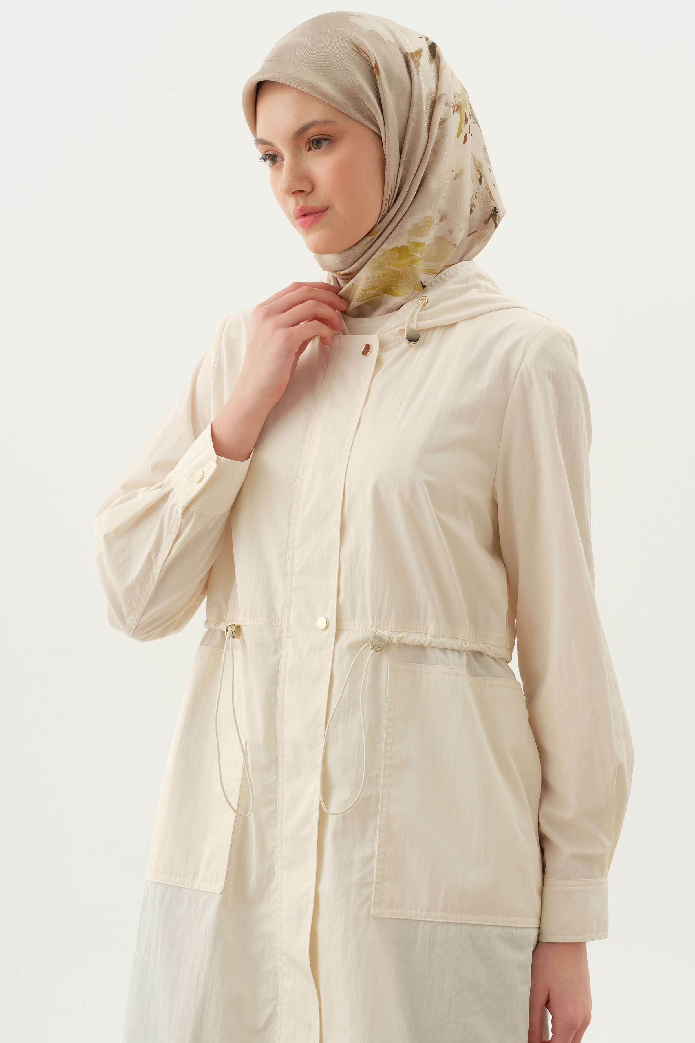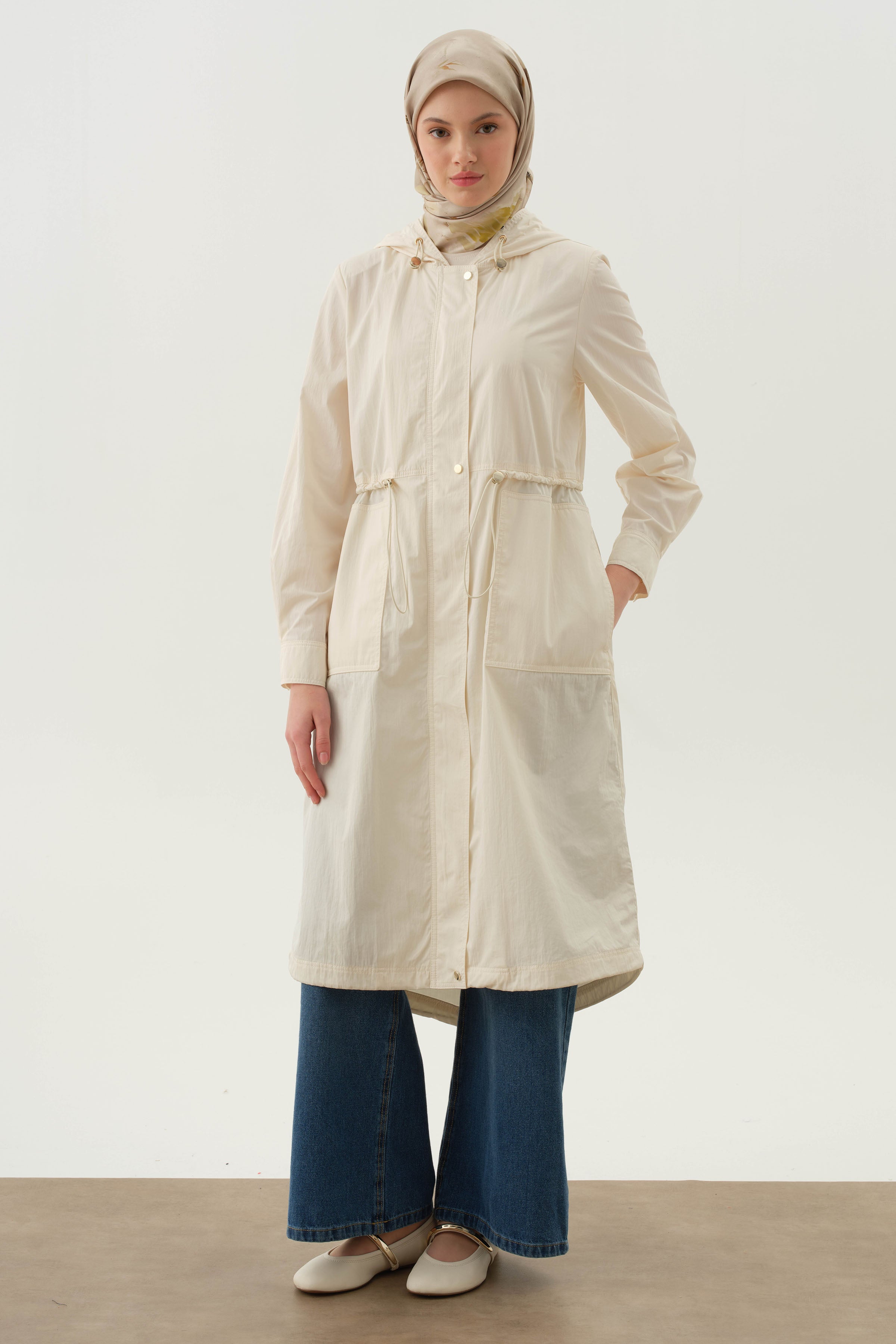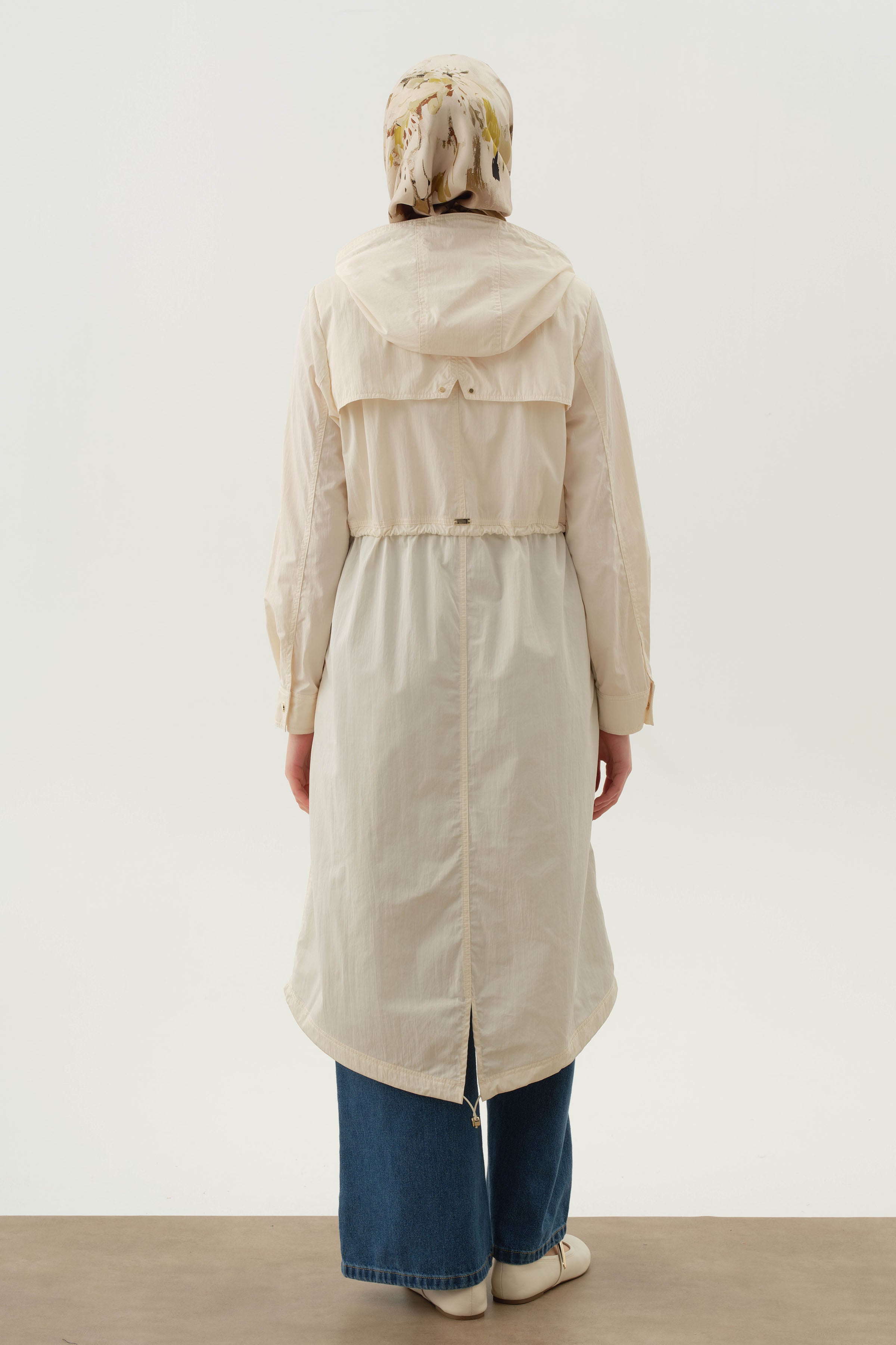 Hooded Elastic Detailed Coat - Ecru