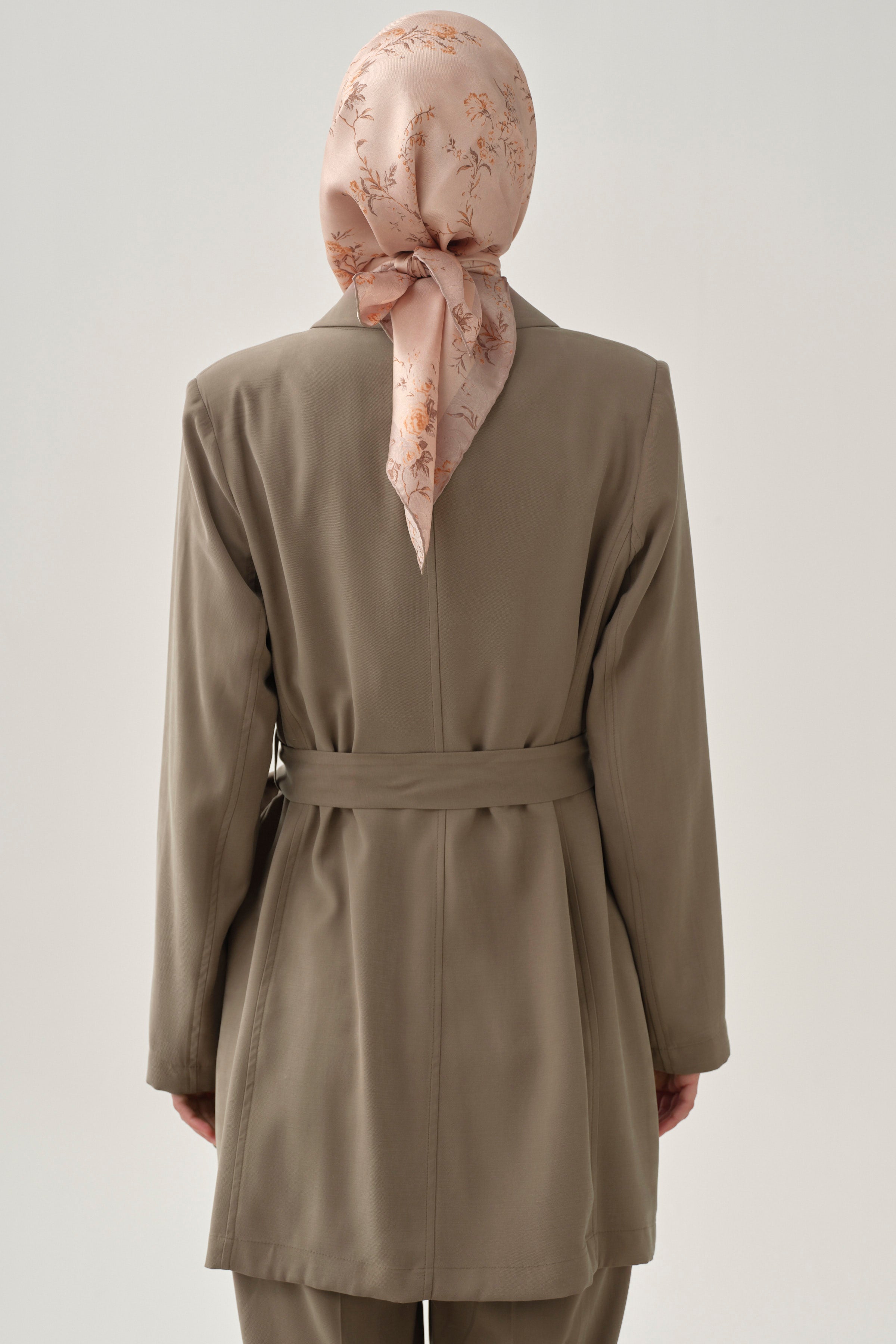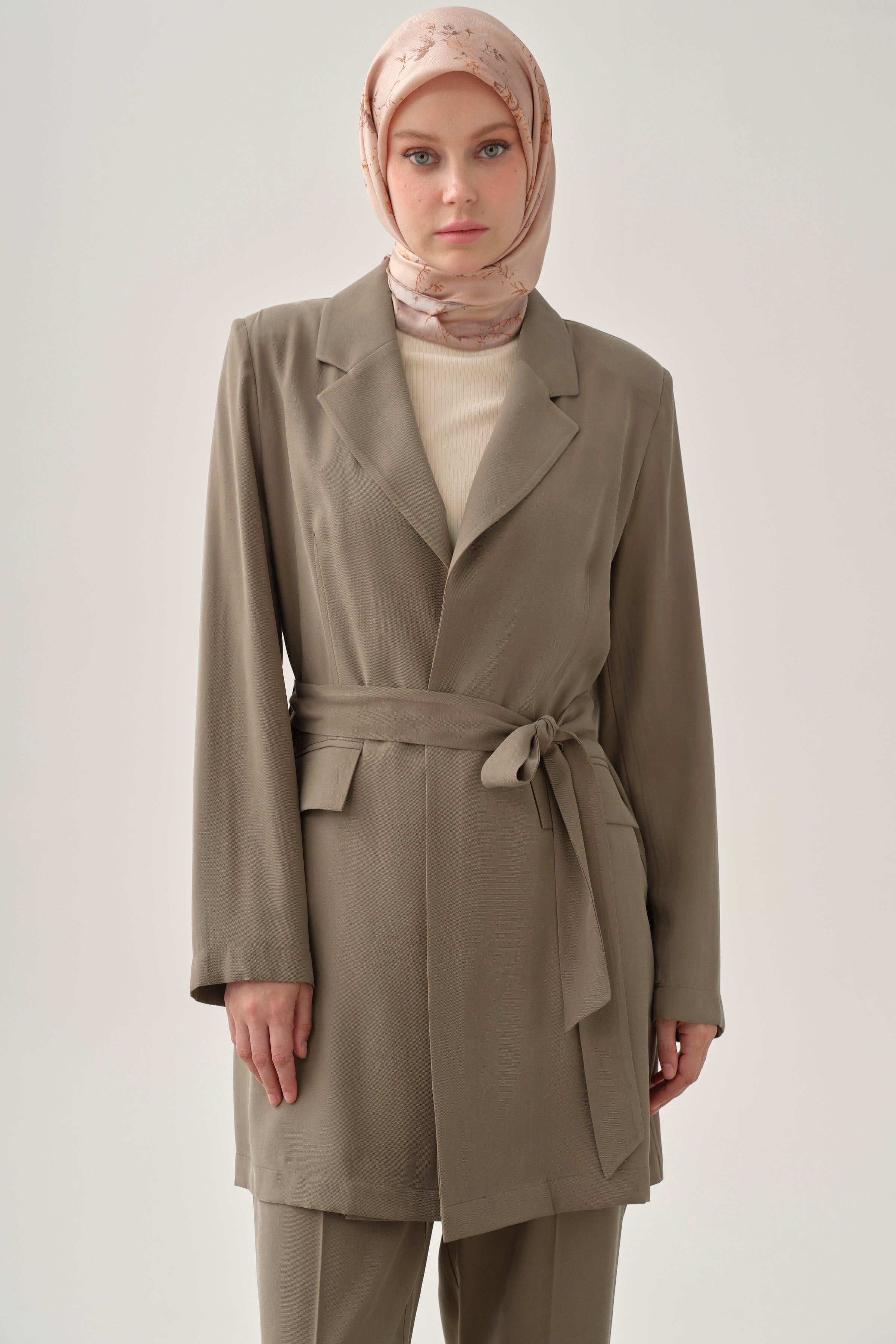 Classic elegance shaped with modern lines: Belted Blazer Jacket is a candidate to be an indispensable piece for stylish women. Thanks to the belt detail on the waist, it elegantly reveals the body form and offers a feminine and strong silhouette.