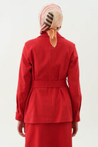 This jacket, which elegantly emphasizes the body shape with its belt detail at the waist, offers both elegance and functionality with its pockets. It easily adapts to daily and office style with its modern cut. It is a timeless piece that can be used in every season.