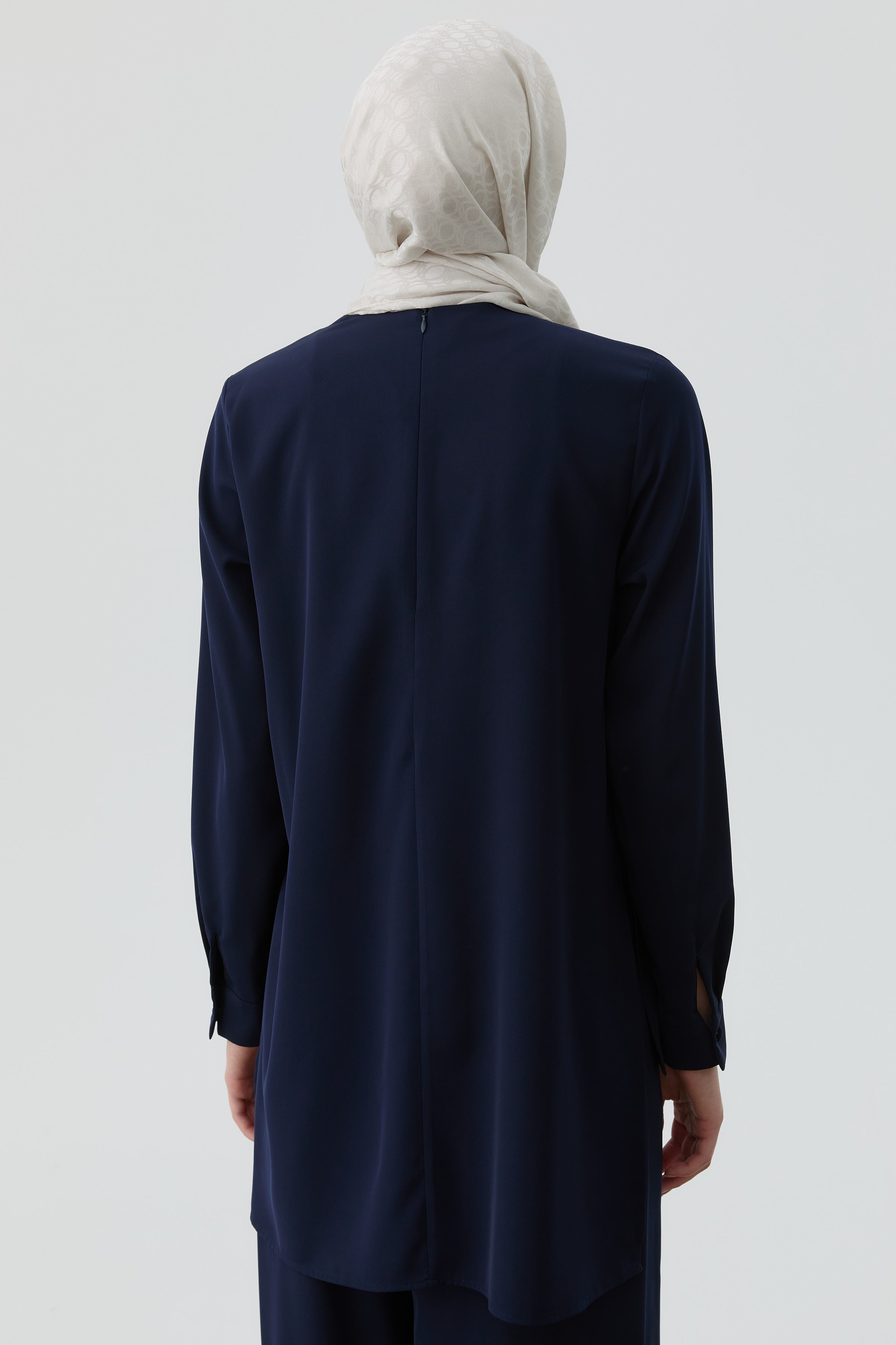 This blouse tunic, which gains momentum with its side slit details, adds modern dynamism to its simple design.