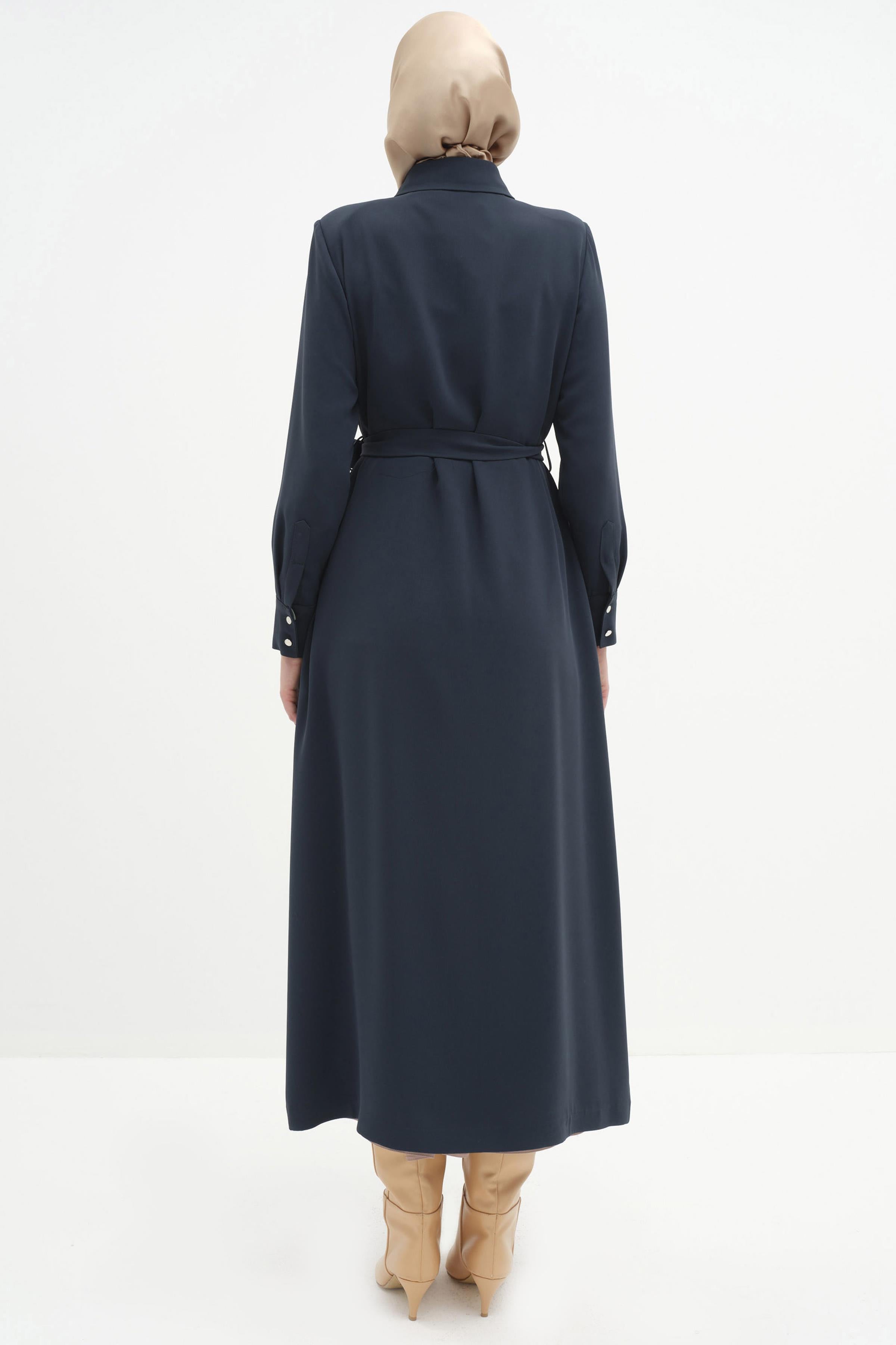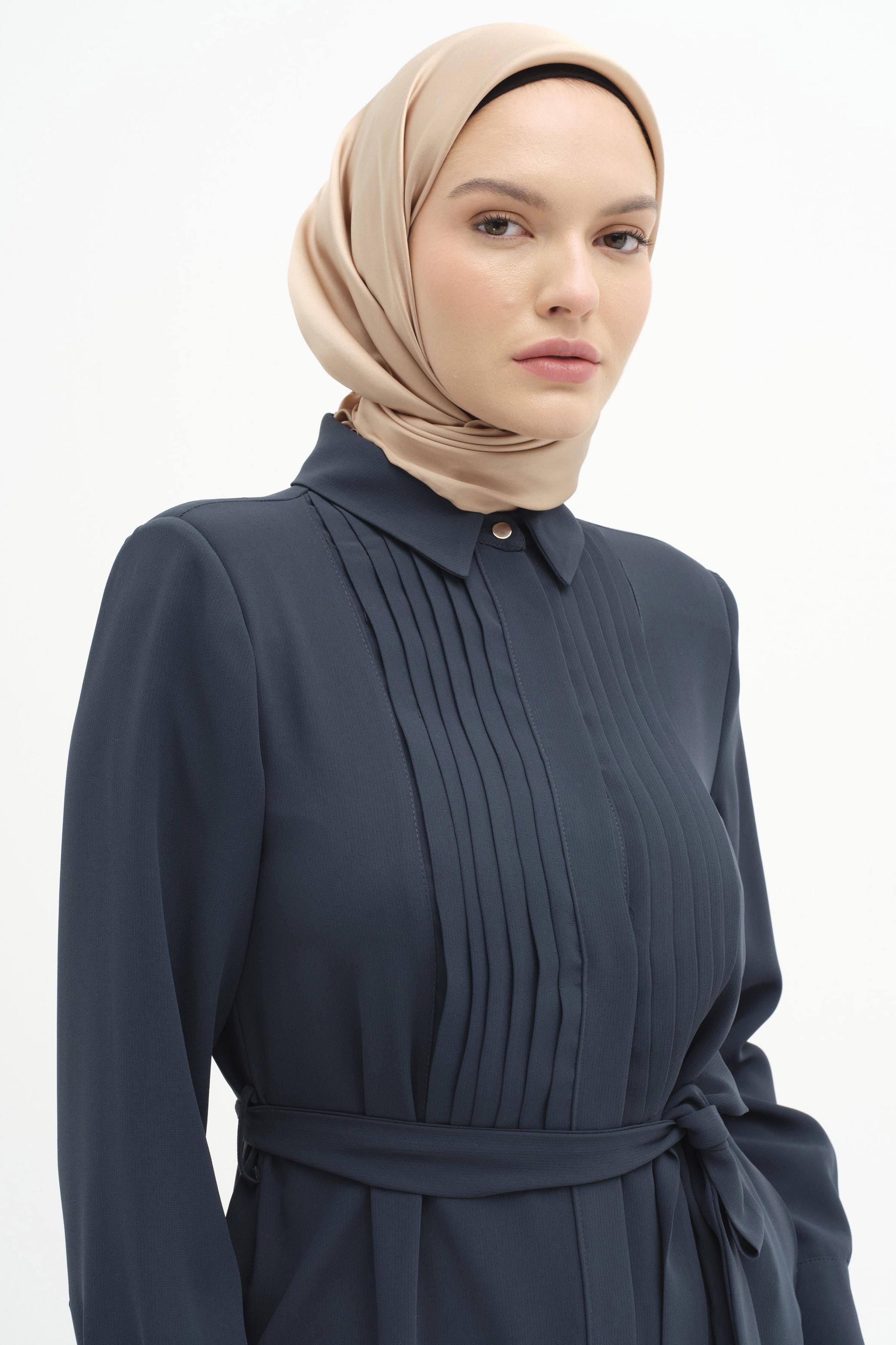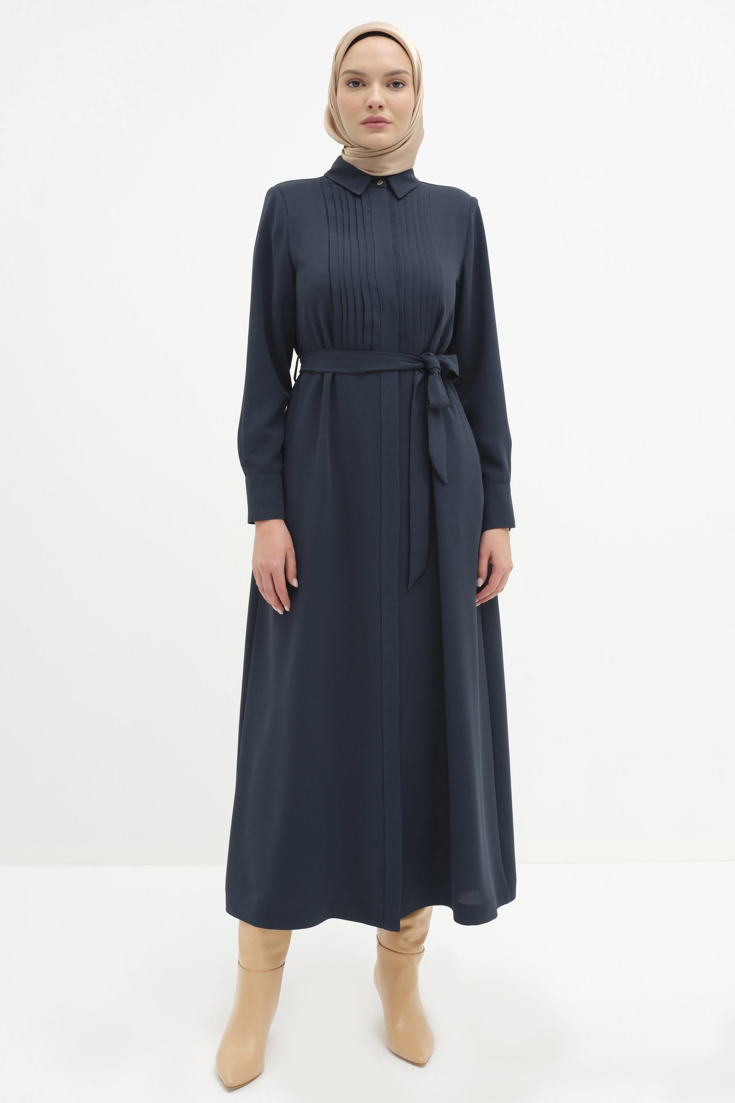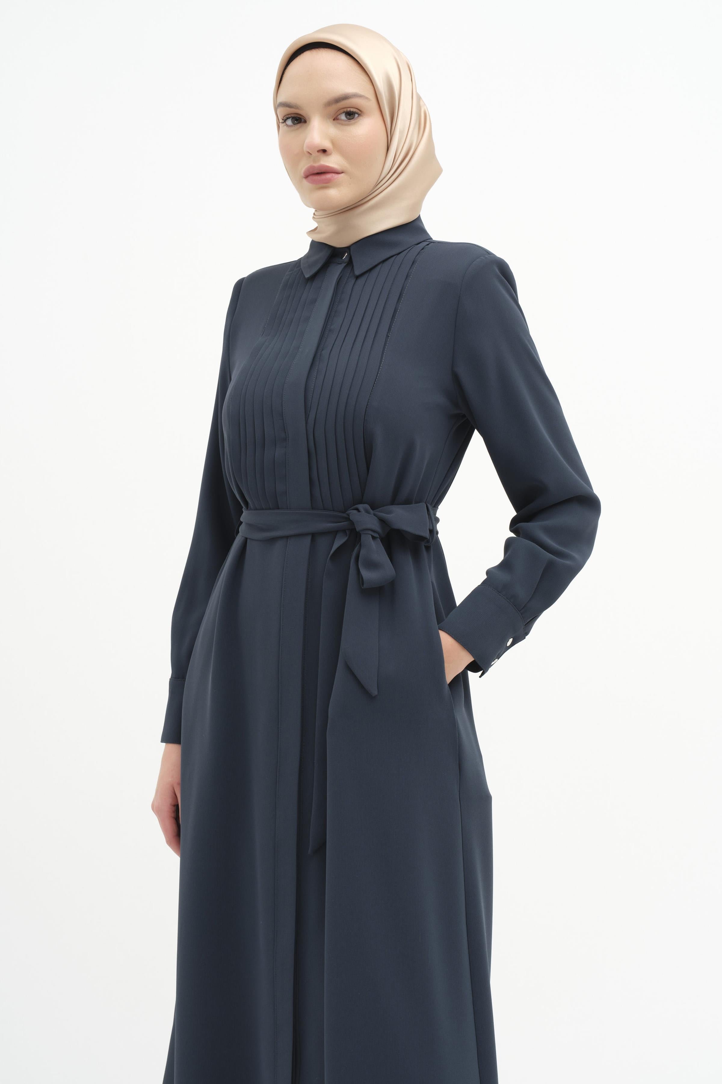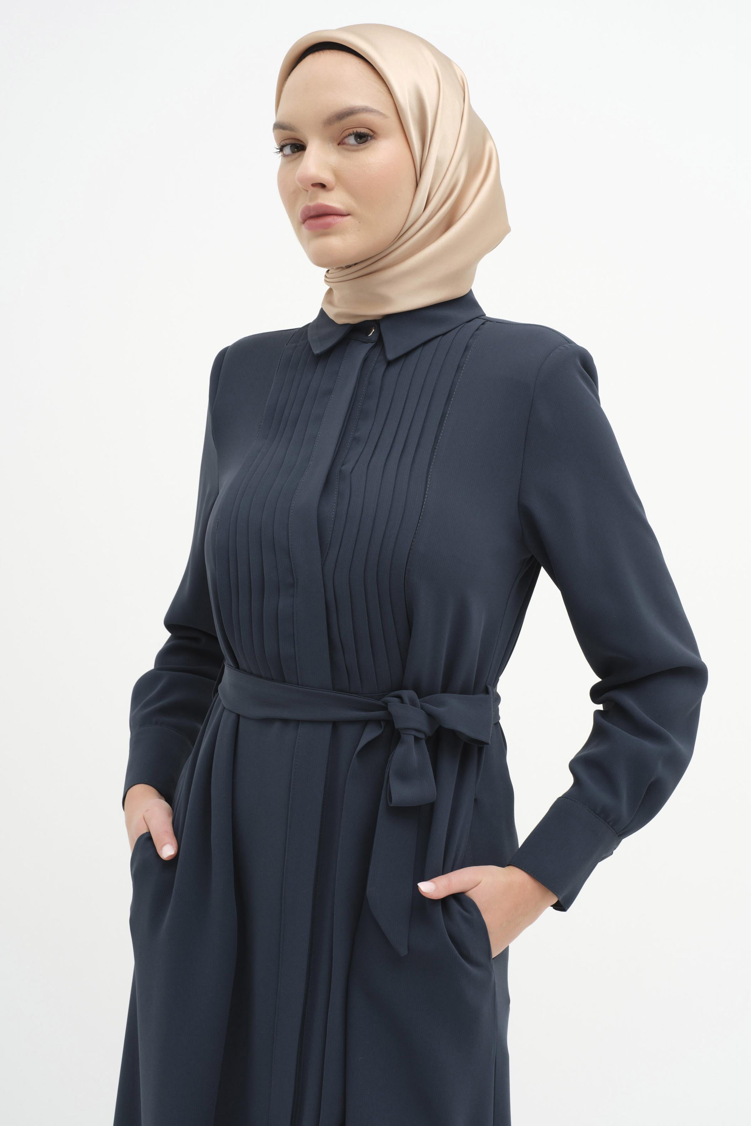 This coat, with its pleated detail on the robe adding a touch of elegance, offers a modern and sophisticated style. Its fine workmanship and fluid cut allow for freedom of movement and create a striking look in any setting.
