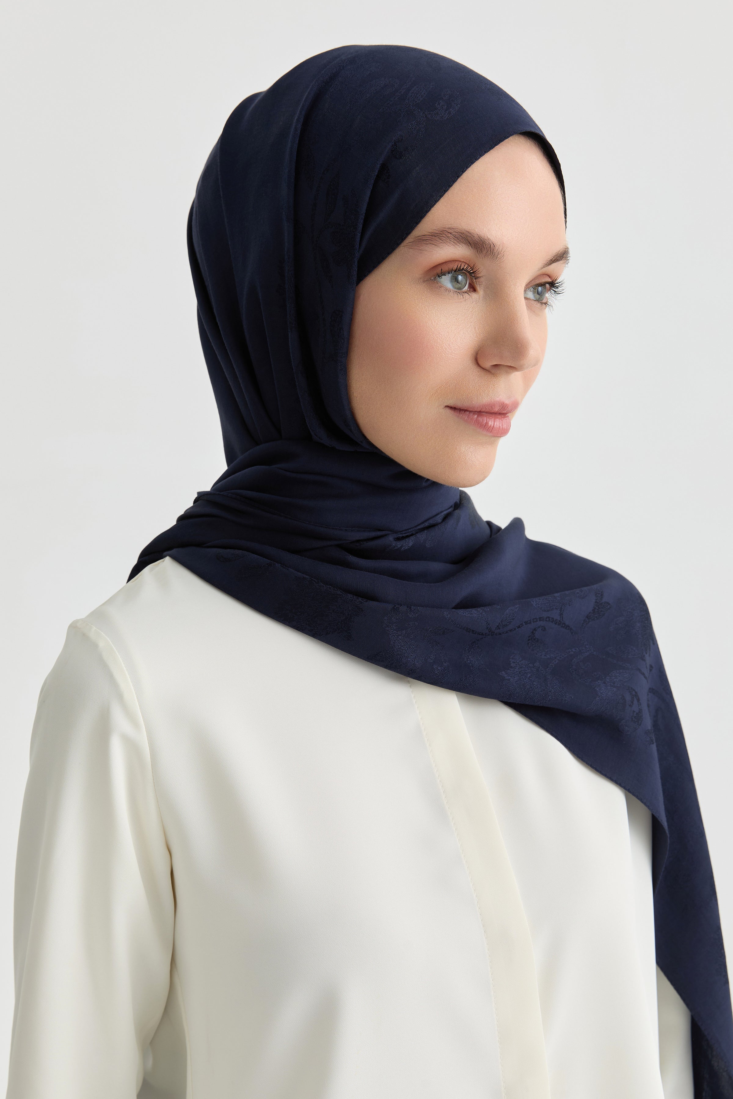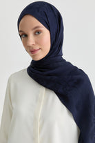 Nevgül Jacquard Natural Shawl - Navy Blue