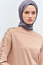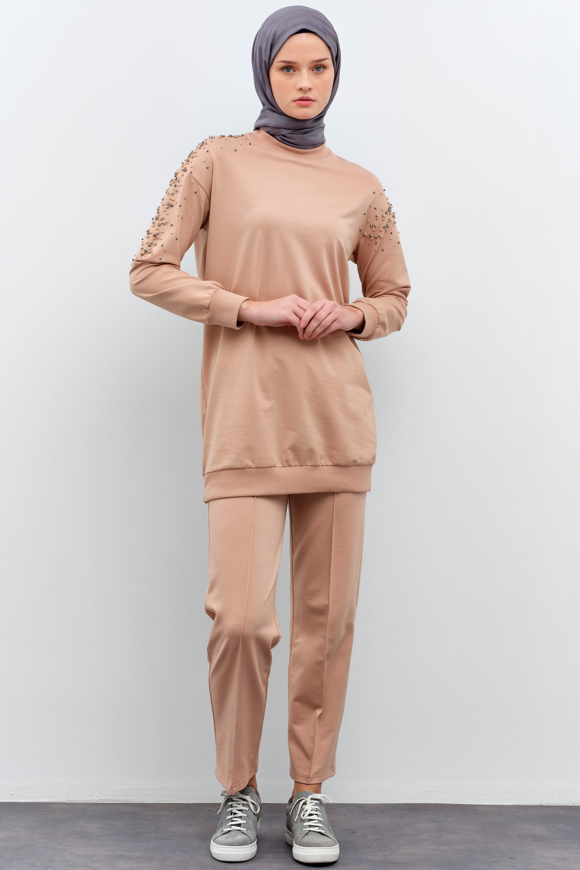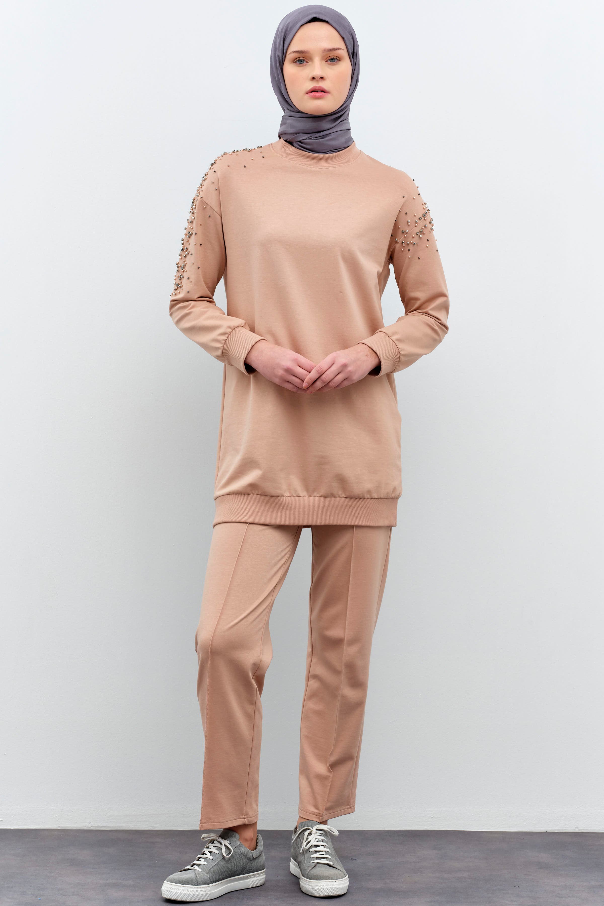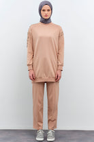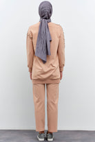 Tunic Trouser Set with Stone Detailed Sleeves - Stone