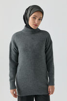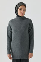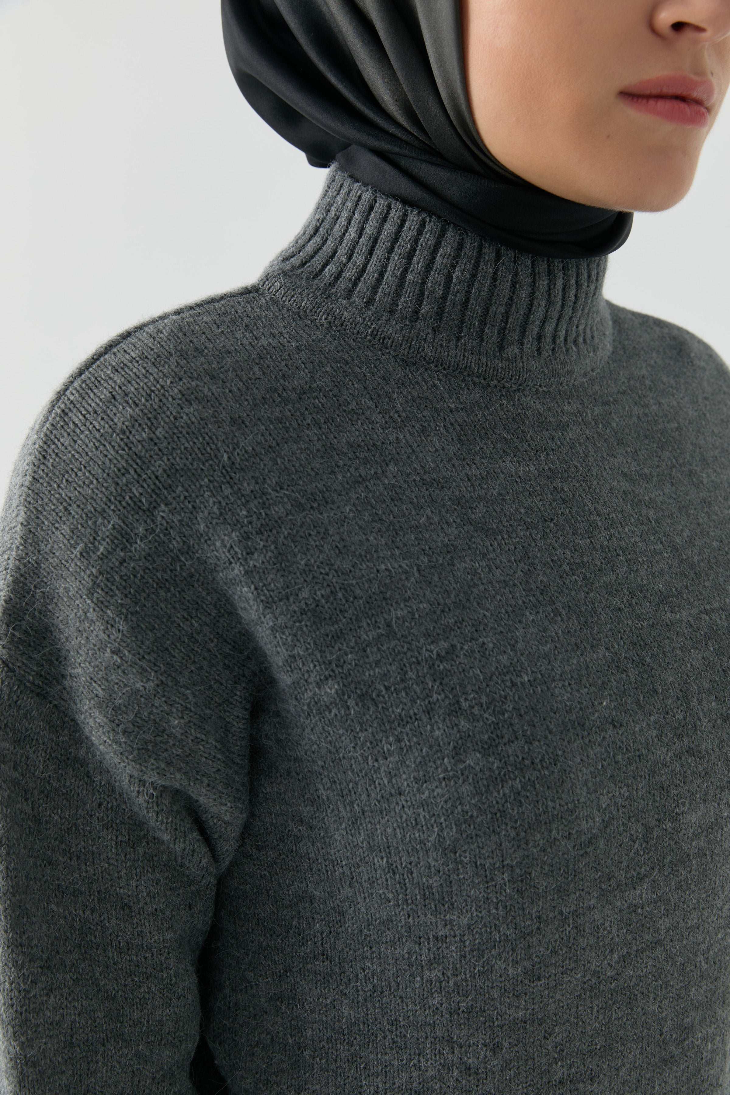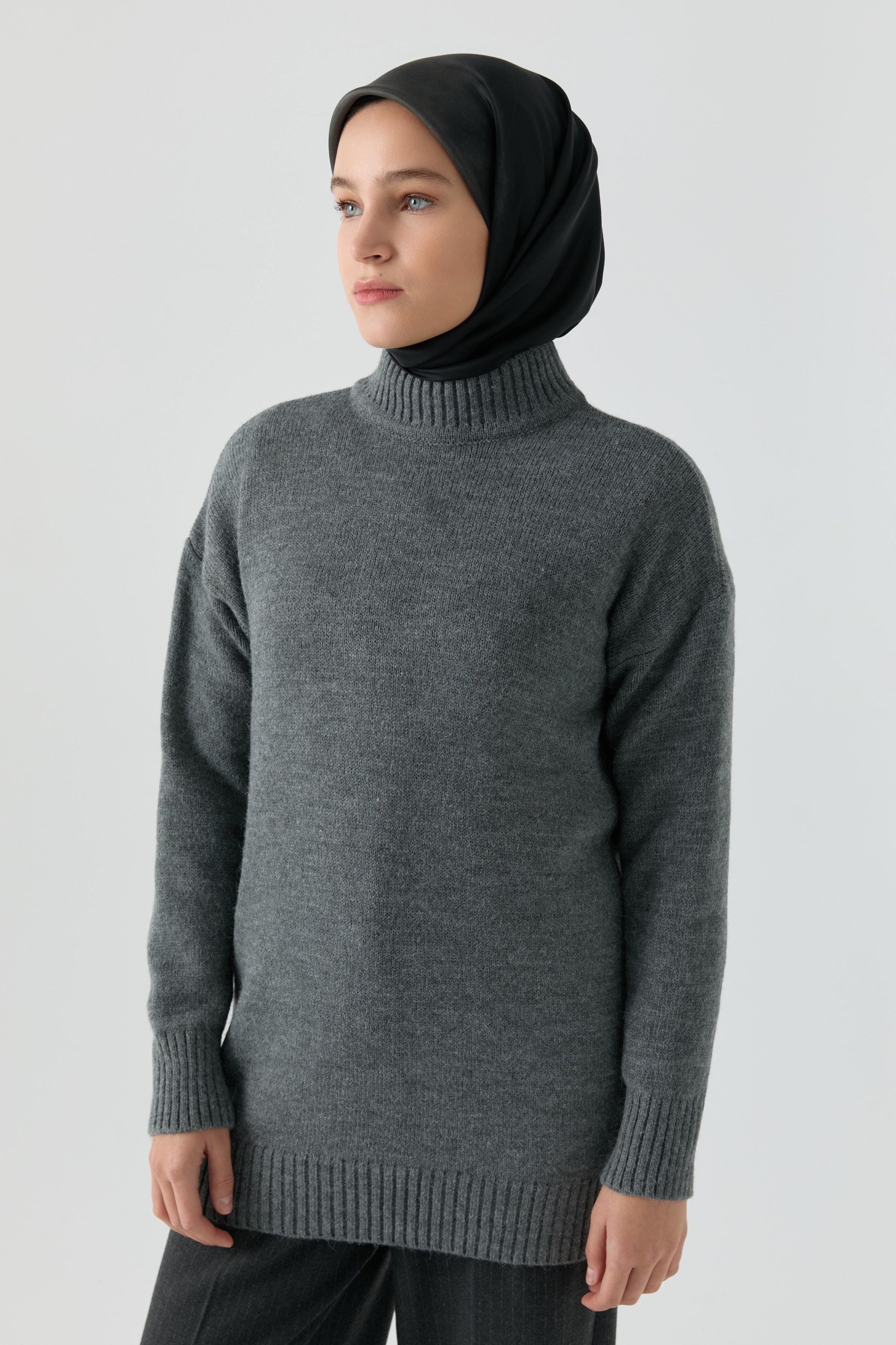 This sweater, an essential for cold days, keeps the neck line warm and gives a stylish look with its thick turtleneck design.