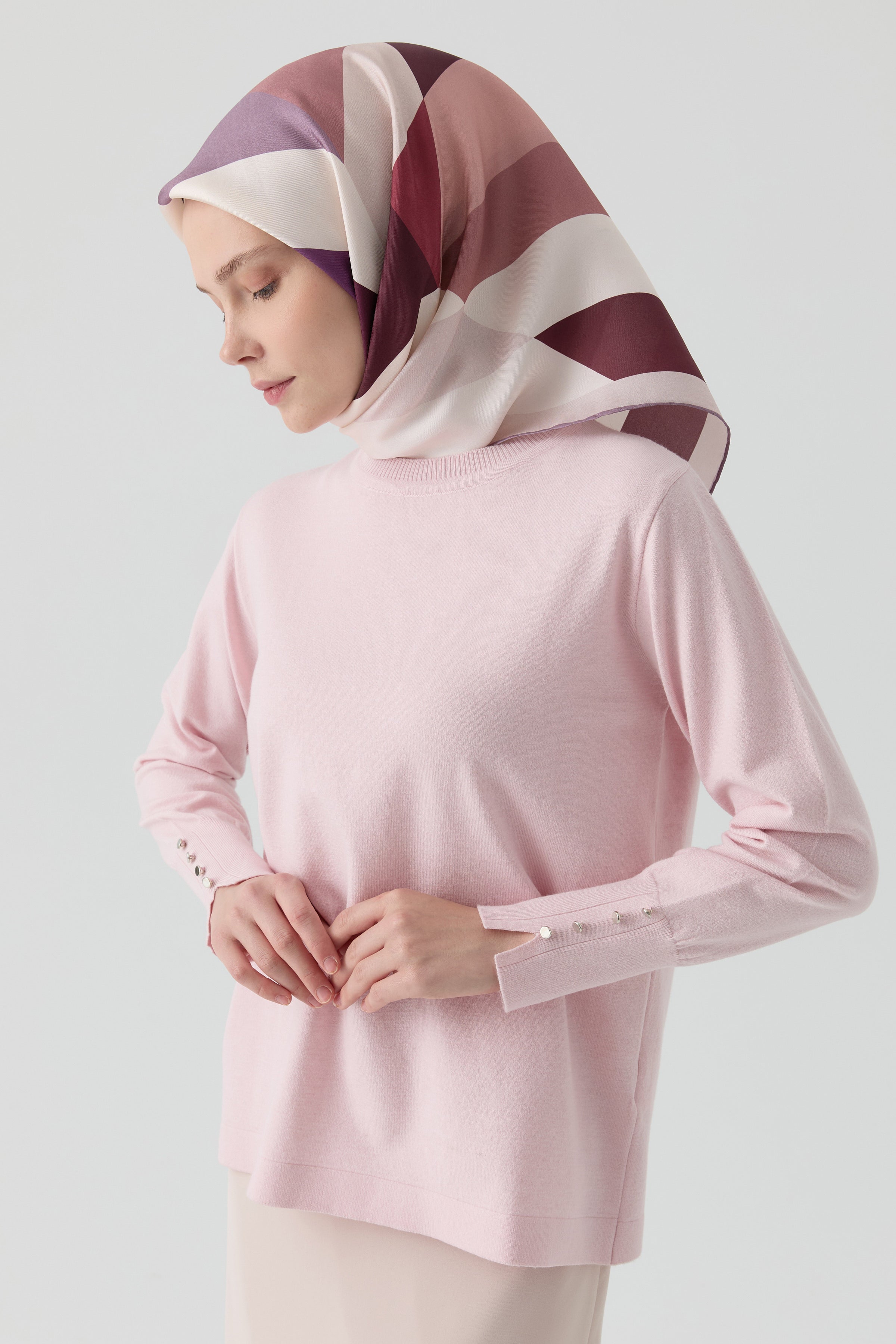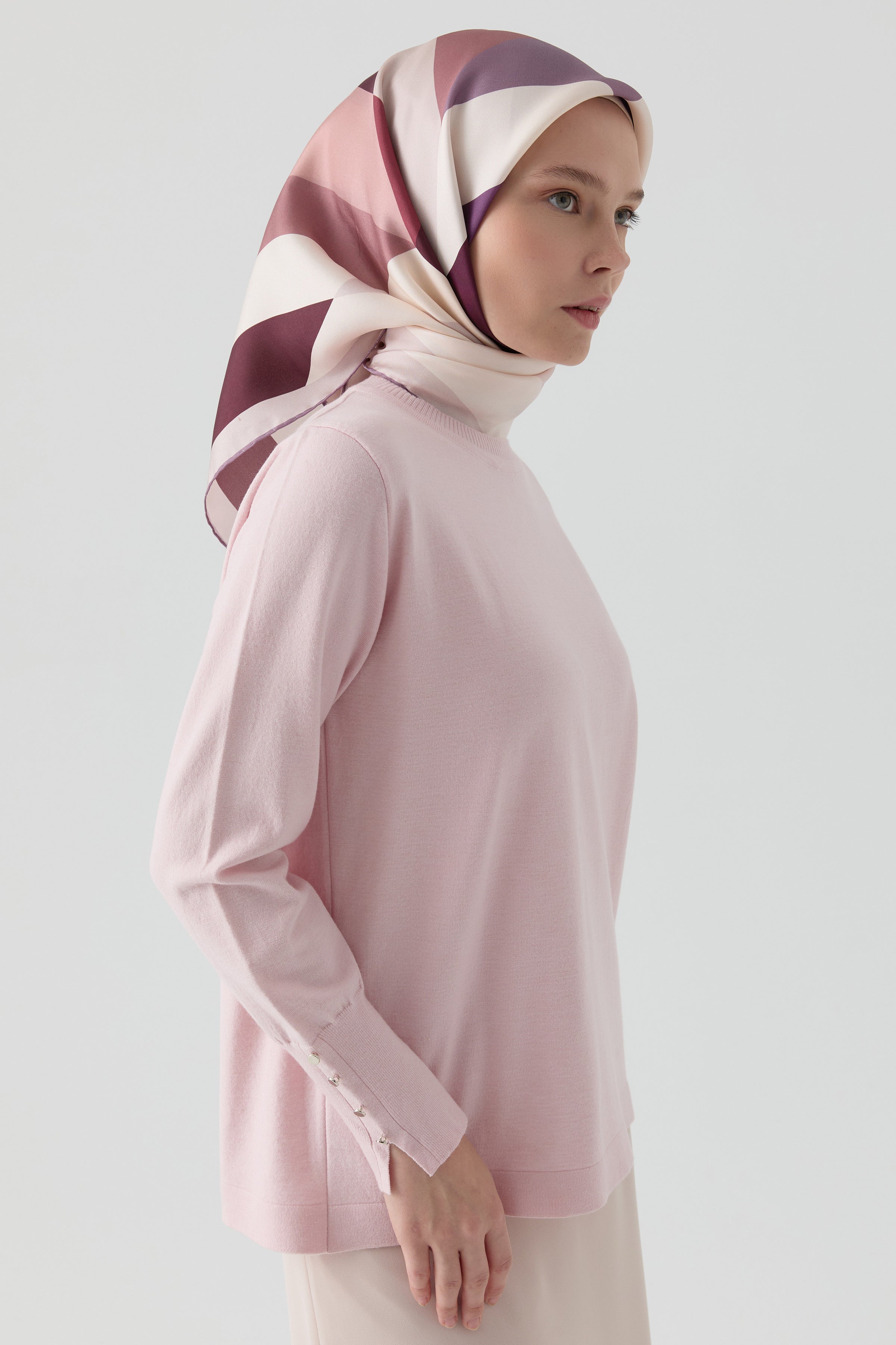 Crew Neck Sweater with Button Detail on the Sleeves - Pink