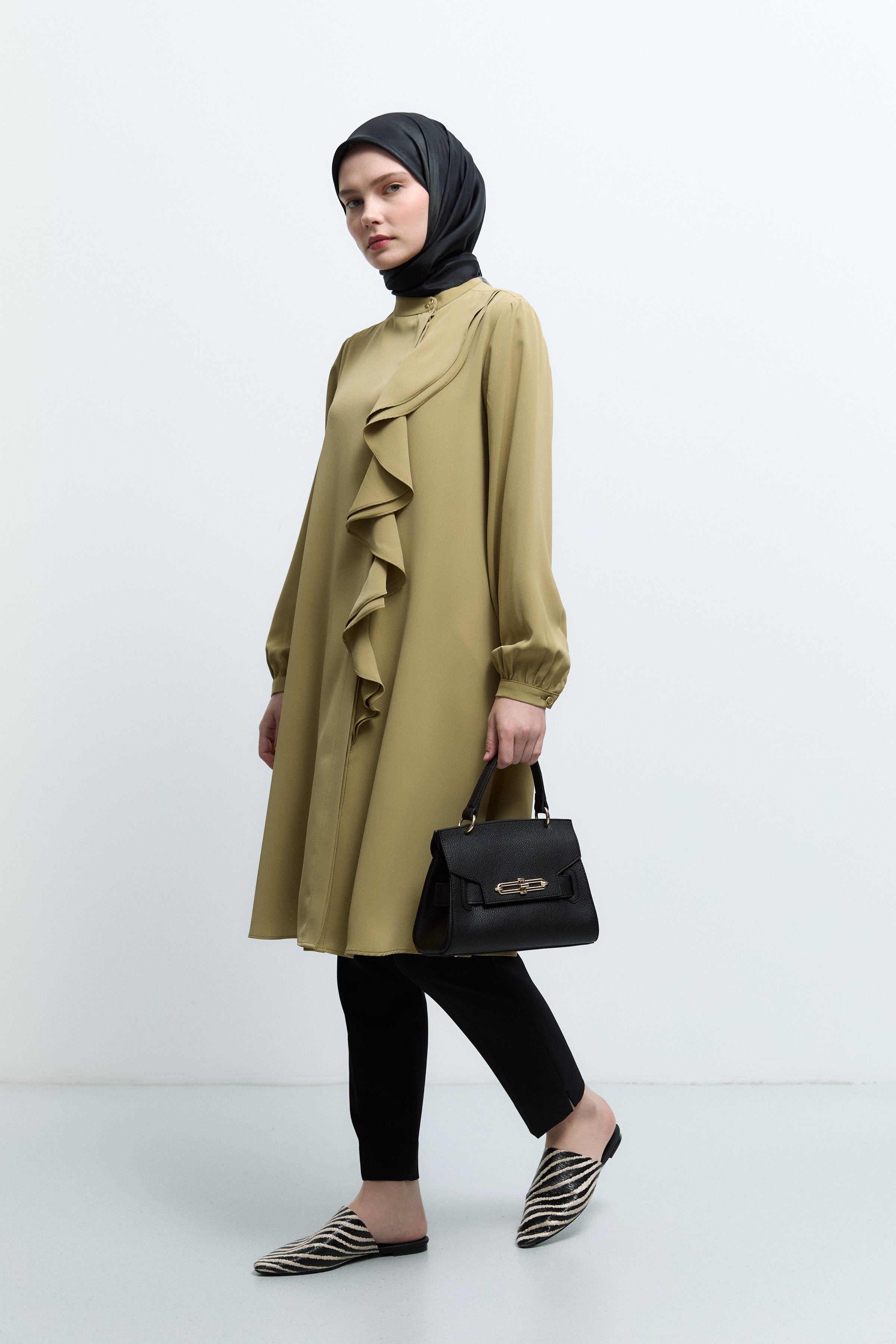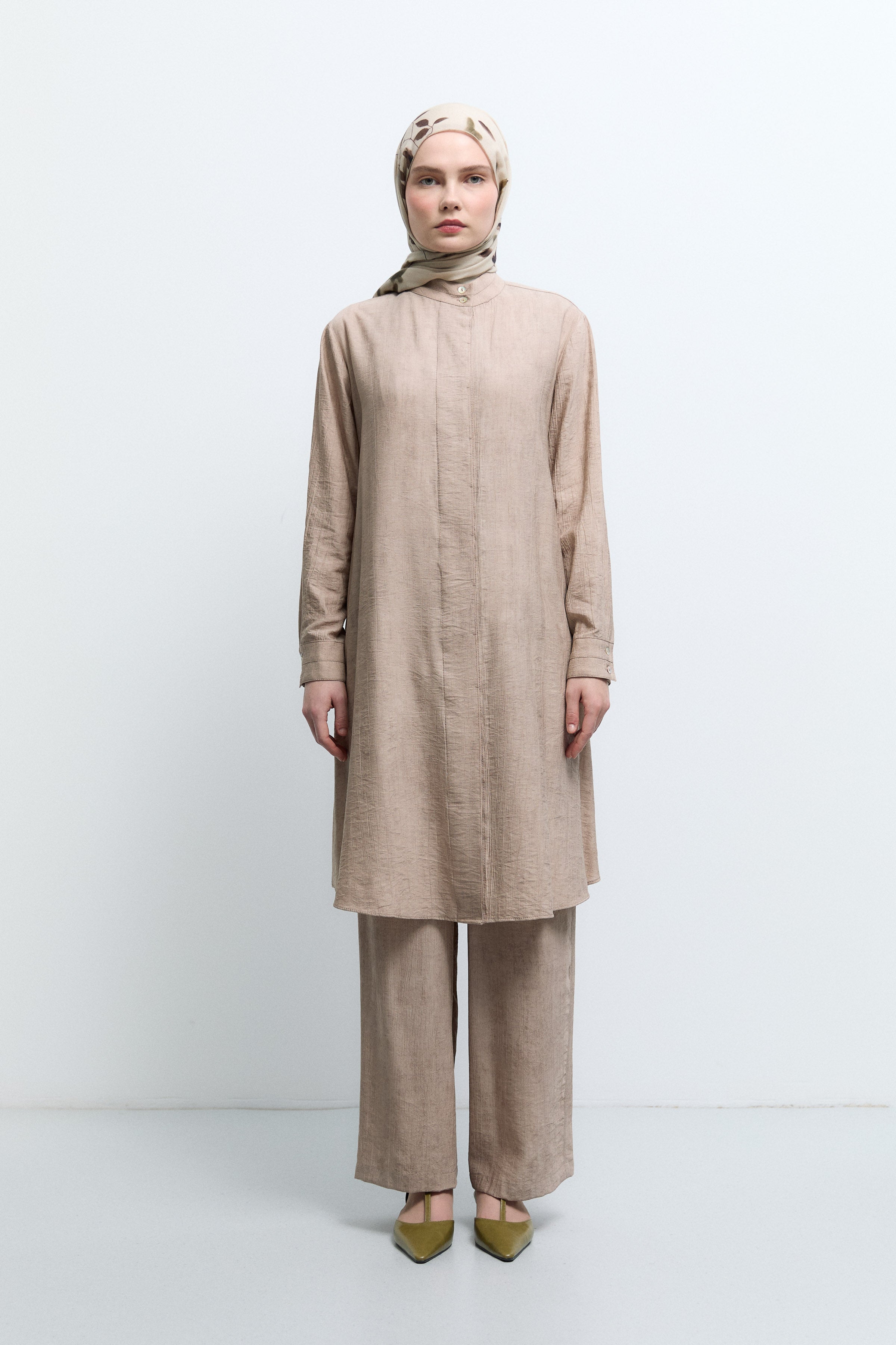 If you think it is not possible to be stylish at every moment of the day, you should examine the Tuğba women's tunic category before making a decision. If you cannot decide what to wear when you start the day, the answer to the question "What should I wear today?" is in Tuğba! What you wear during the day actually affects how you will feel throughout the day. For this reason, hijab tunic models that will allow you to be both stylish and comfortable in daily wear, make you feel good at any time in the office or outside and enter any environment easily, and that you can easily combine with women's trousers and women's skirt models on tugba.com.