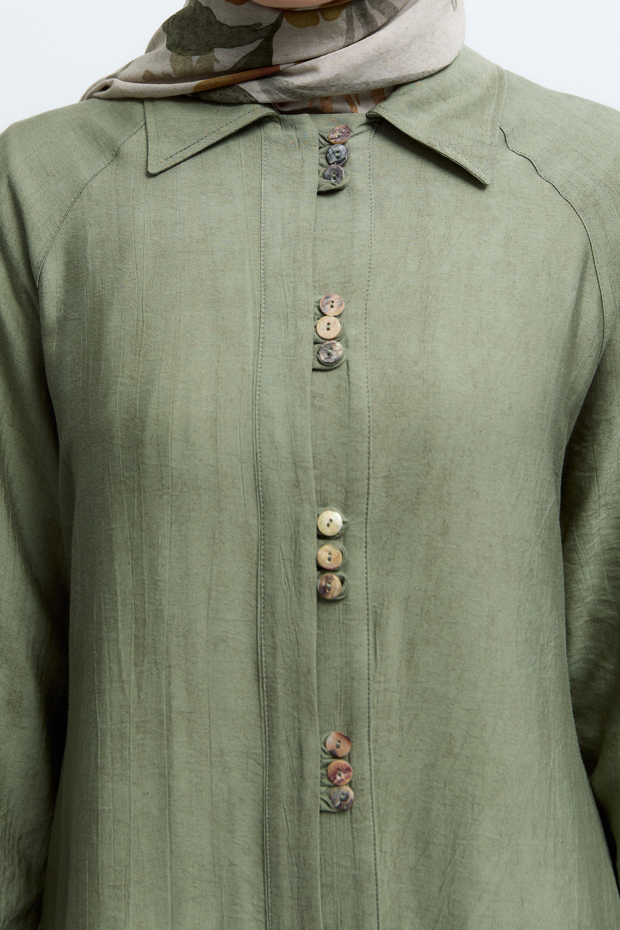 Kuşaklı Gömlek Yaka Tunik - Haki