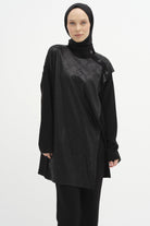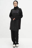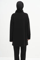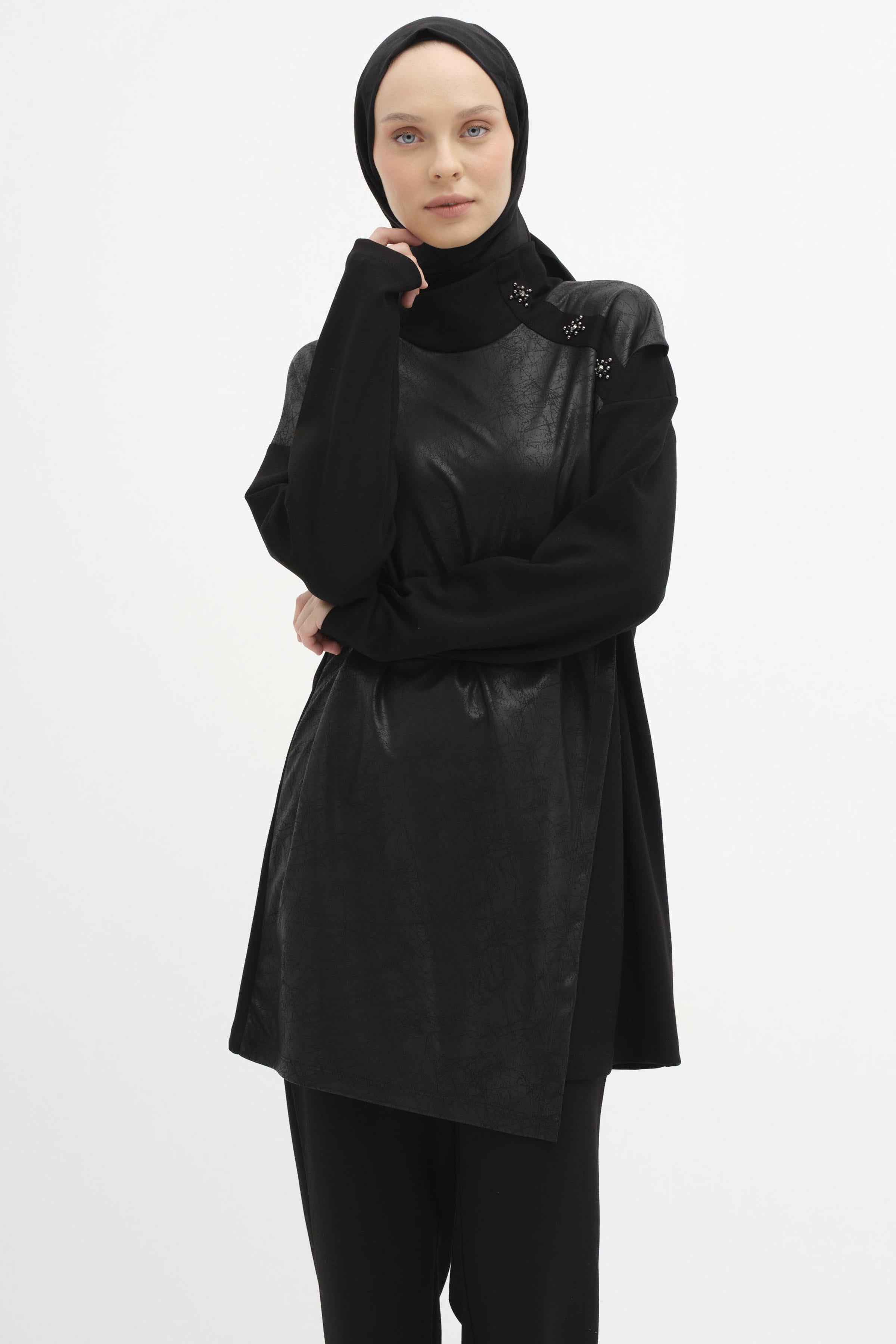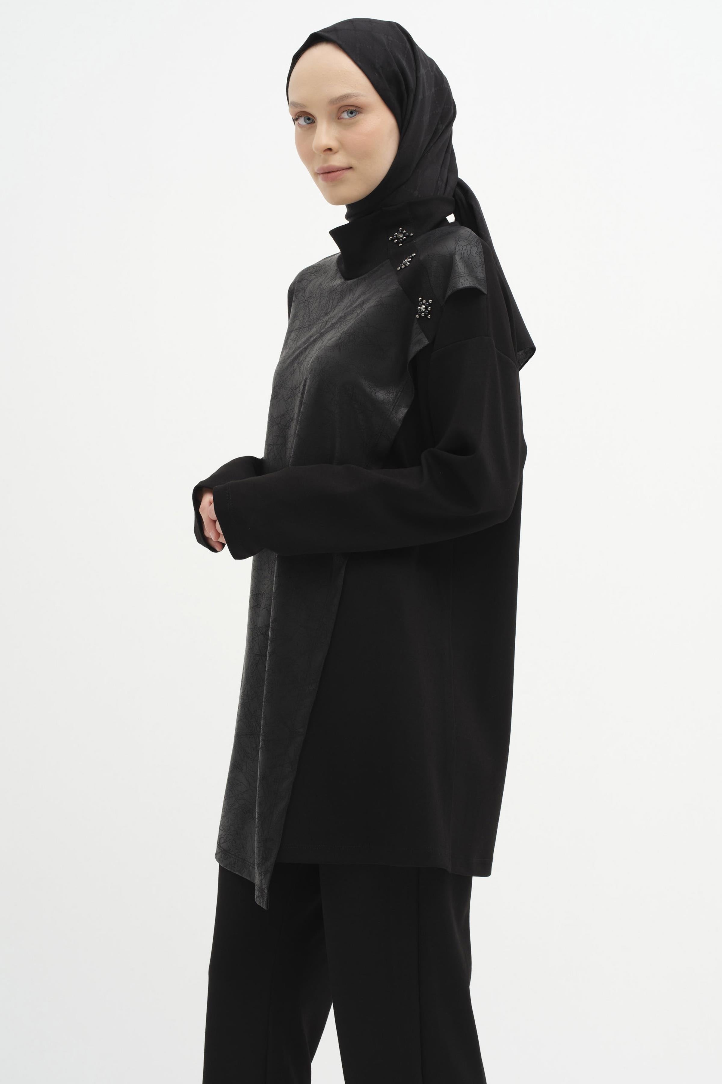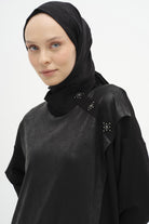 Shoulder Stone Detailed Garnished Knitted Tunic - Black