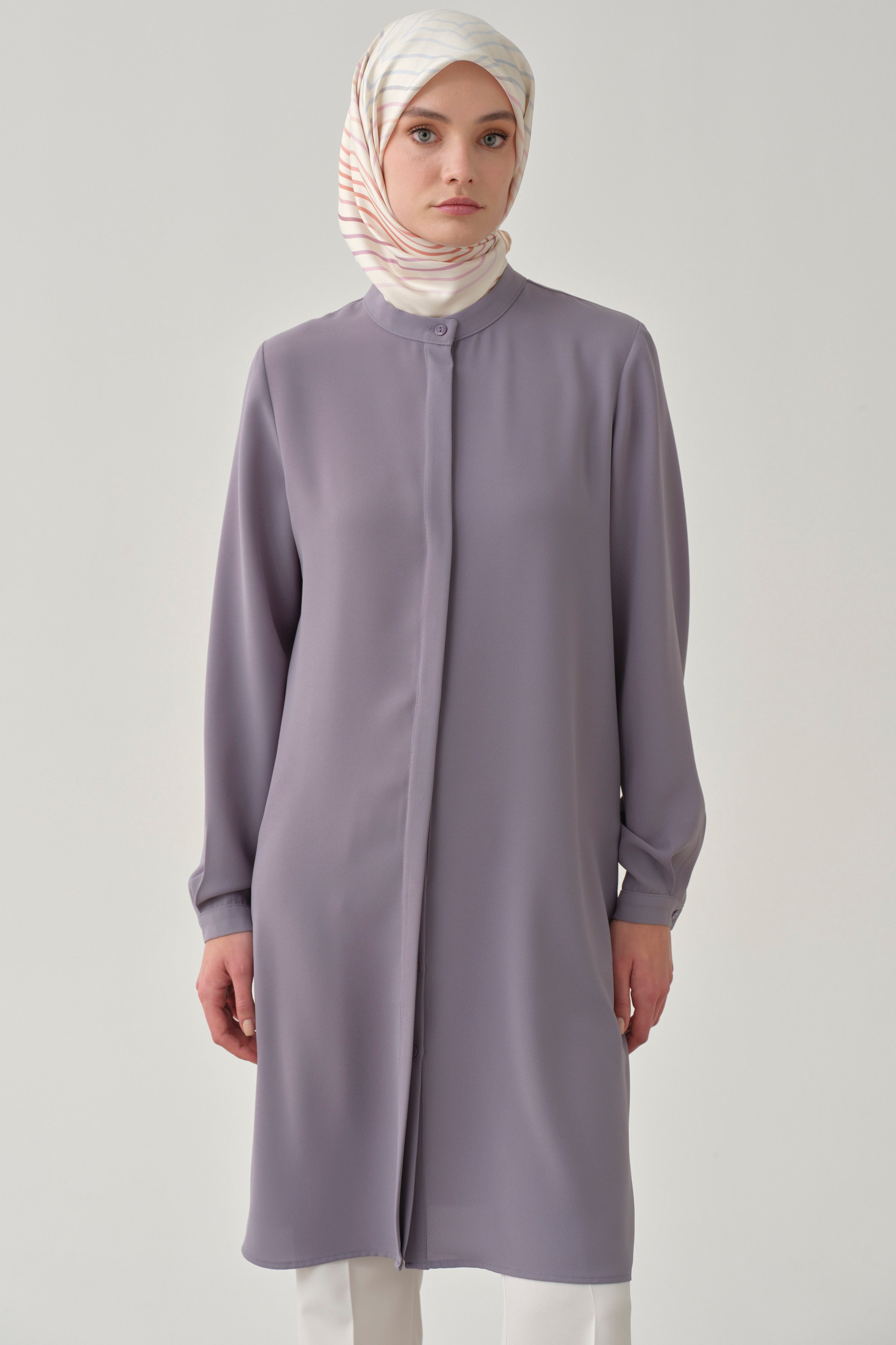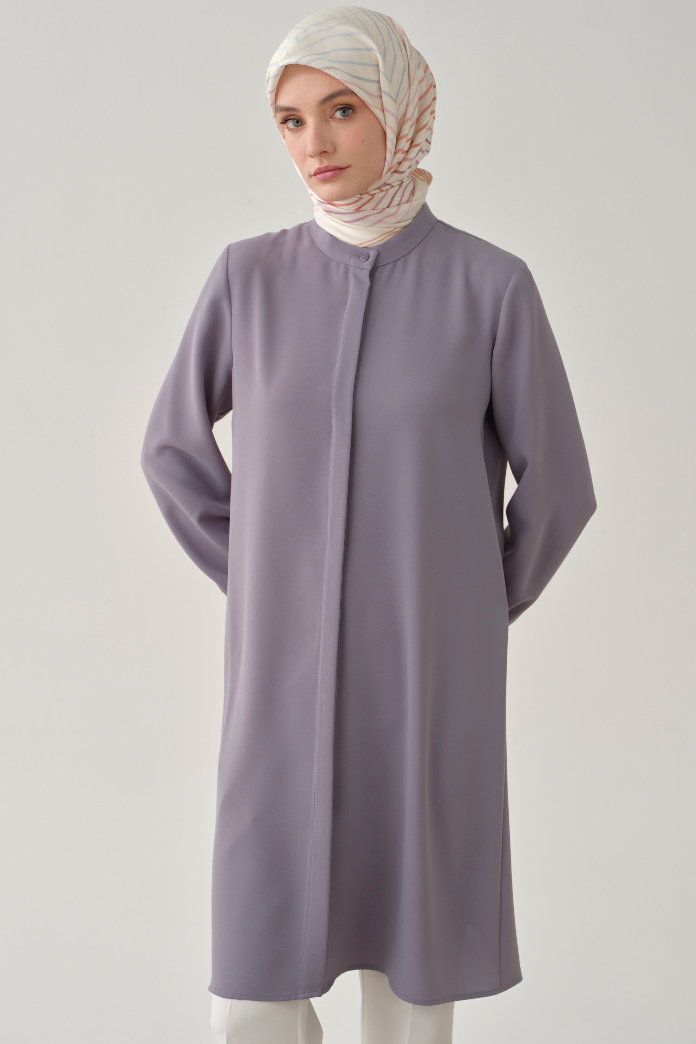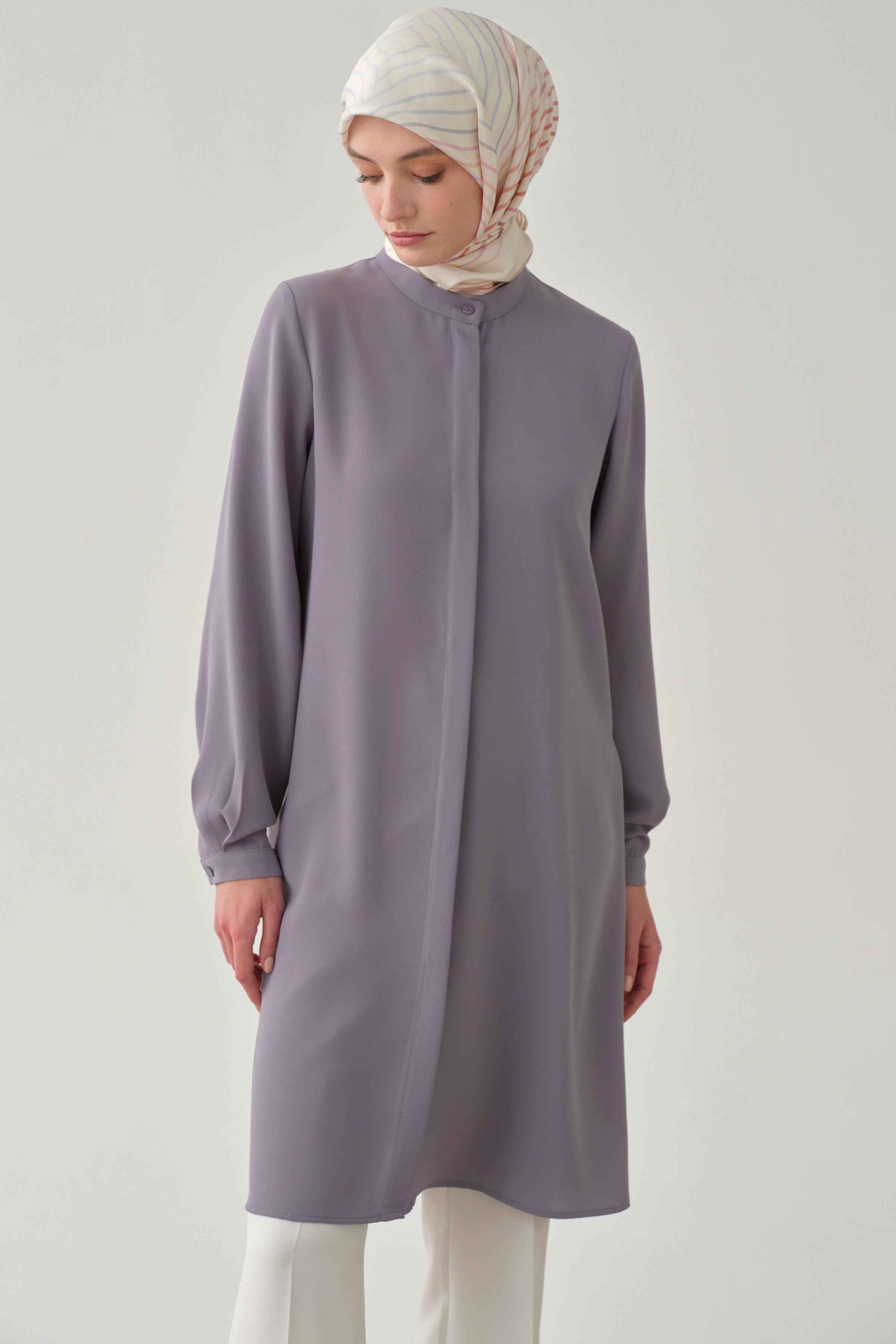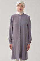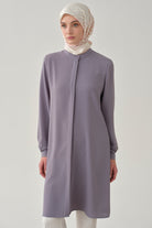 Mandarin Collar Hidden Placket Tunic - Lilac