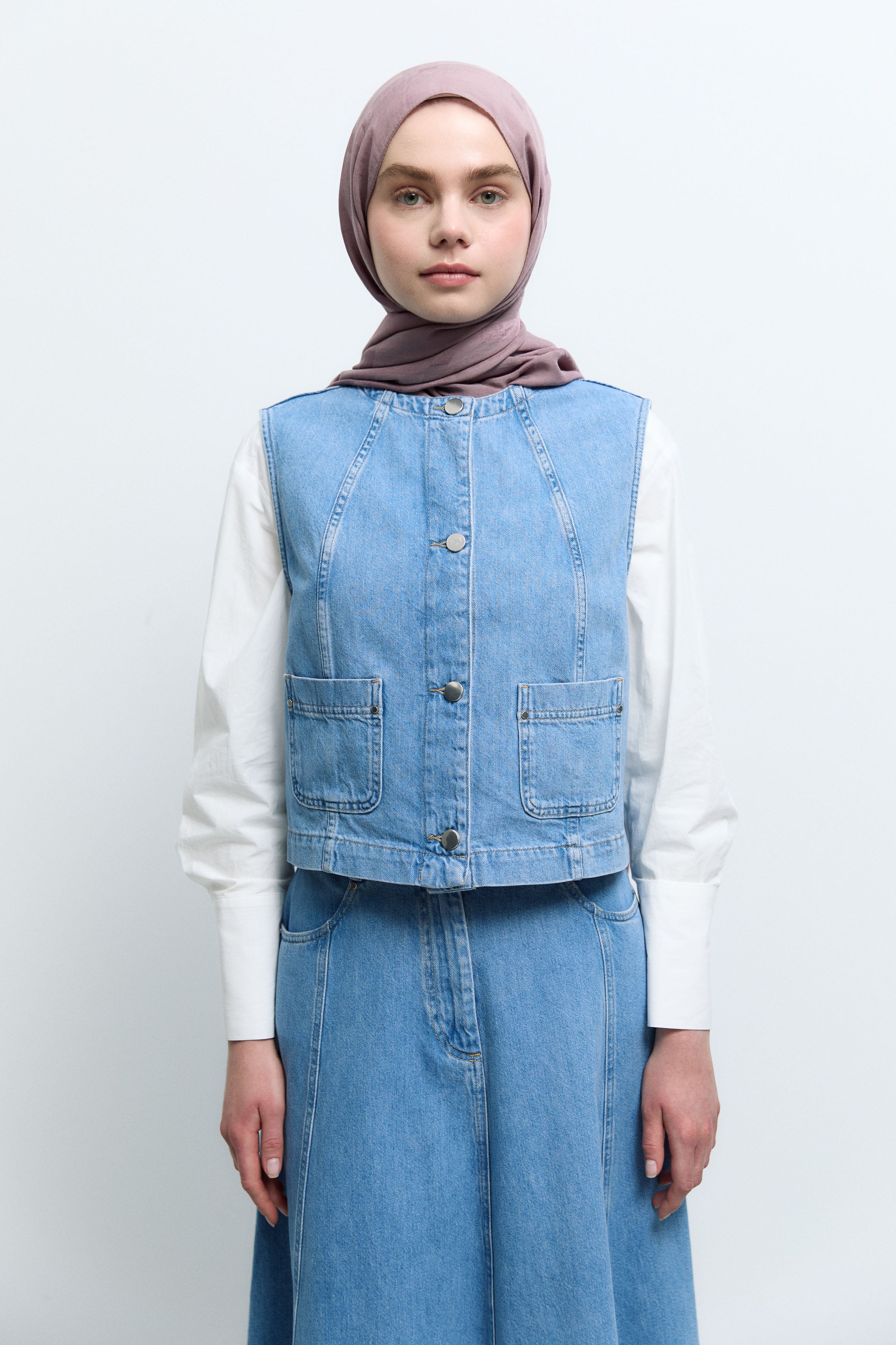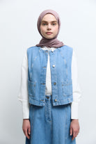 Kup Detaylı Yelek - Mavi