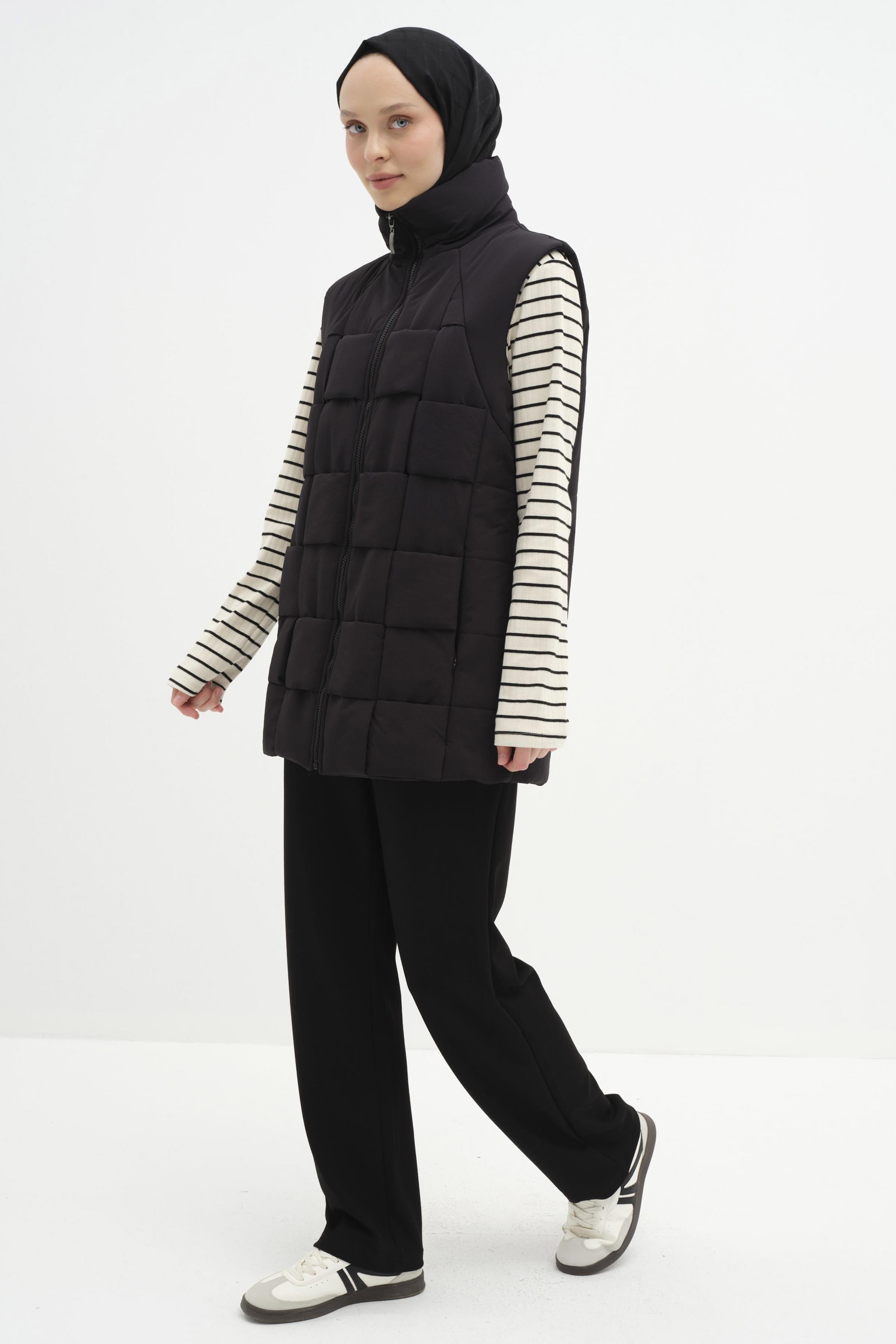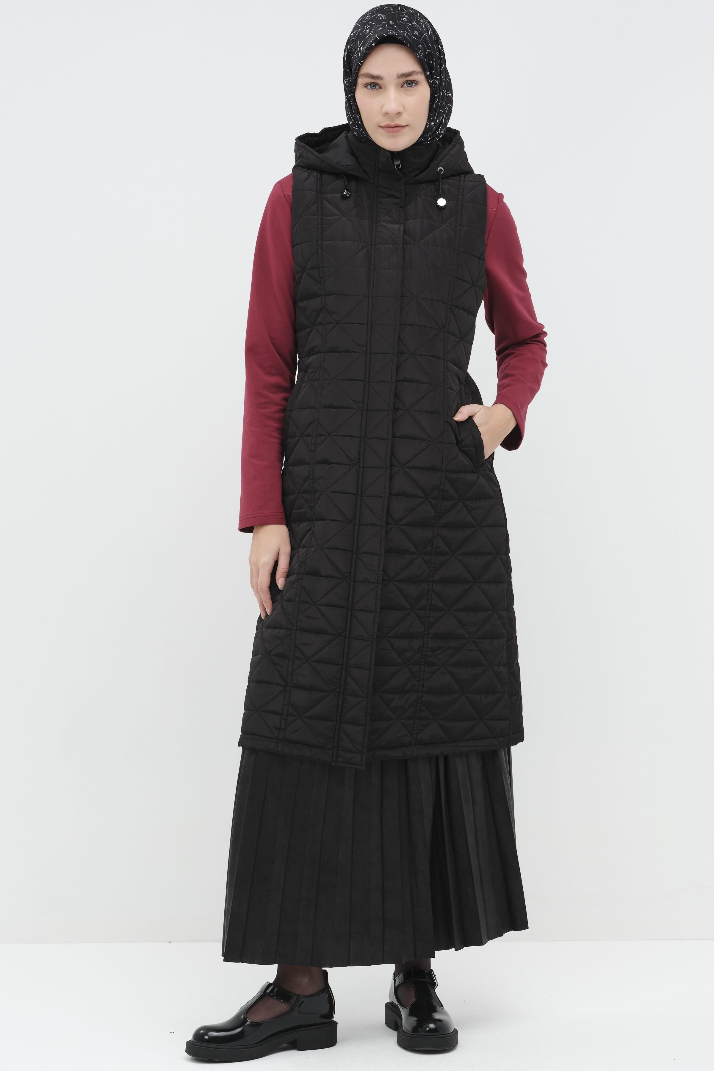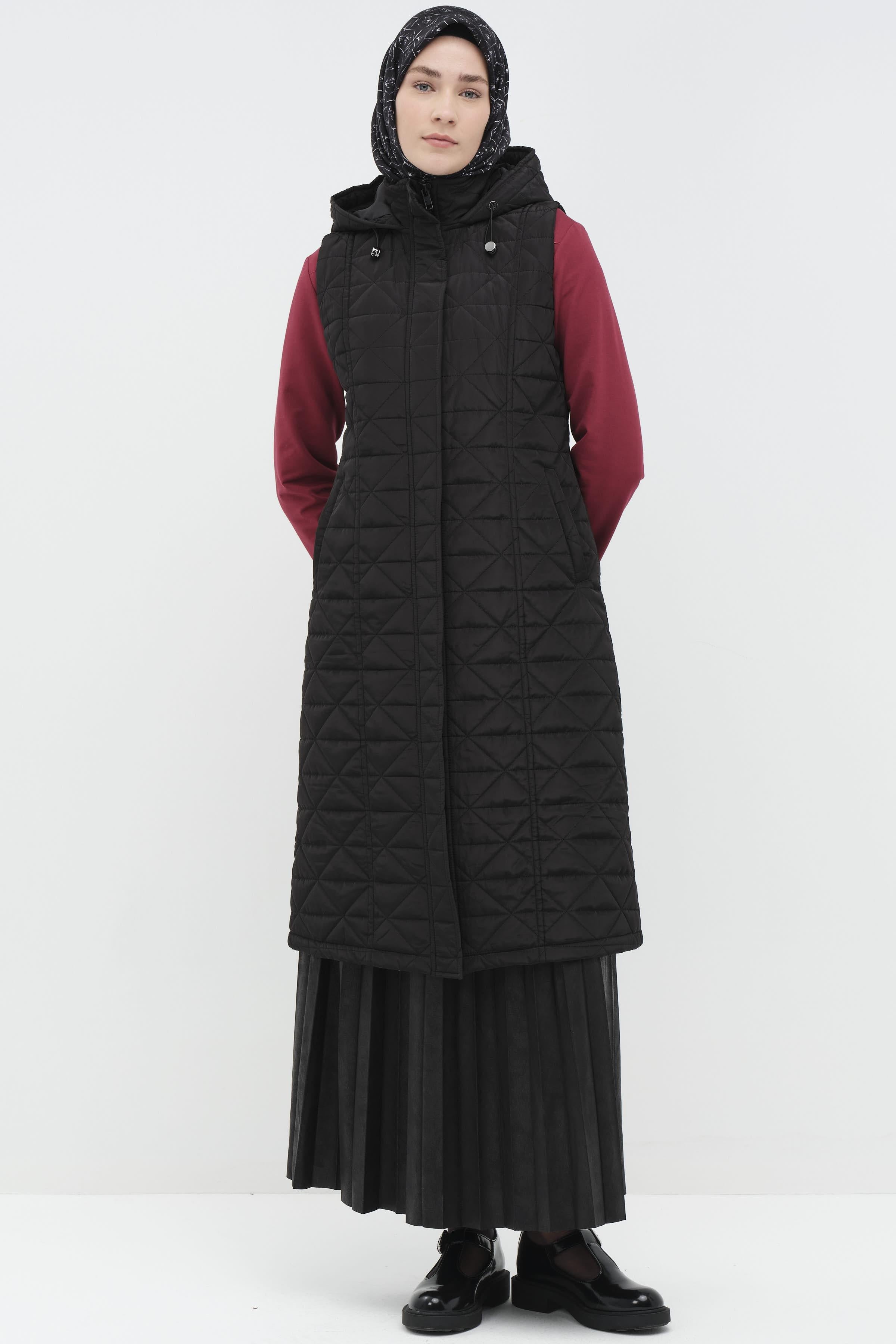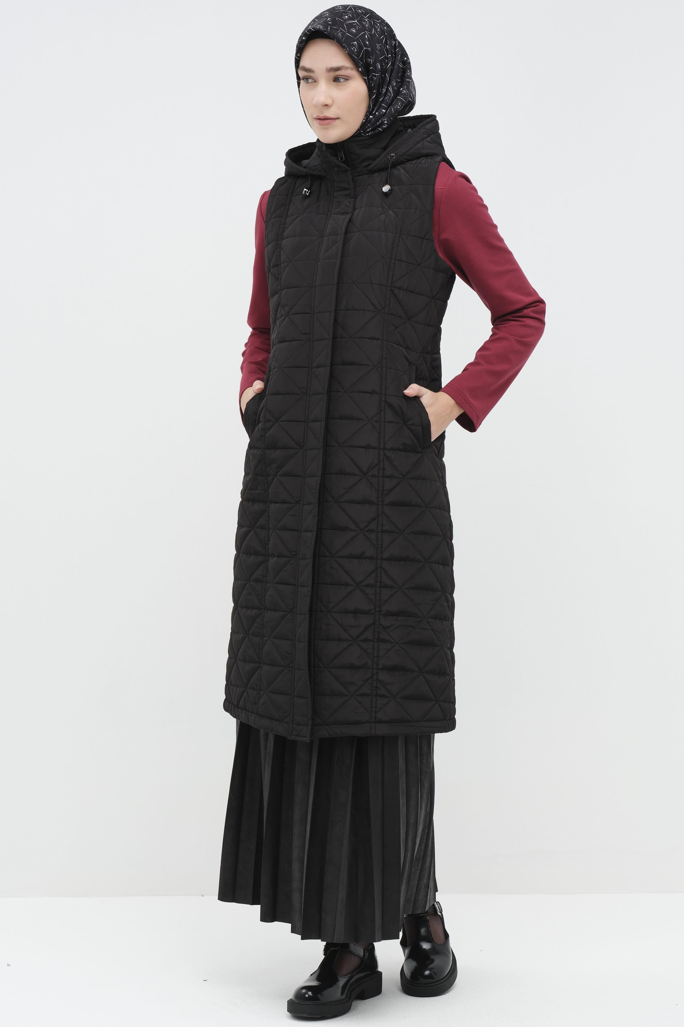 The quilted texture combines both aesthetics and functionality, keeping you warm in cold weather, while the knitted detail adds an elegant touch to the vest.