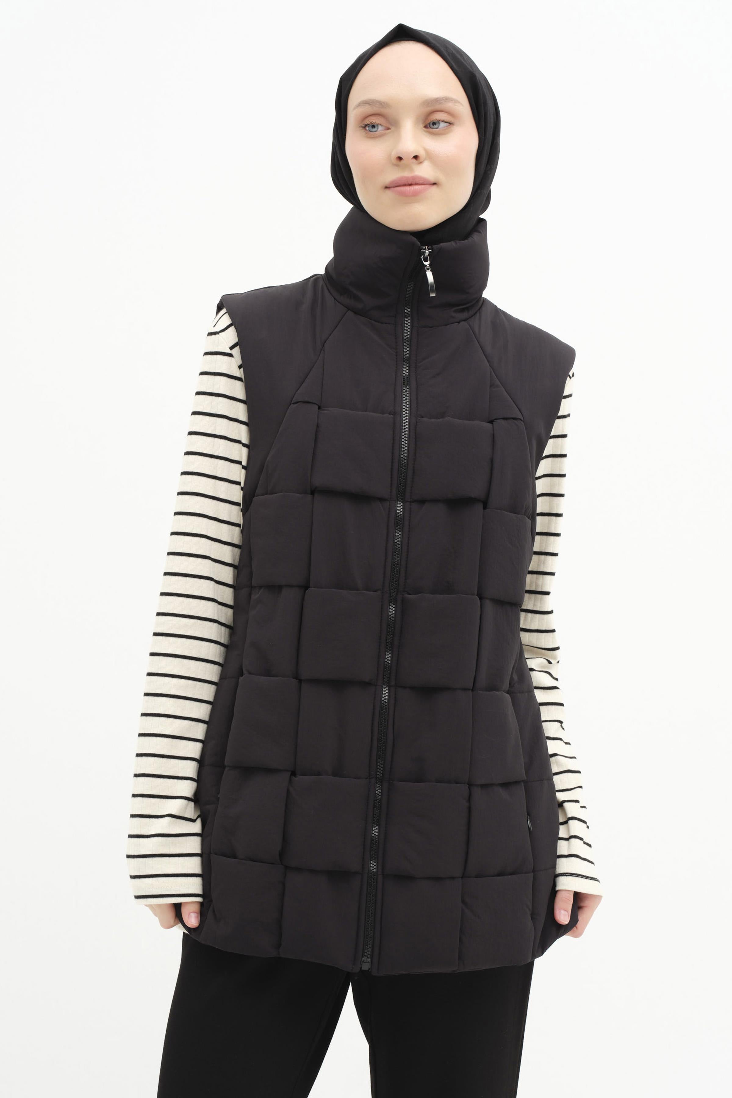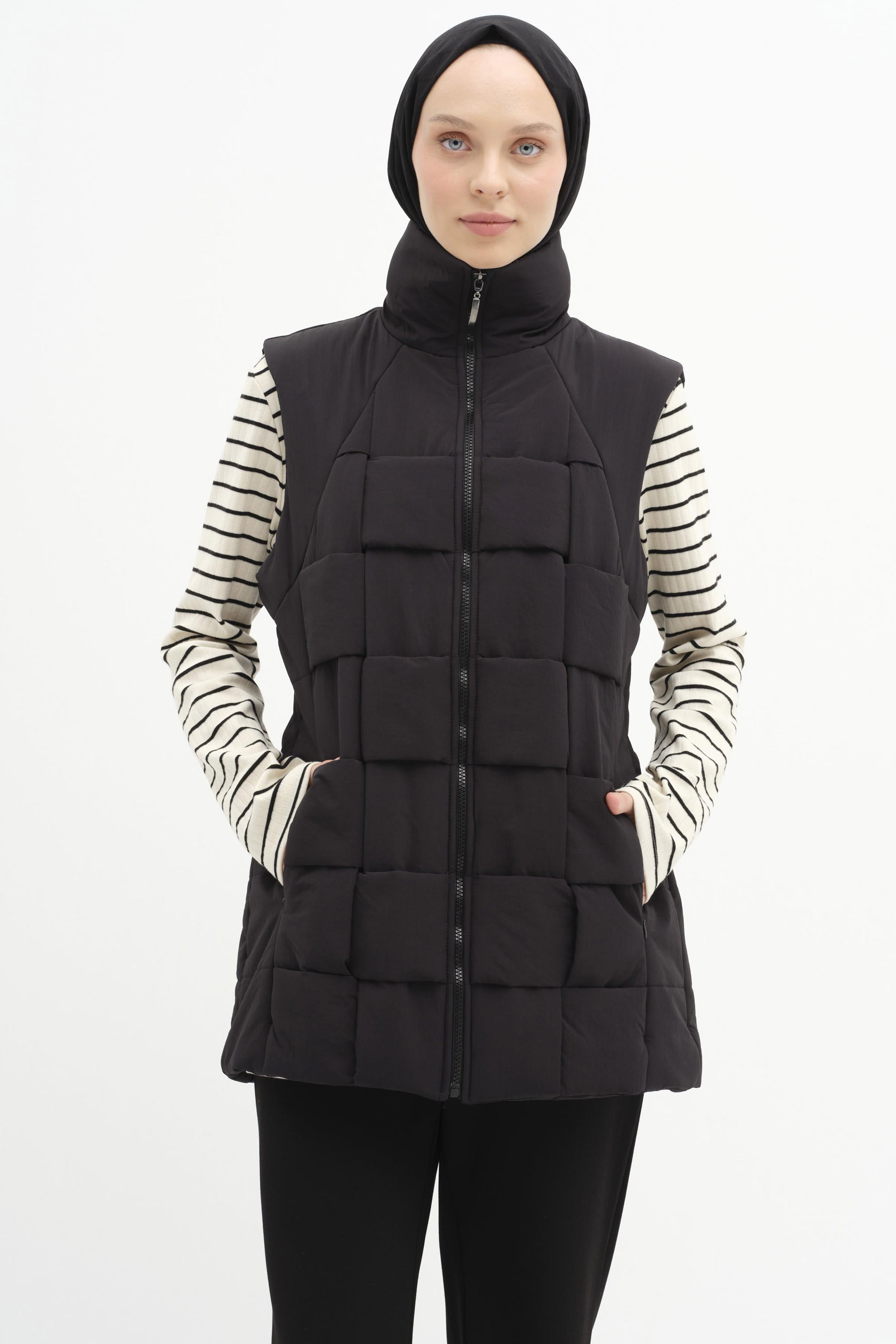Knitted Quilted Vest - Black