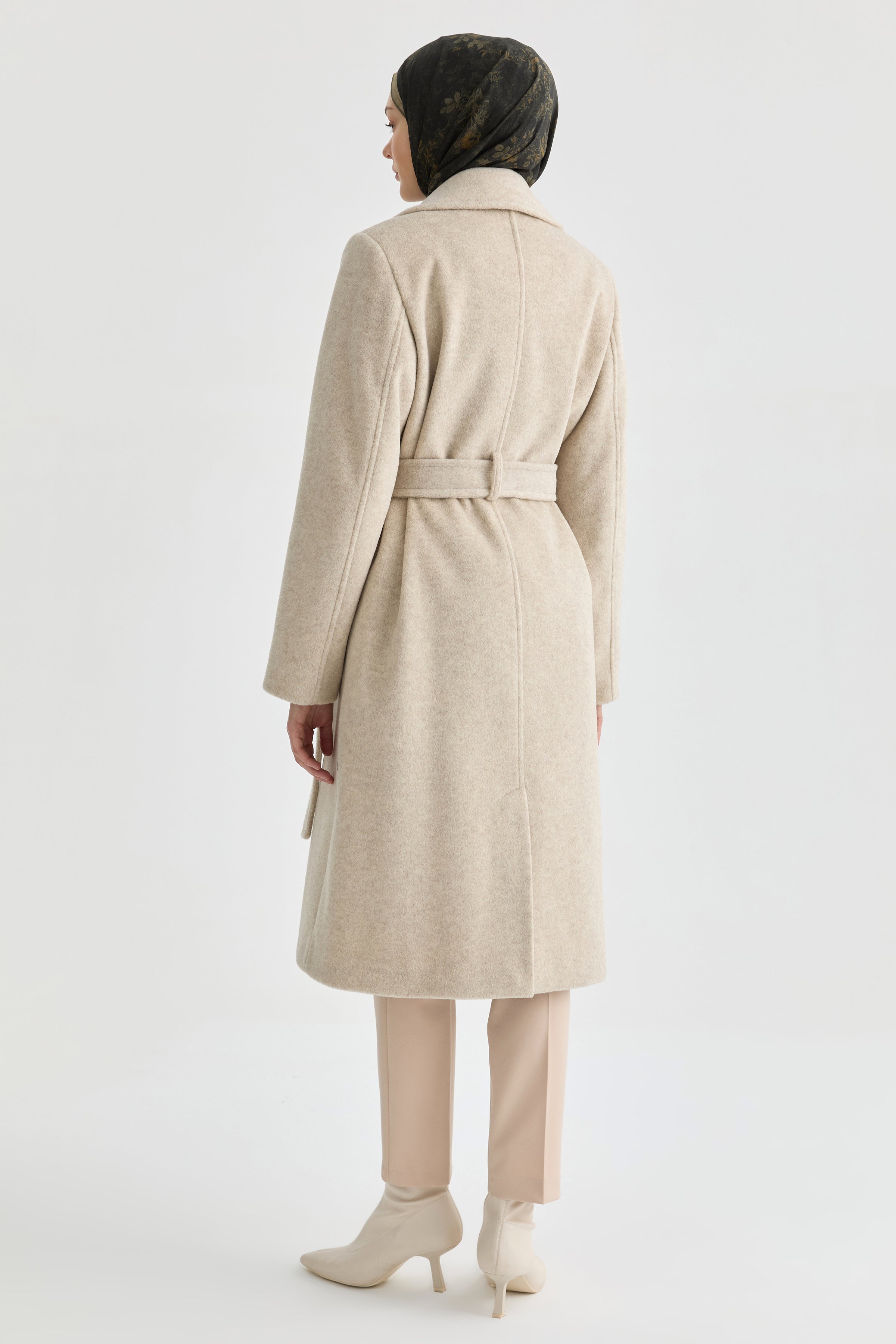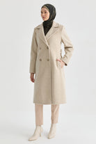 Kuşak Detaylı Kaban - Bej