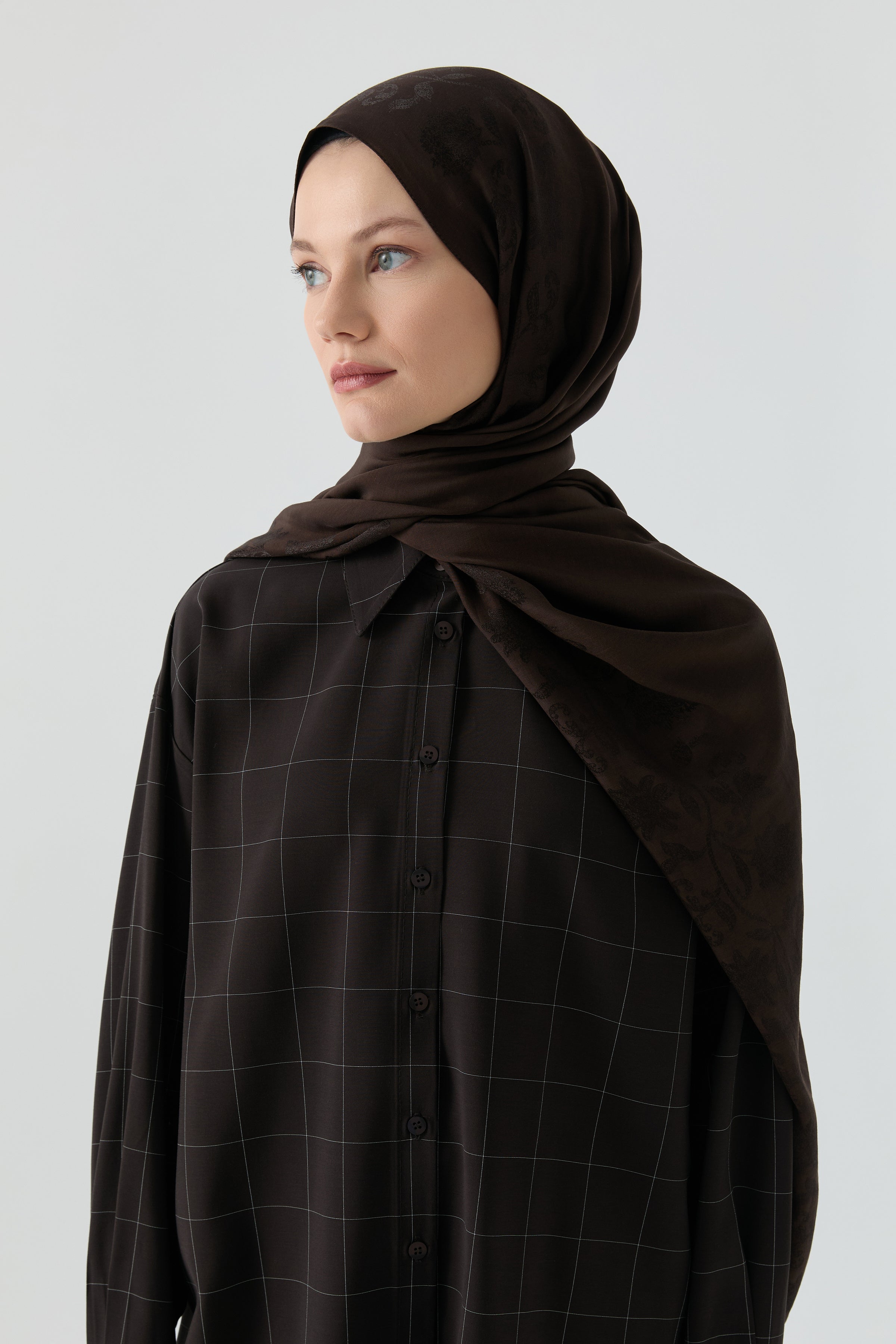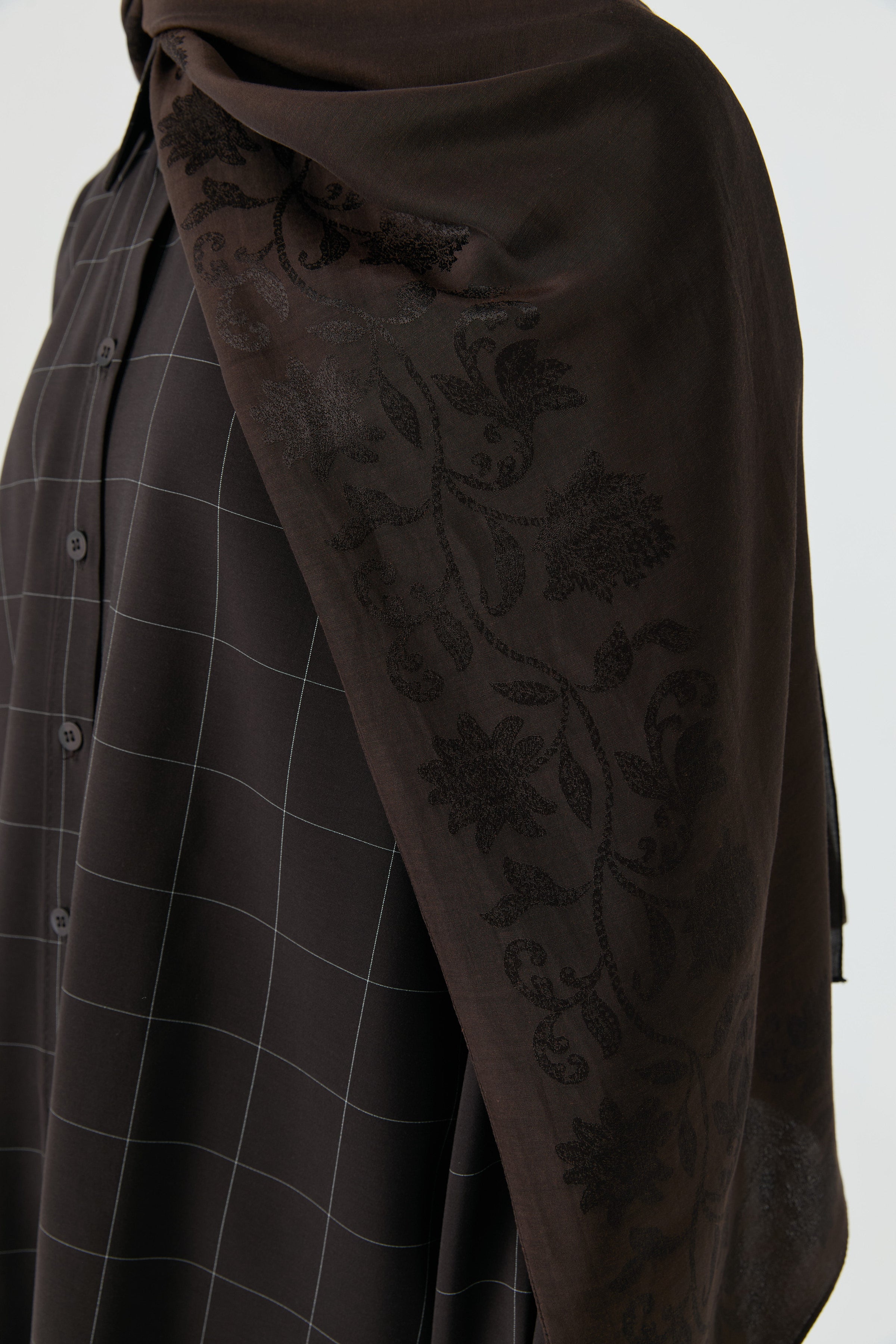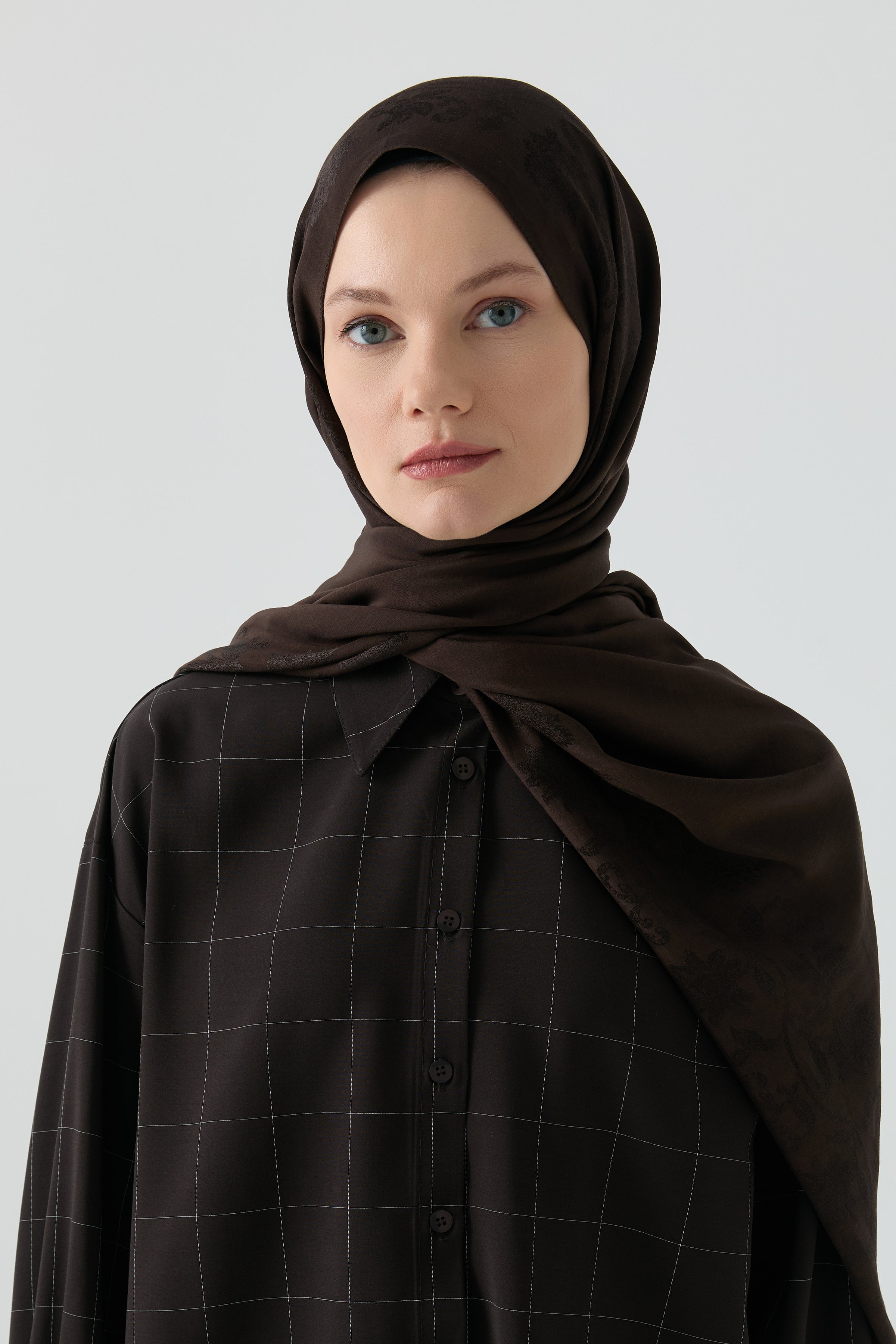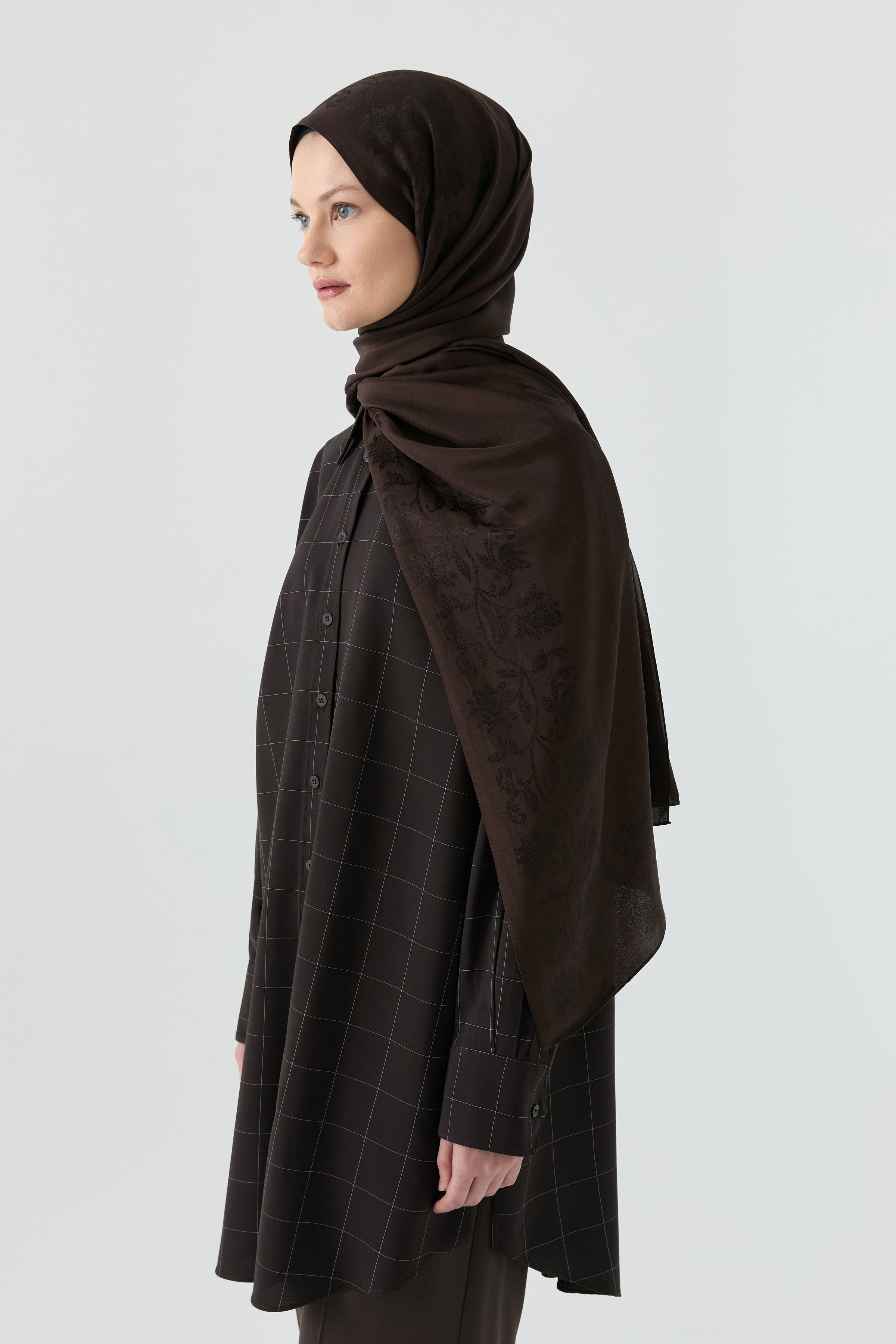 Nevgül Jacquard Natural Shawl - Bitter Coffee