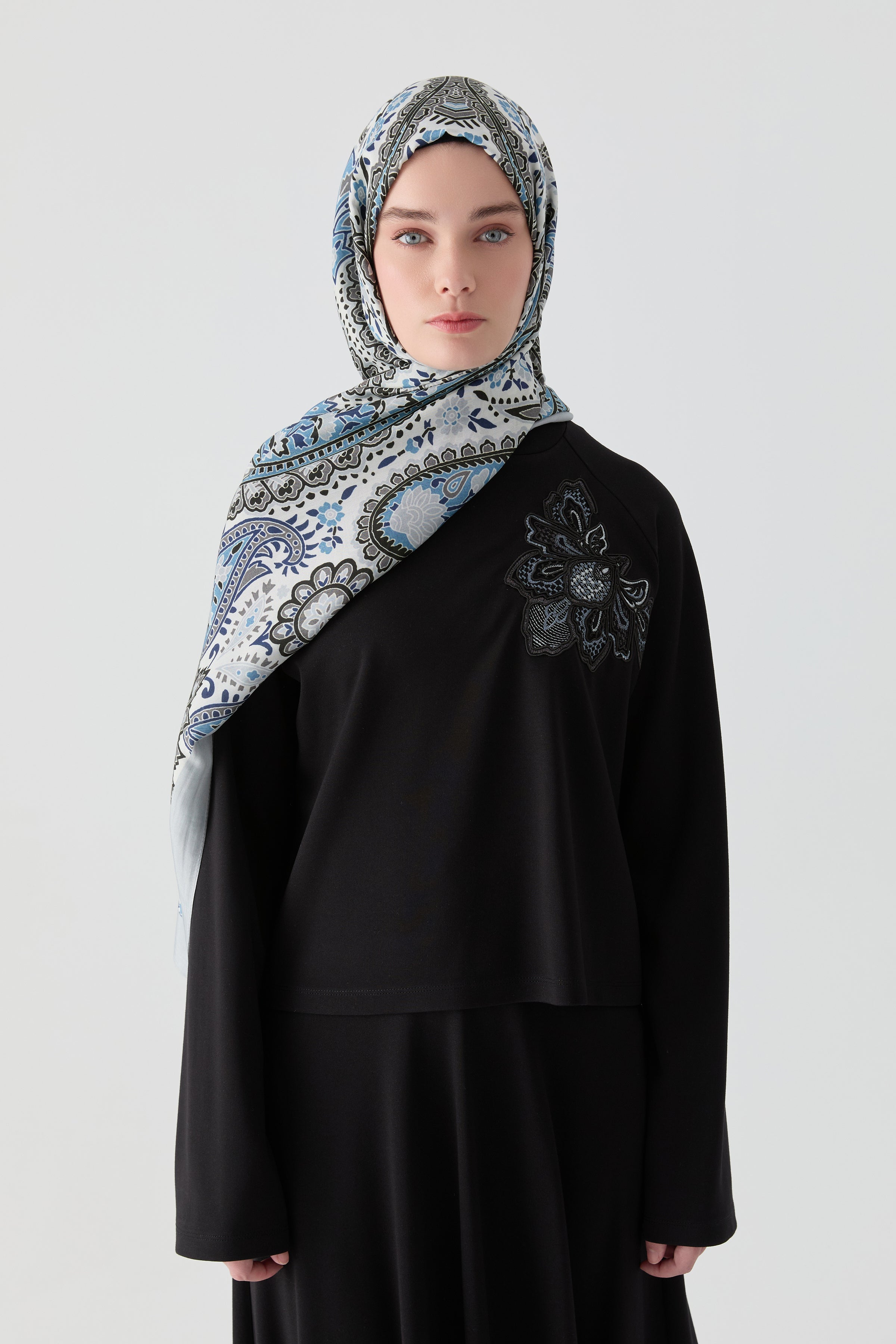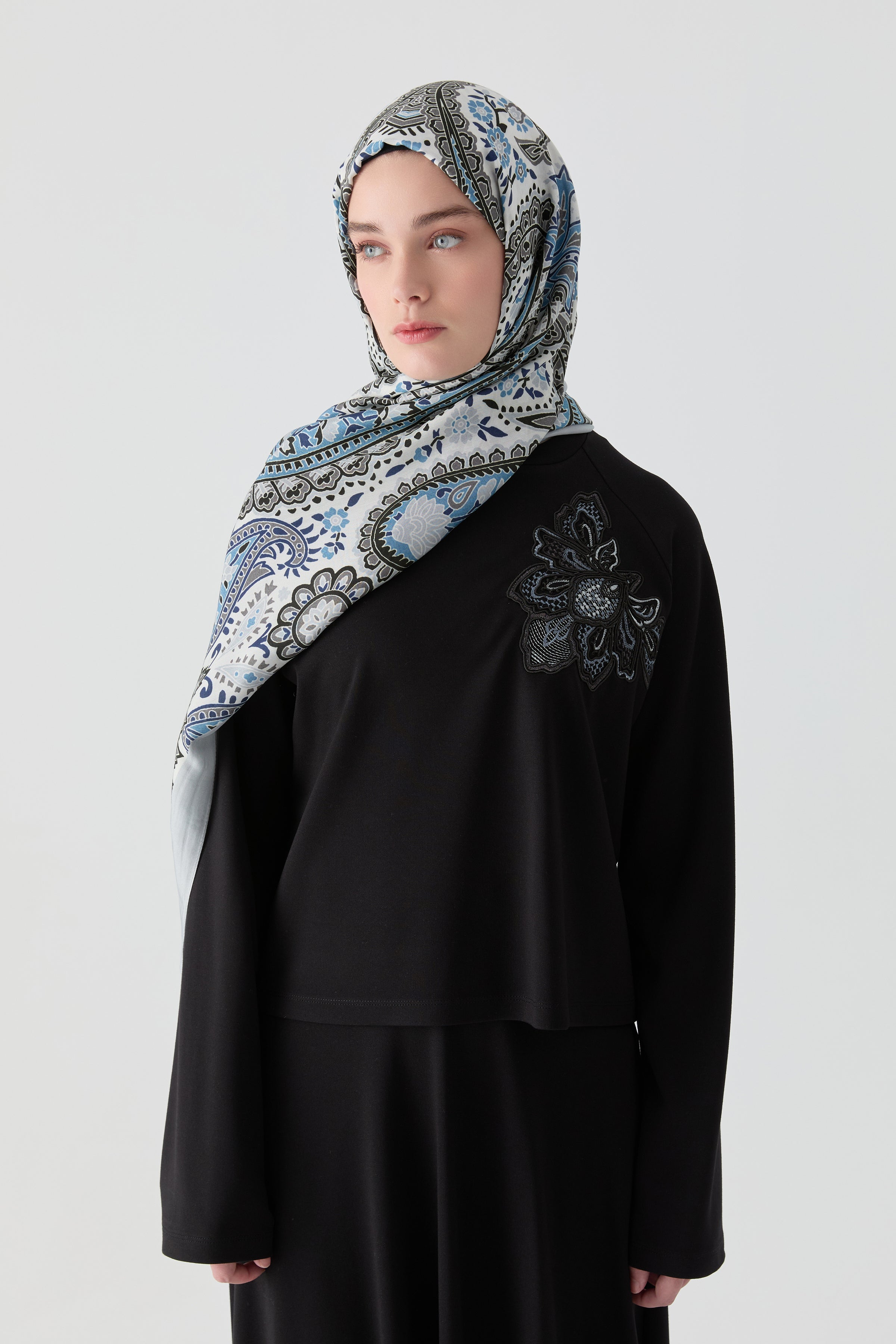 Designed with elegant paisley patterns, this natural shawl reimagines classic motifs with a modern twist. Its natural texture feels soft against the skin, while its fine fabric provides lightweight comfort all day long.