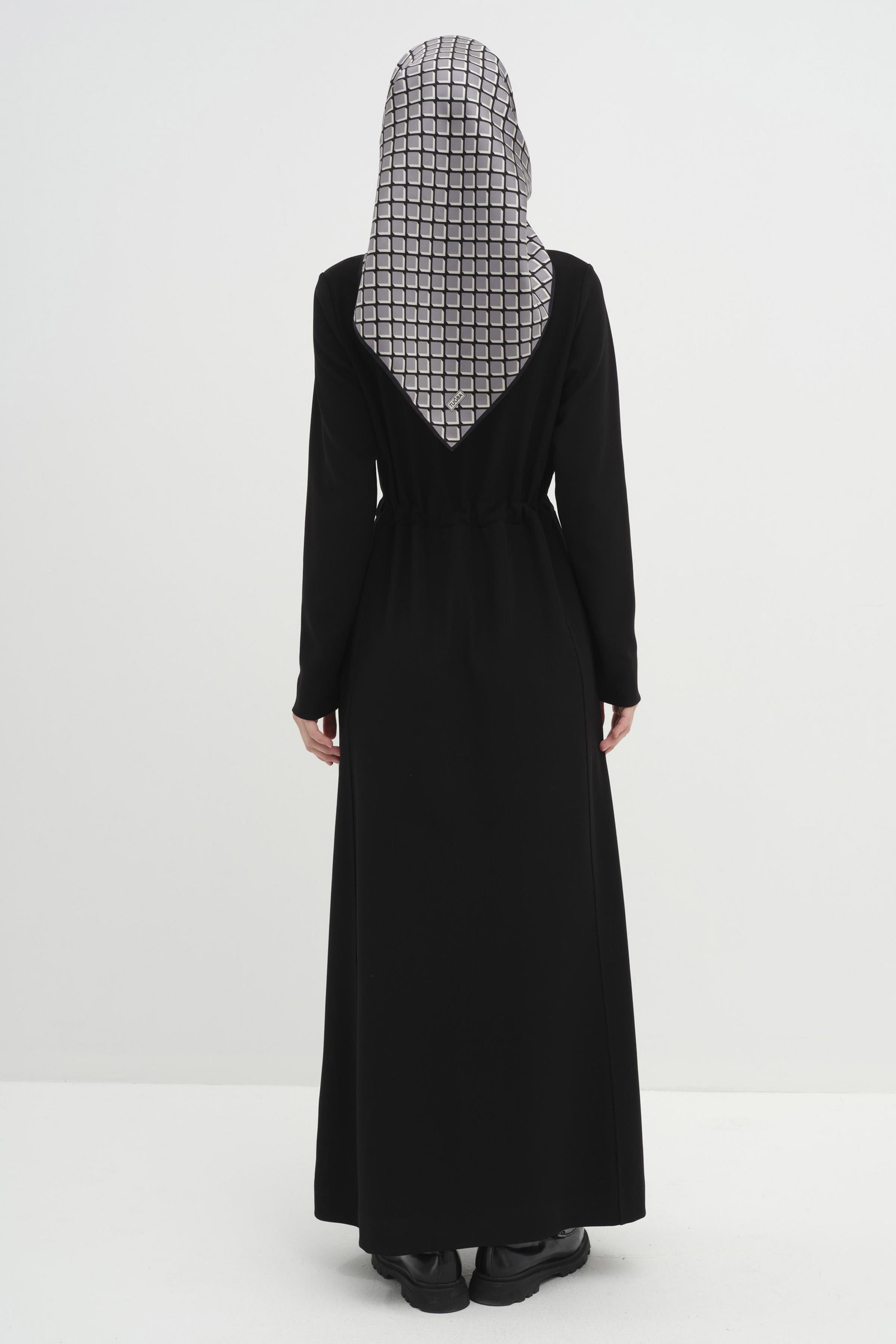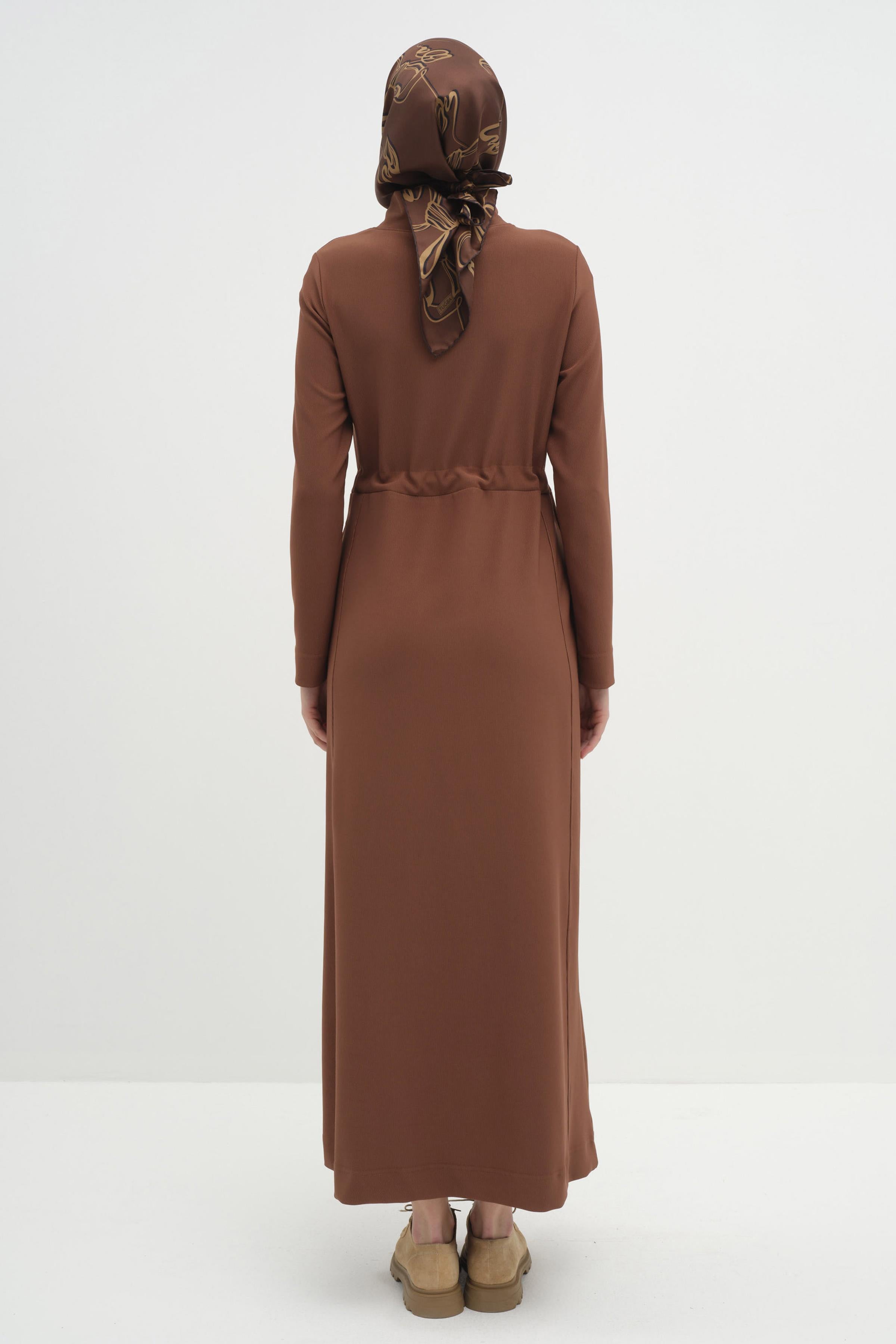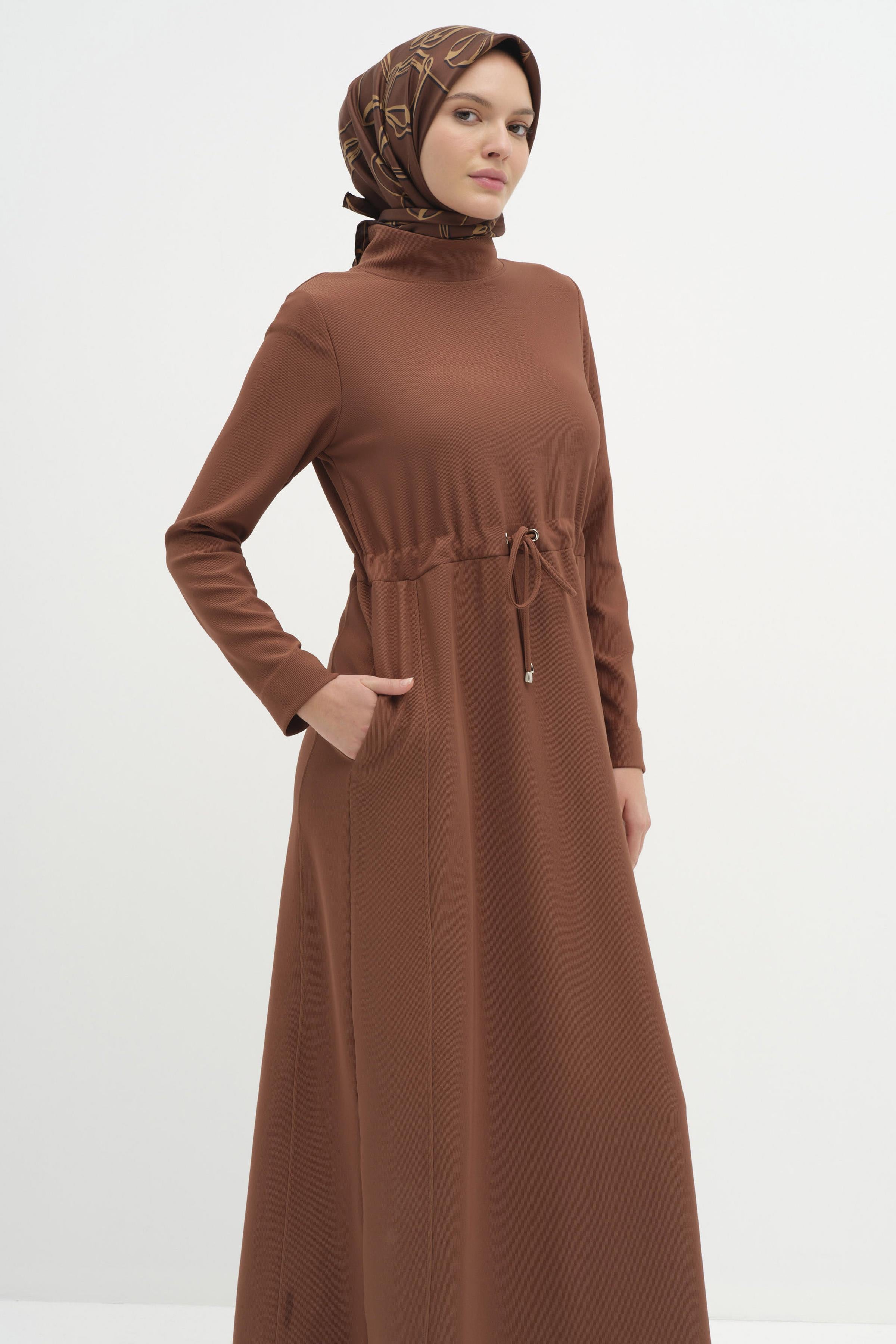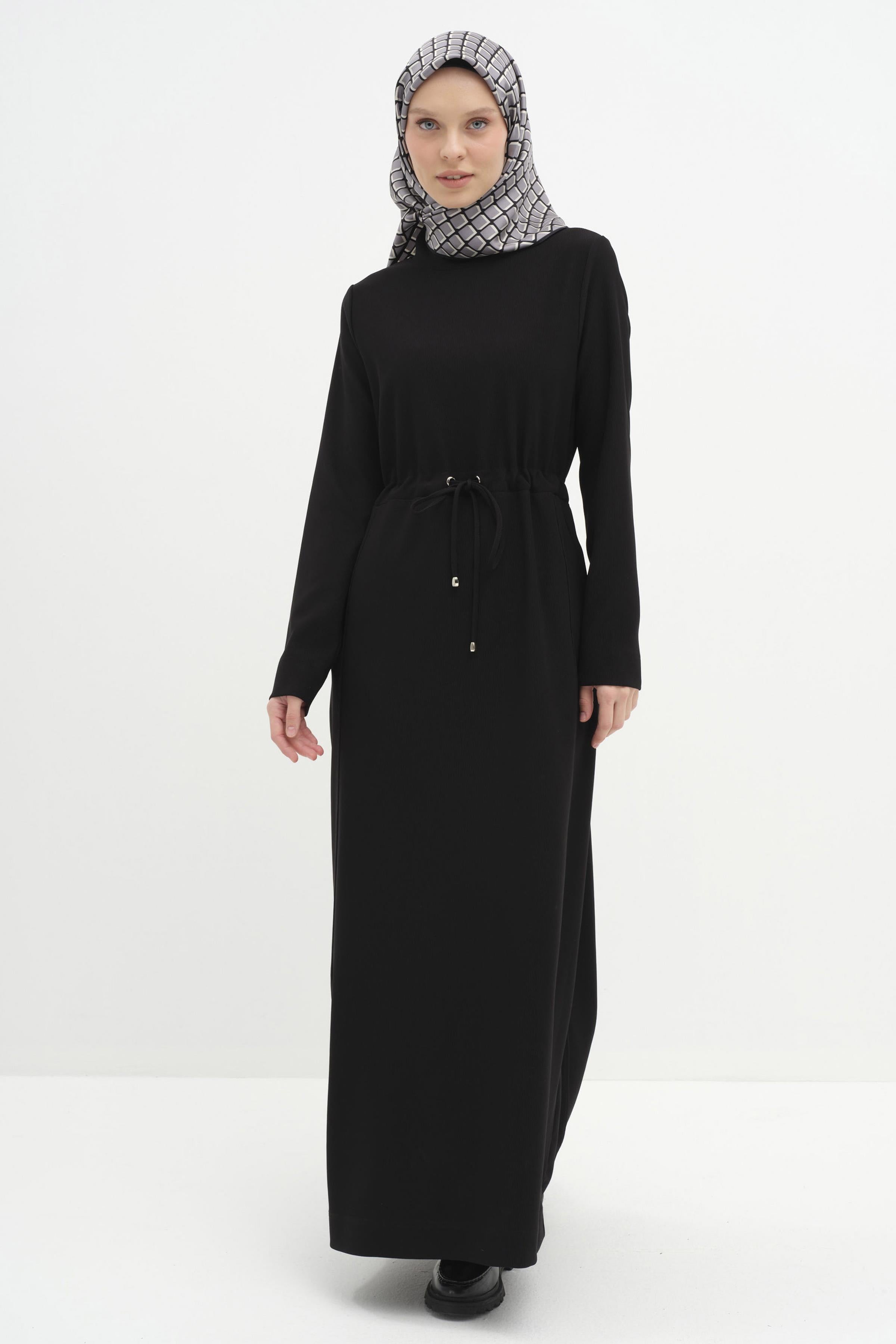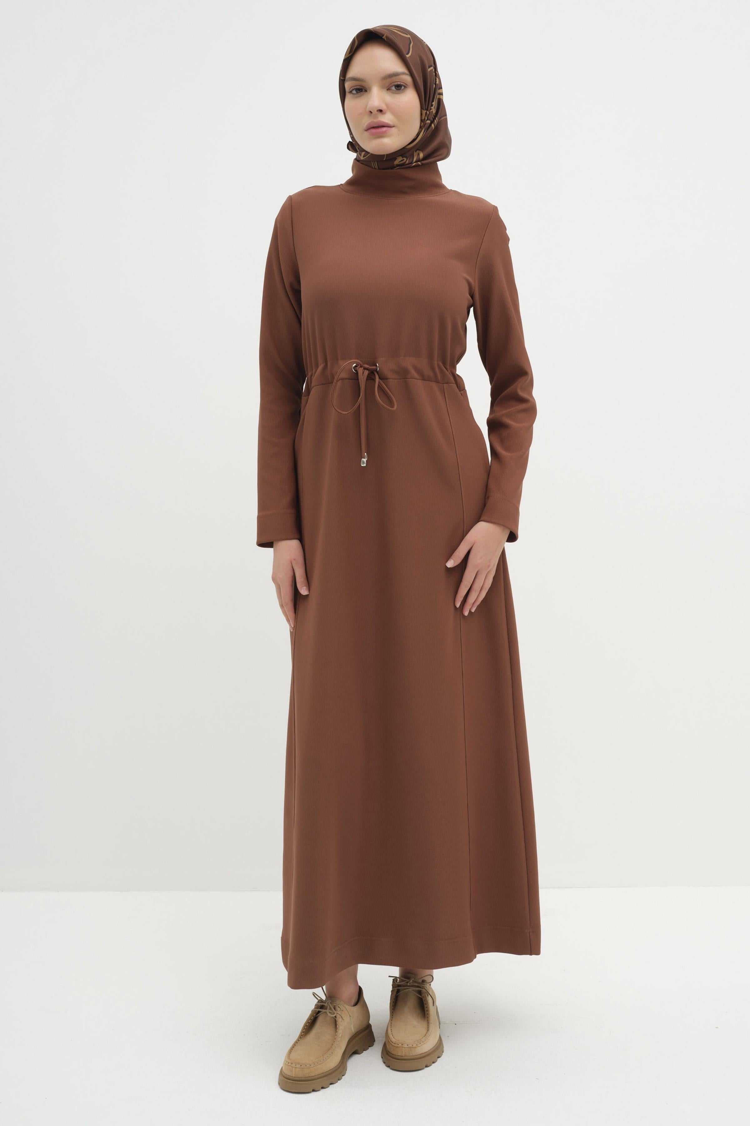 The drawstring detail at the waist gives the dress an elegant silhouette while ensuring comfortable wear. The knitted fabric hugs the body, creating a modern look and offering freedom of movement.