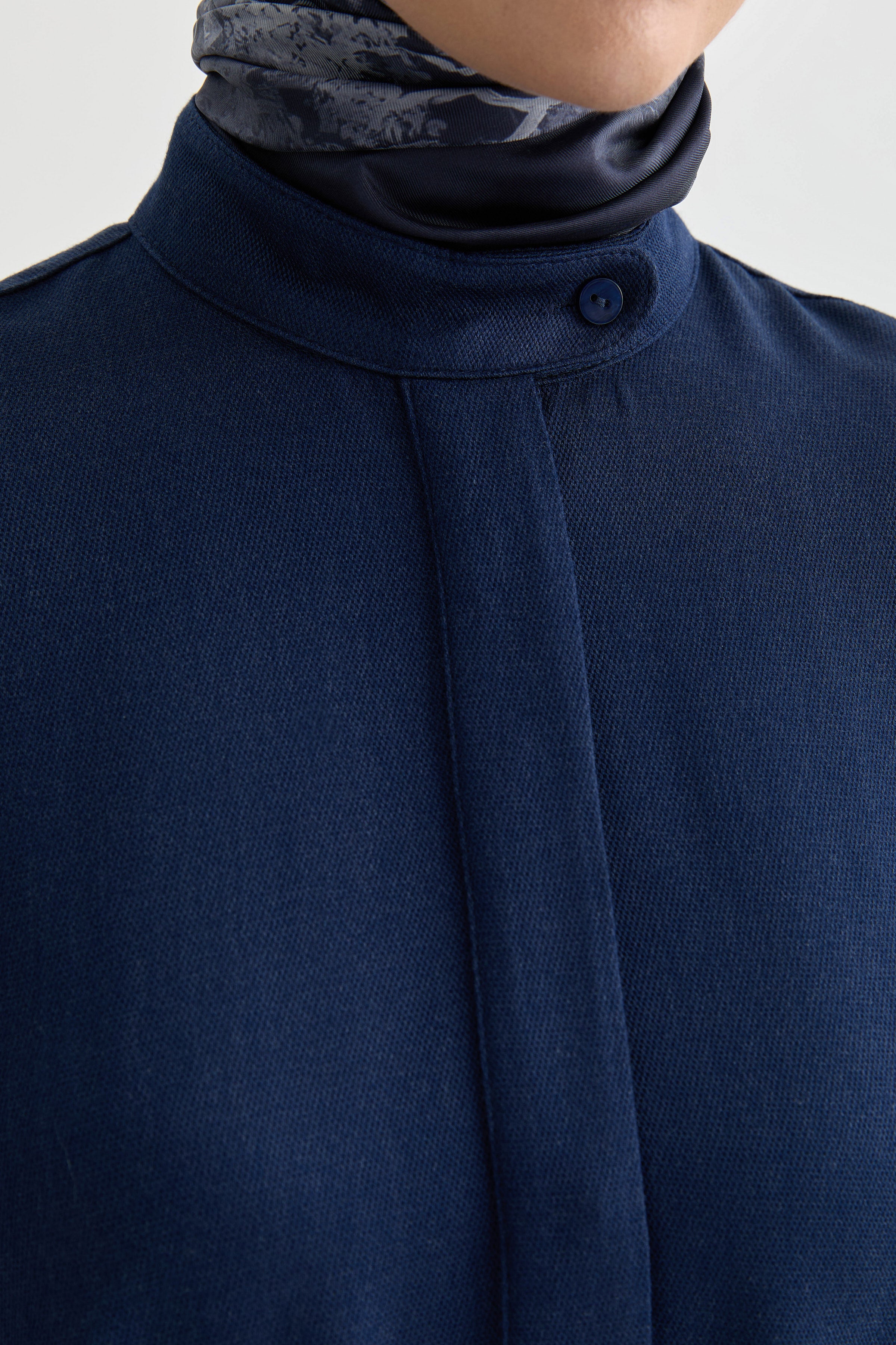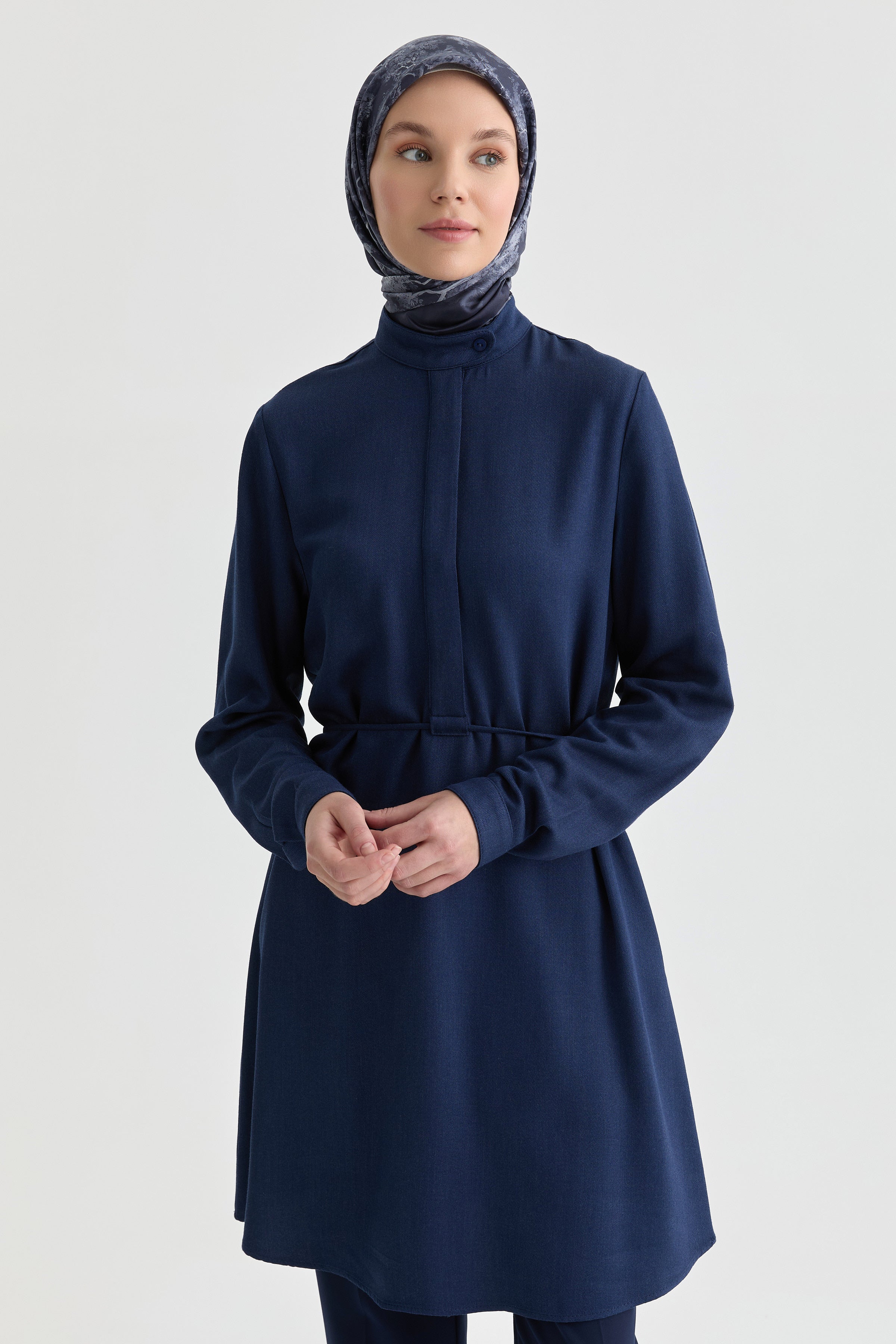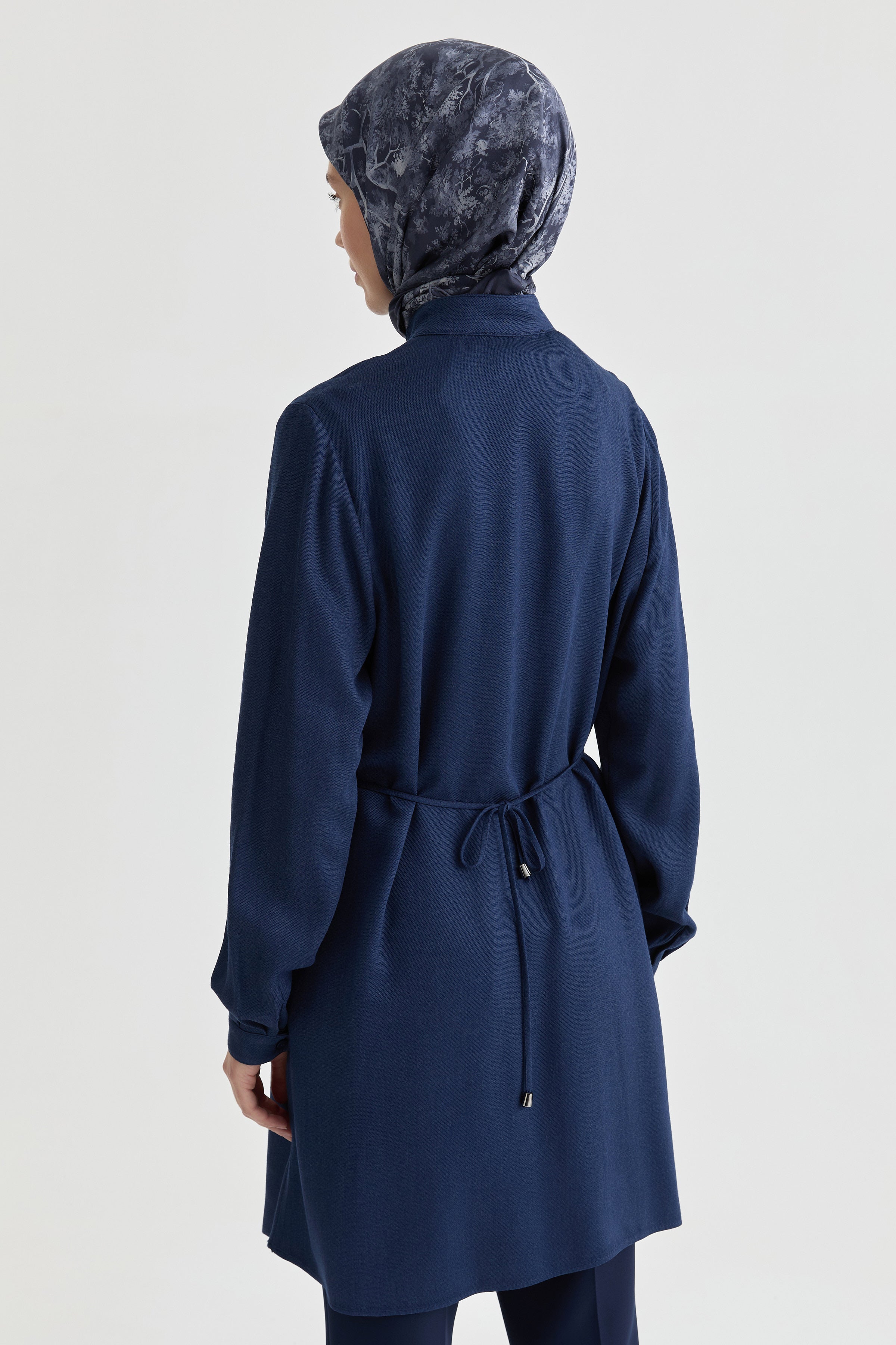 Bel kısmındaki bağcık detayıyla formu isteğe göre şekillendirilebilen bu tunik, akıcı yapısıyla gün boyu konfor sunar. Minimal çizgileri şehir stiline temiz ve modern bir hava katarken, bağcık vurgusu tasarıma hafif bir dinamizm ekler.
