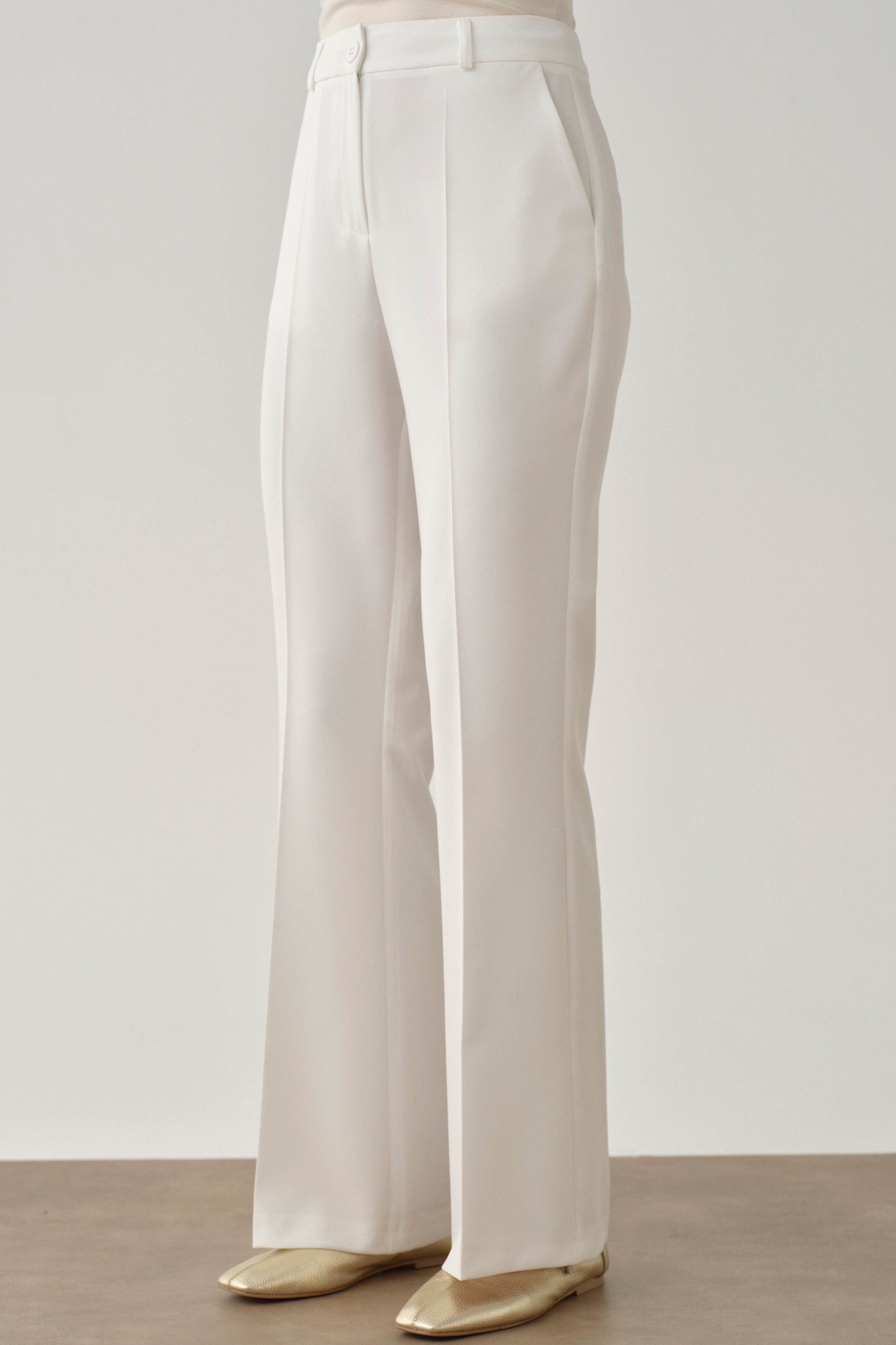 Flared Basic Trousers - Ecru