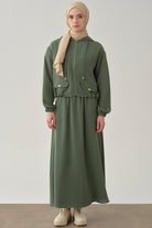 Elastic Jacket Skirt Set - Green