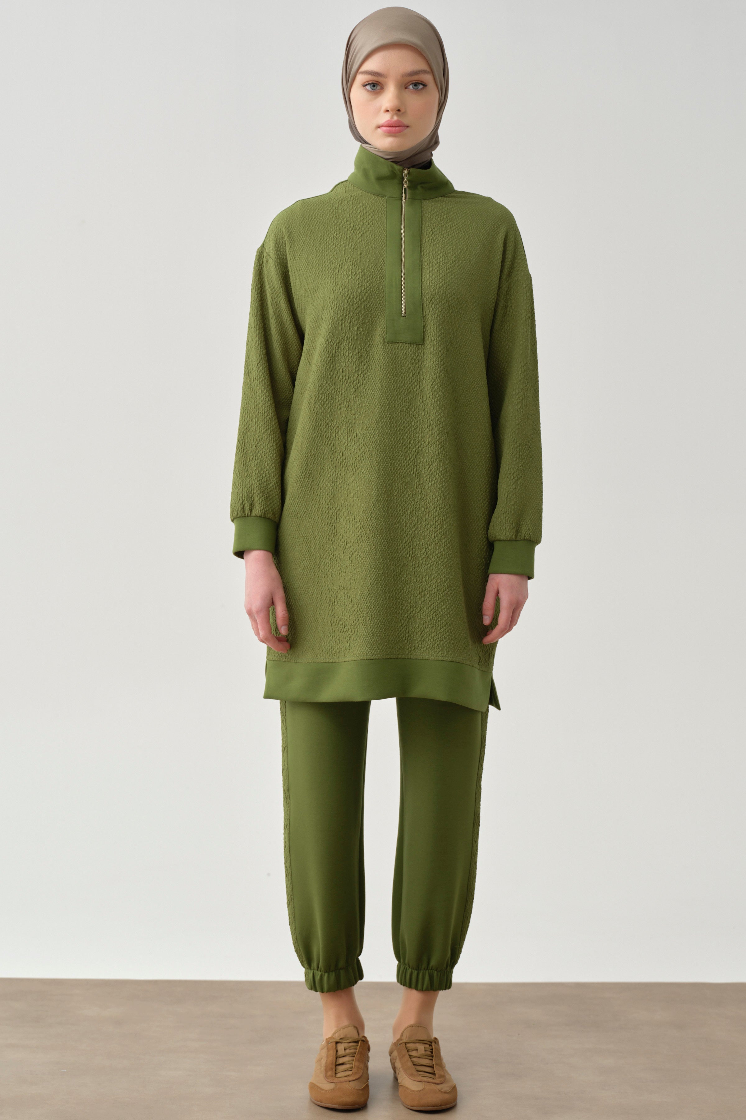 This knitted set stands out with its comfortable and stylish design, and its soft texture offers all-day comfort. Thanks to its modern cut, it can be easily worn in both casual and elegant outfits.