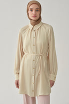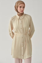 Featuring a double-layered structure and a belt detail that cinches the waist, this tunic is a versatile piece you can wear in every season.