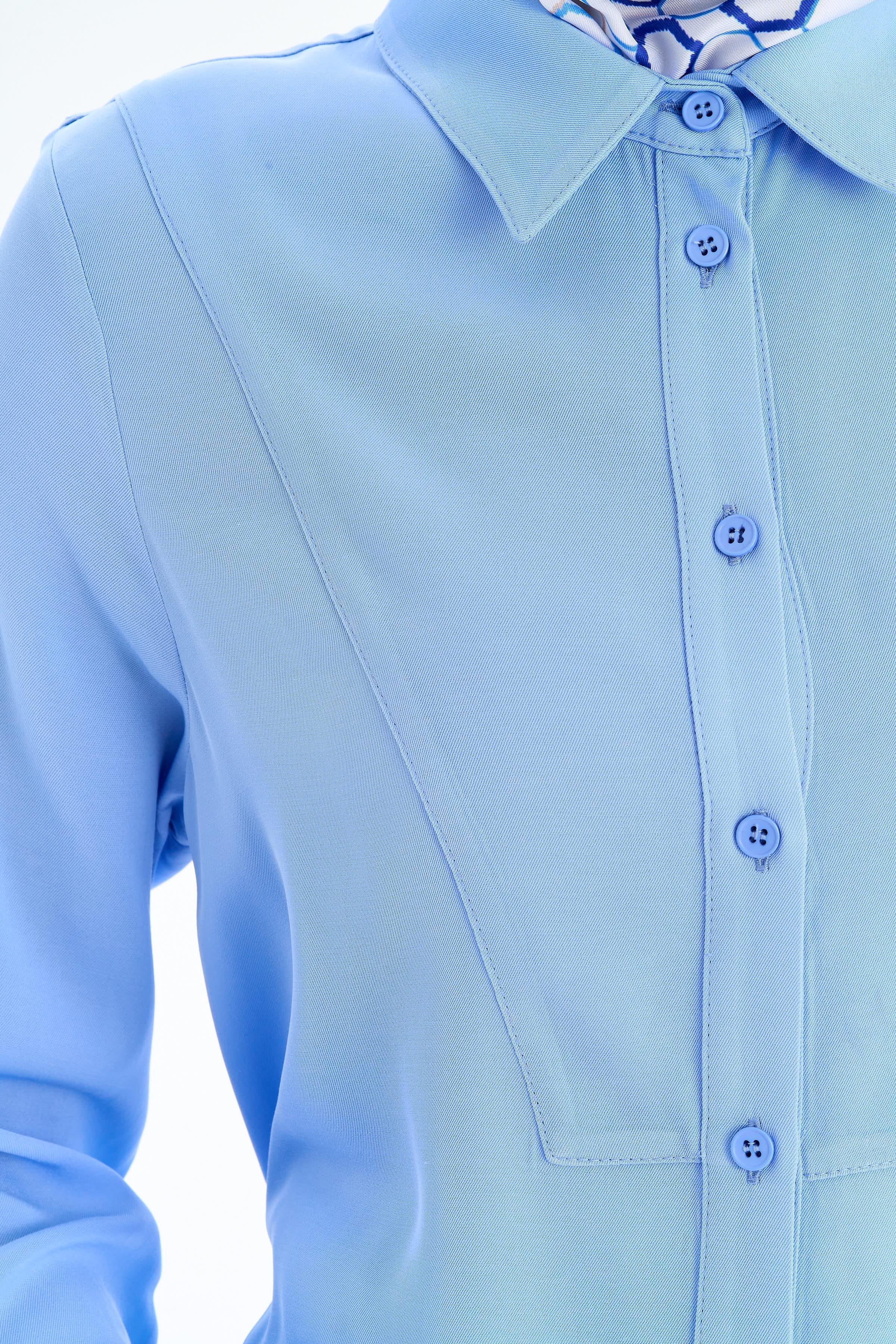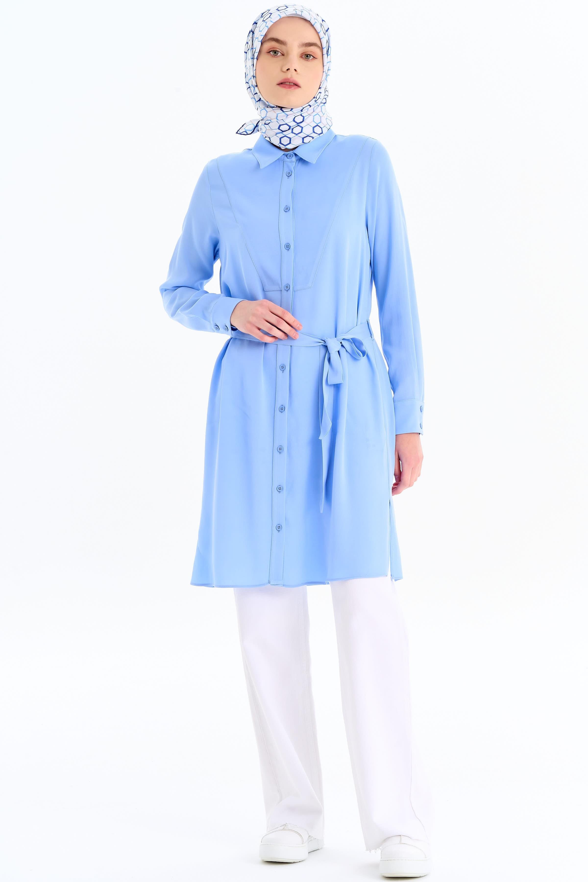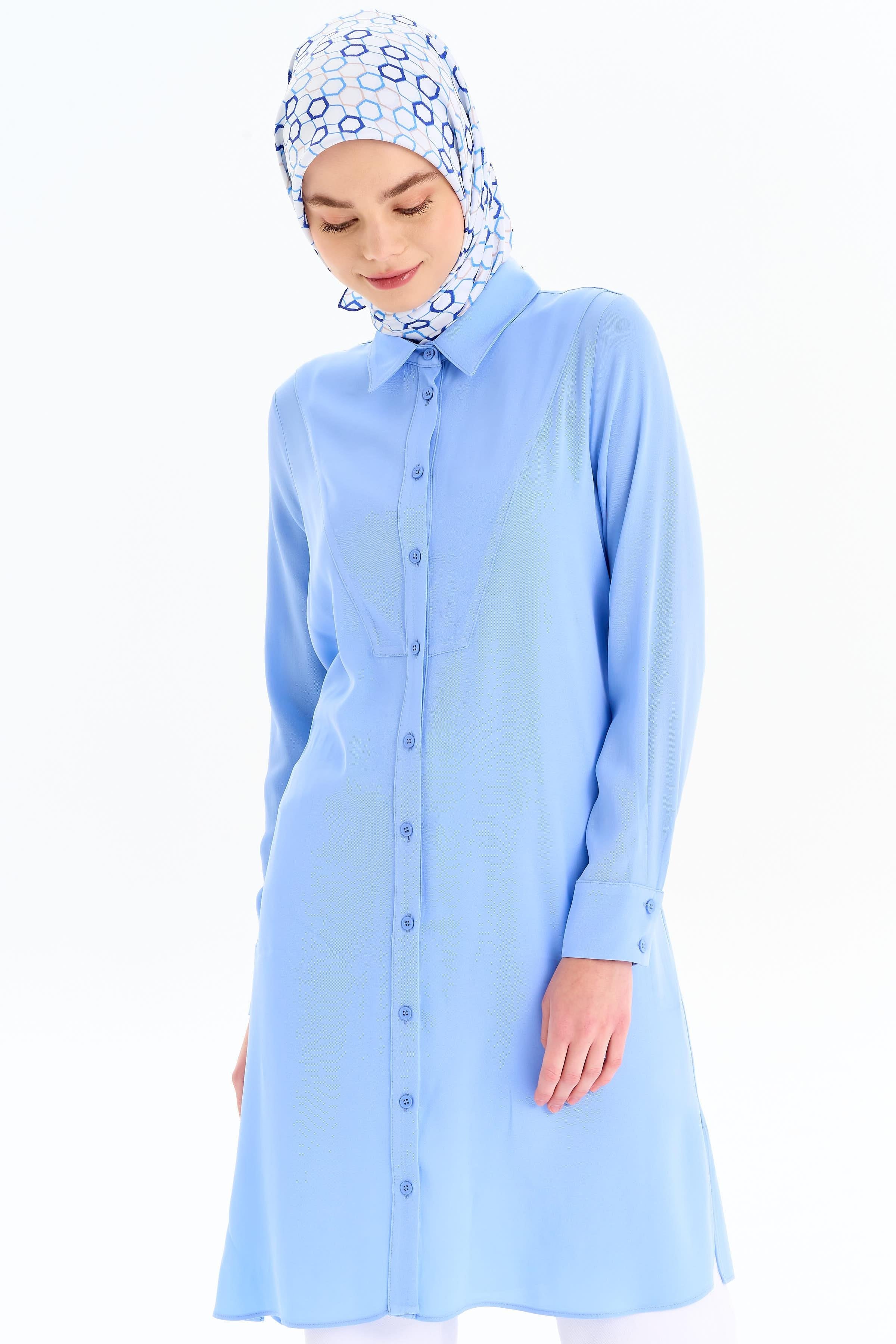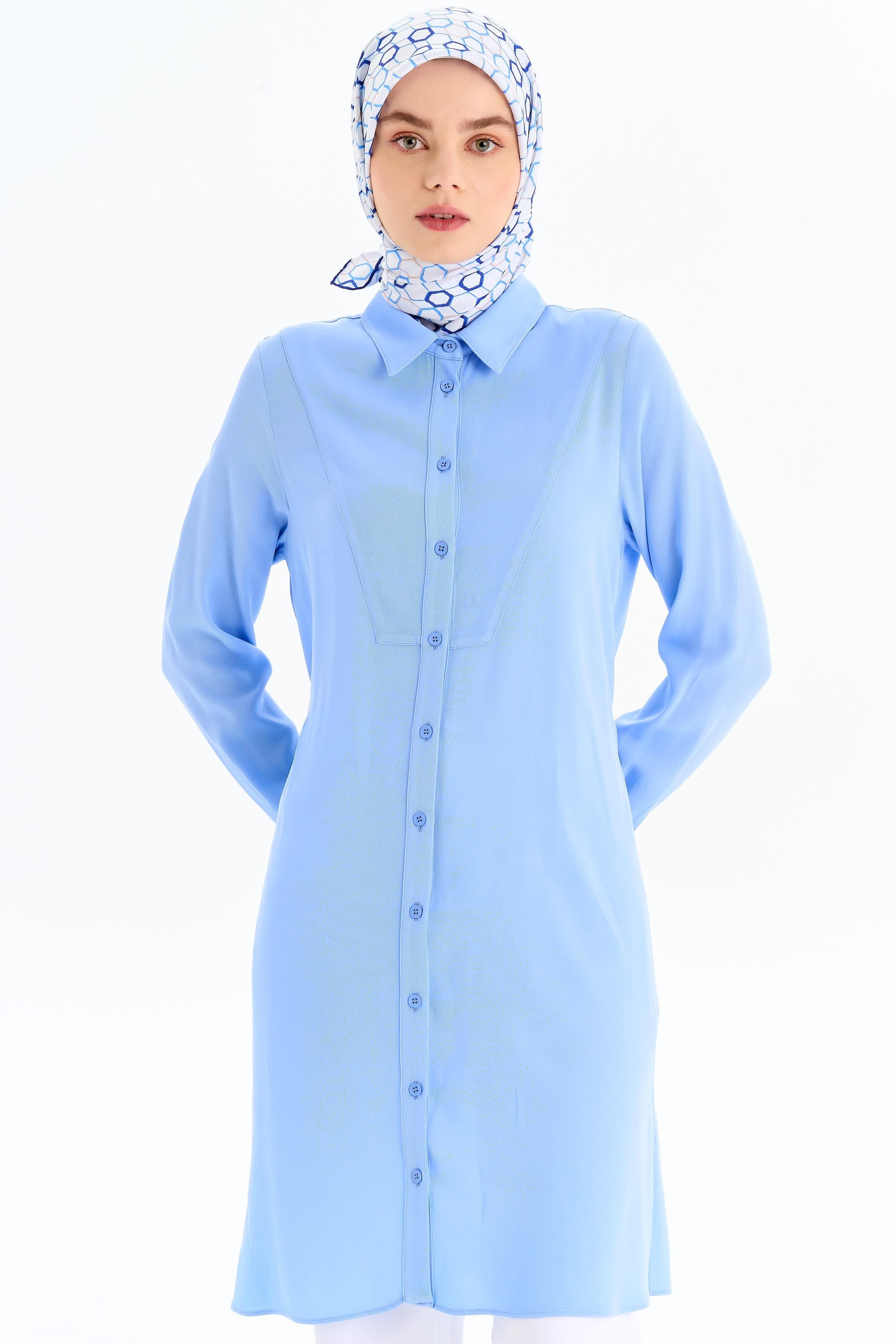 The Mandarin Collar Tunic with Hidden Placket offers an elegant and stylish look with its minimalist design. The mandarin collar detail adds a modern touch to the tunic, while the hidden placket creates understated sophistication.