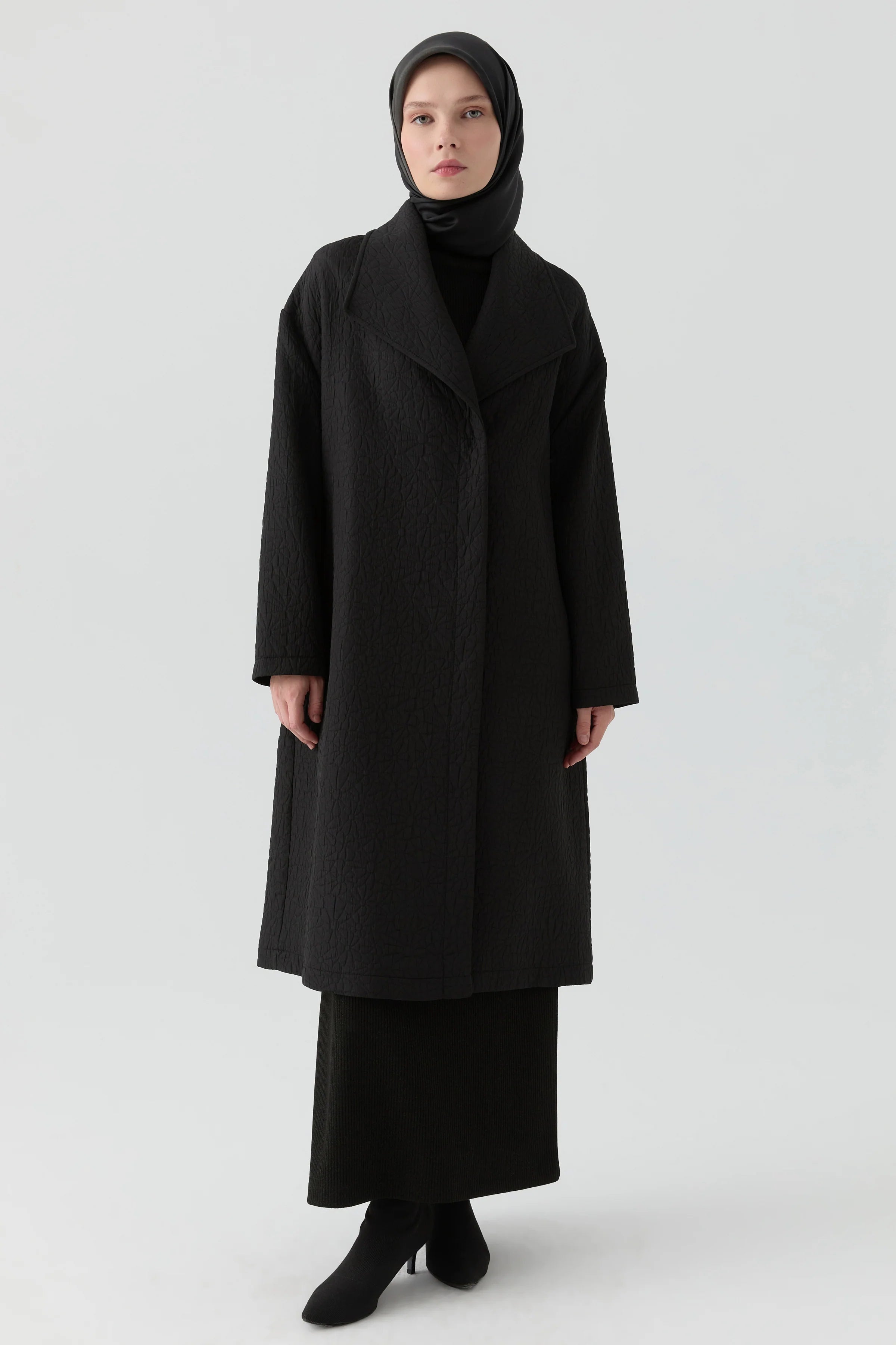 Ideal for transitioning seasons, this thin, quilted coat emphasizes comfort with its lightweight construction. Its modern lines and minimal design add a sophisticated touch to urban style, while its relaxed fit allows for free movement throughout the day.