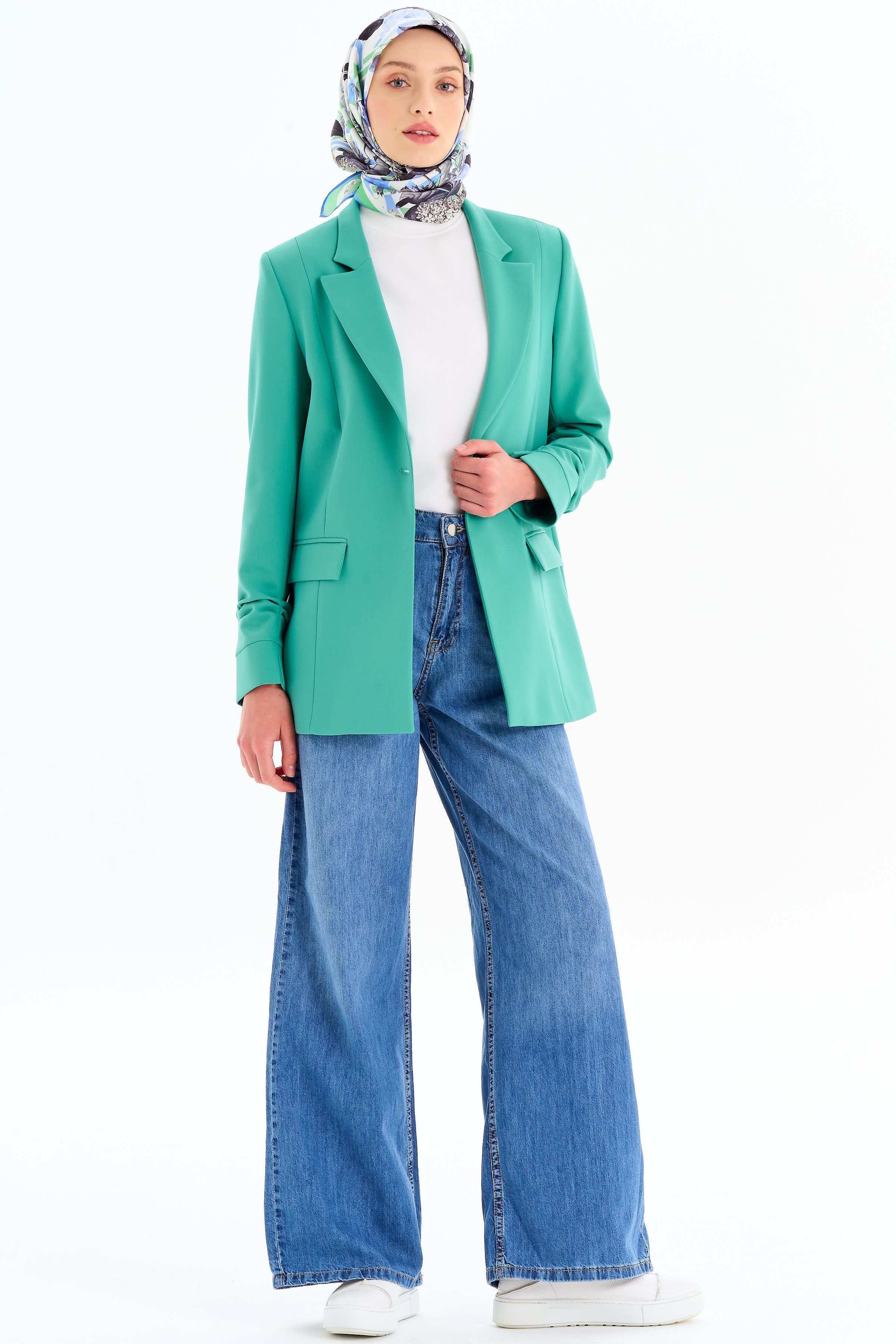 Wide leg denim trousers bring comfort and elegance together. They provide freedom of movement with their wide leg cut and complete your style with their classic denim texture.