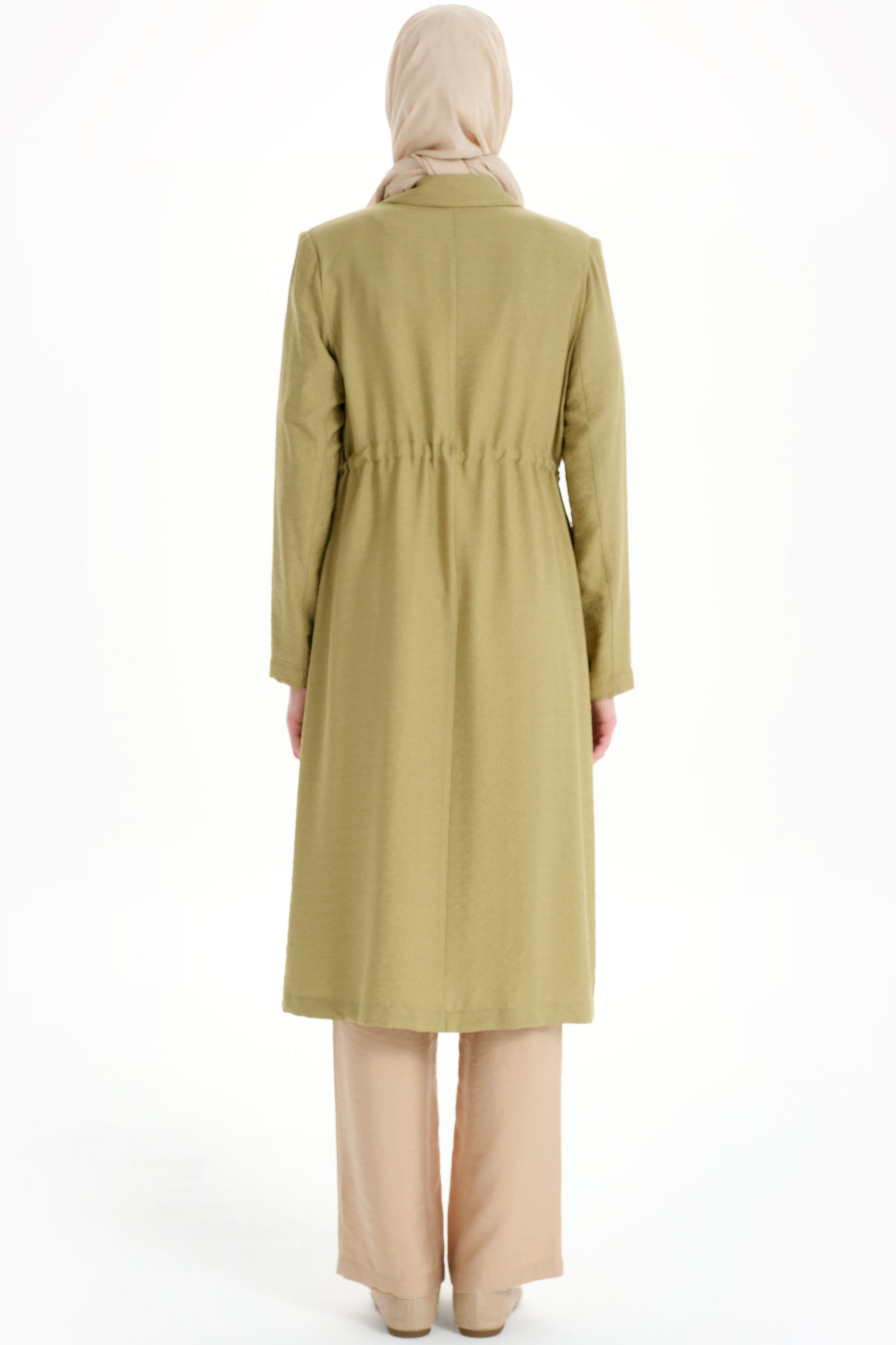 This long jacket, which draws attention with its classic and stylish design, adapts to every style and every situation. It offers a modern look with its two-button structure and creates an elegant silhouette with its long cut.