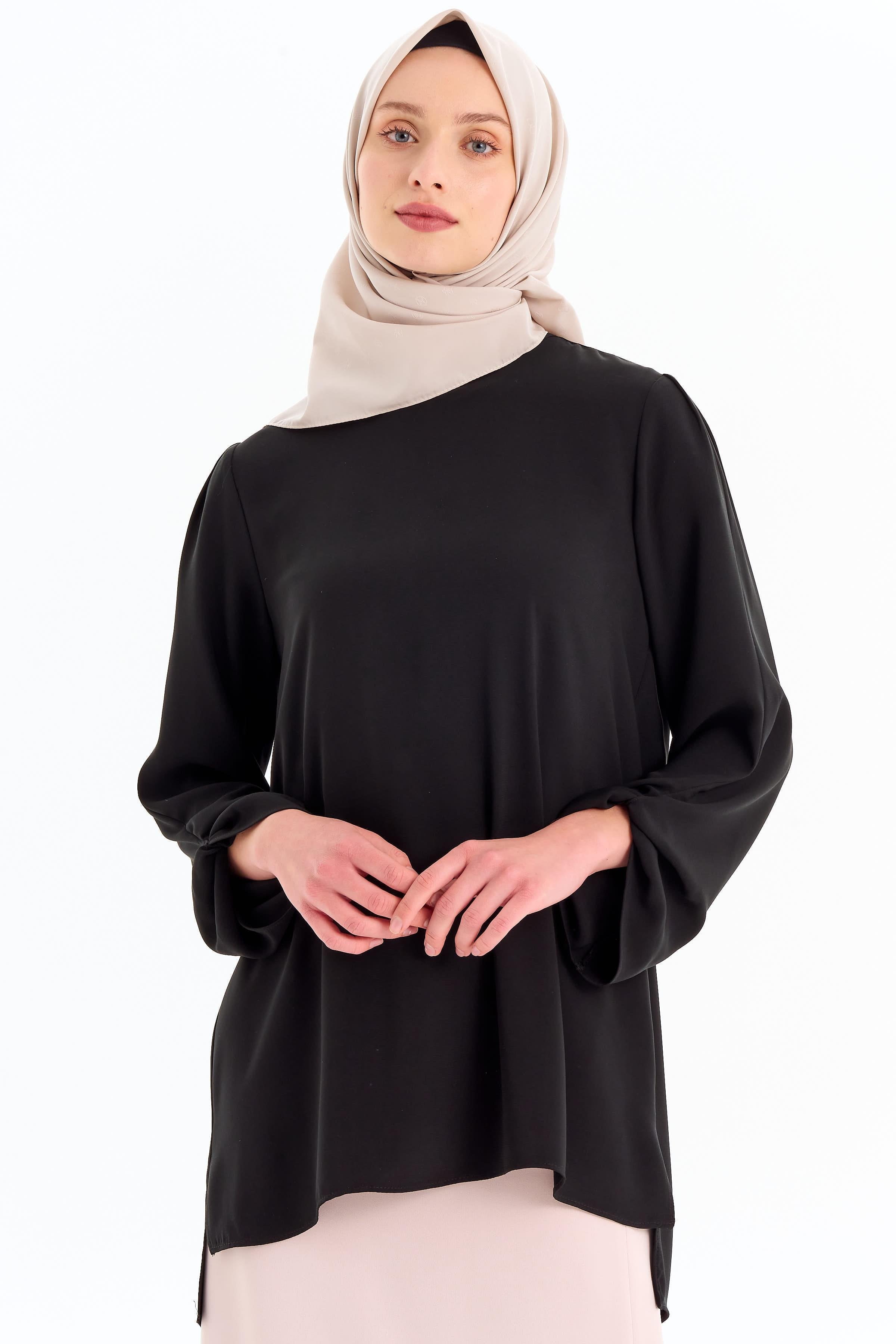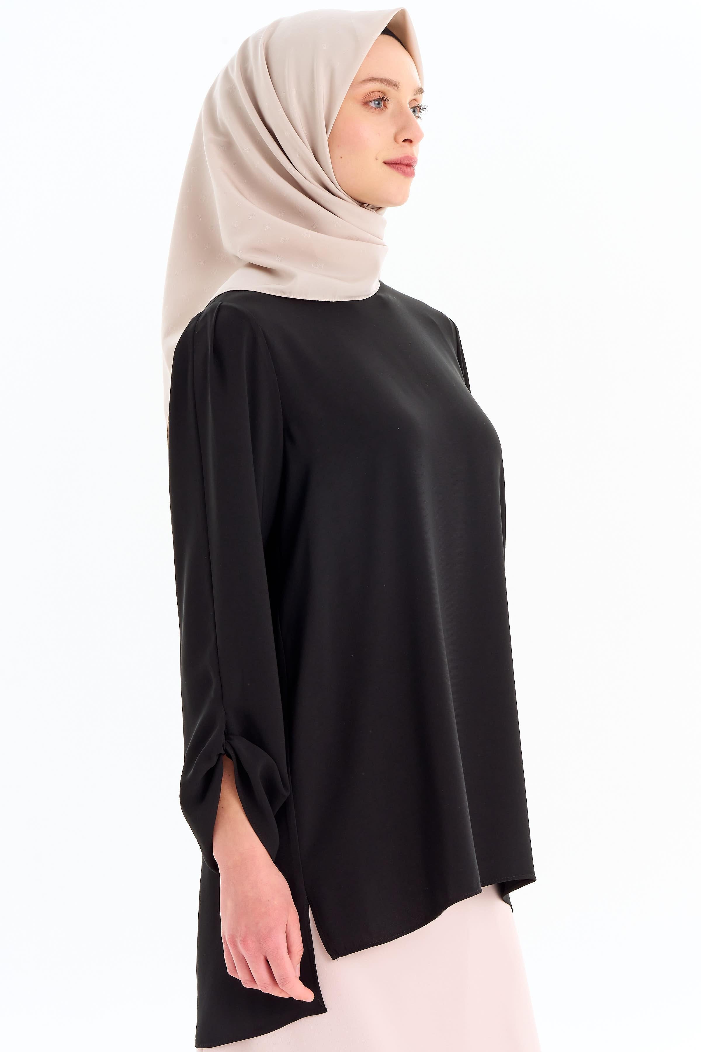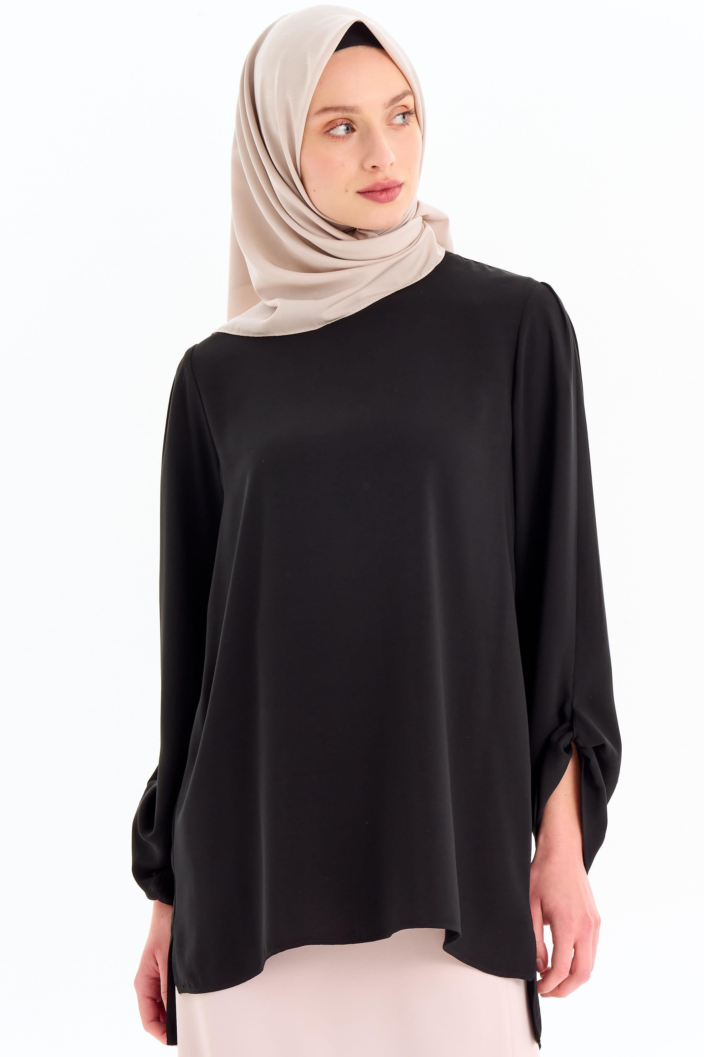 Crew Neck Sleeve Detailed Blouse - Black