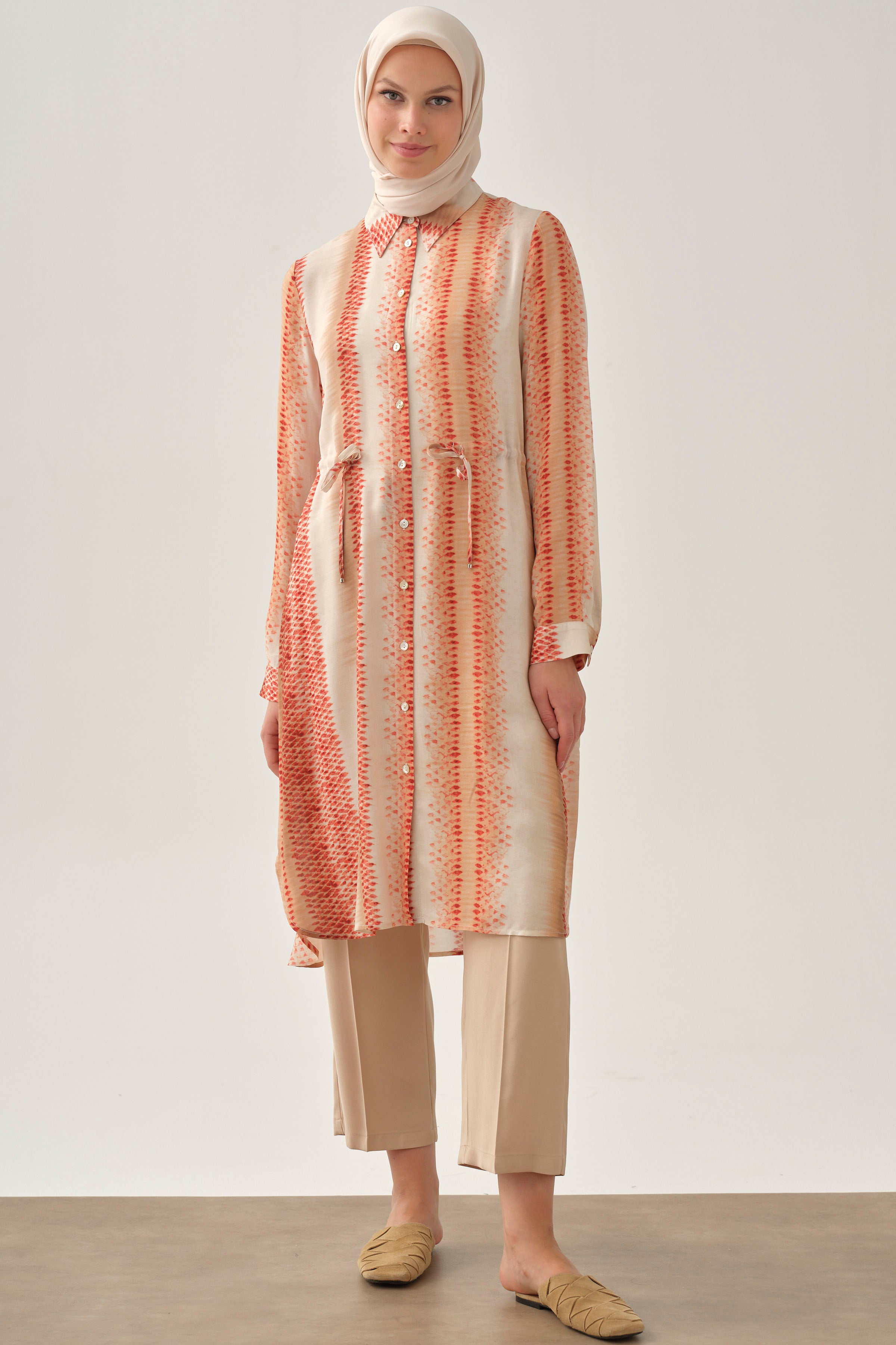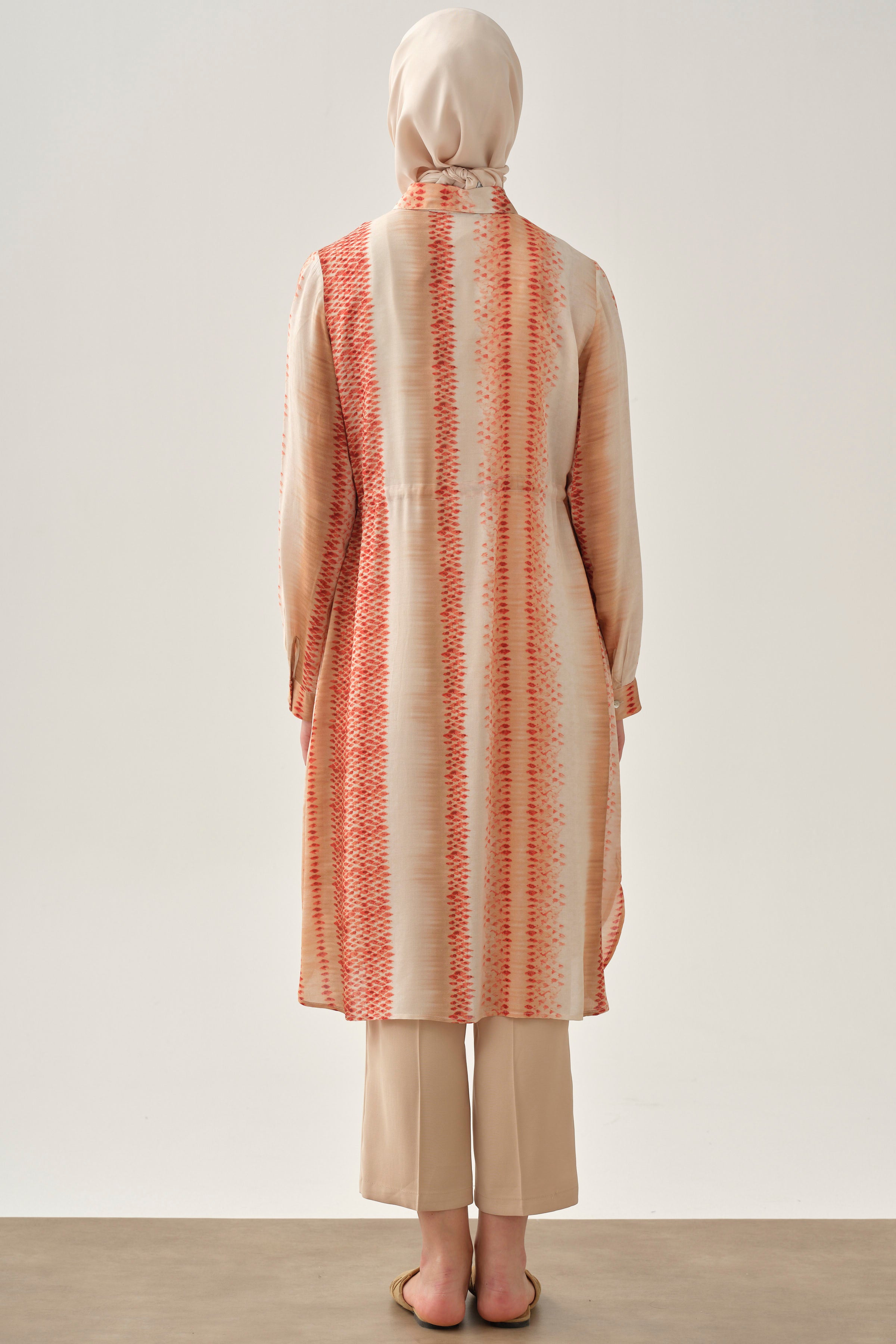 Highlighting elegance with soft color transitions, the Gradient Patterned Tunic combines simple elegance with a modern touch. Drawing attention with its gradient pattern, this special piece adds dynamism to your style without compromising on the minimal look.