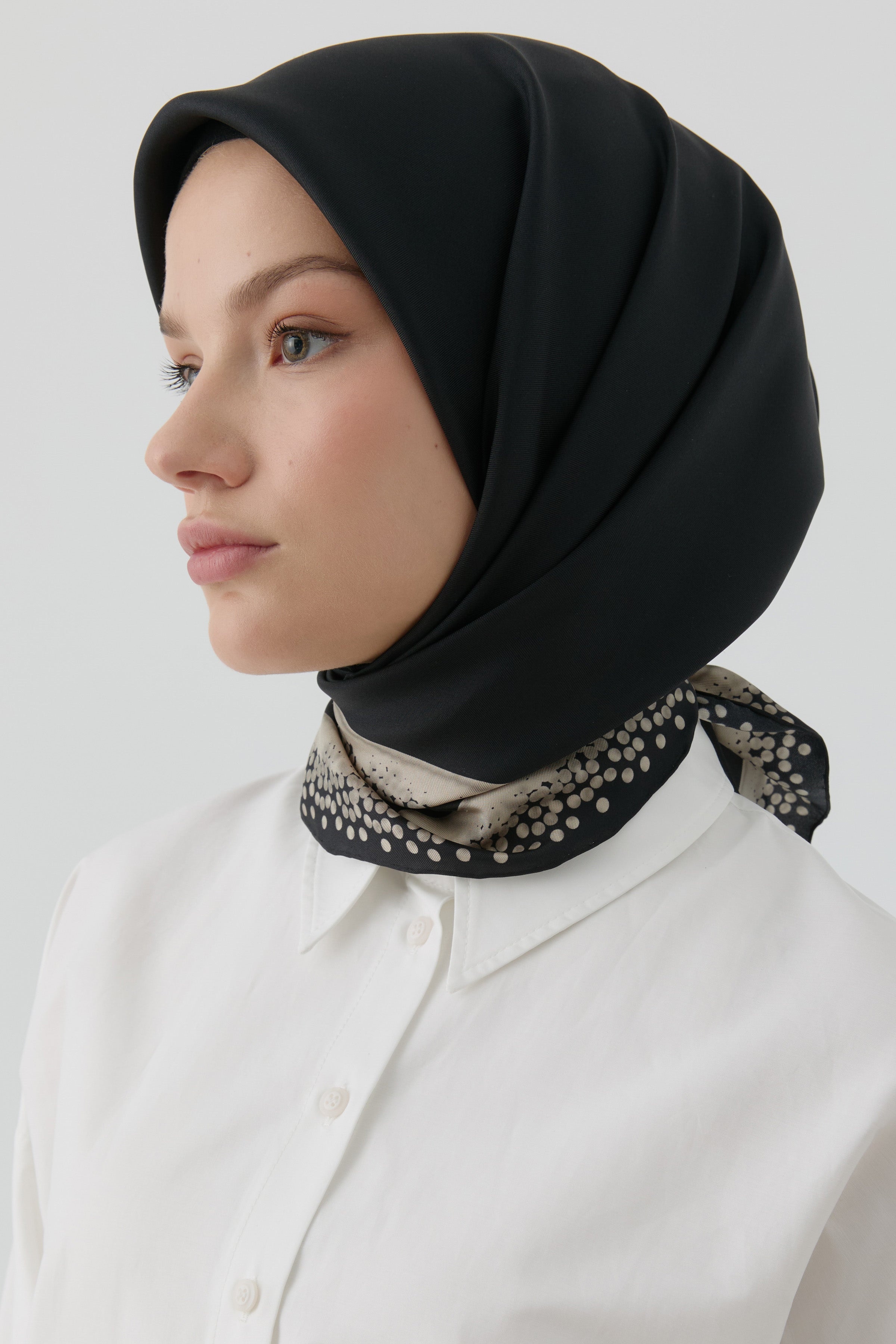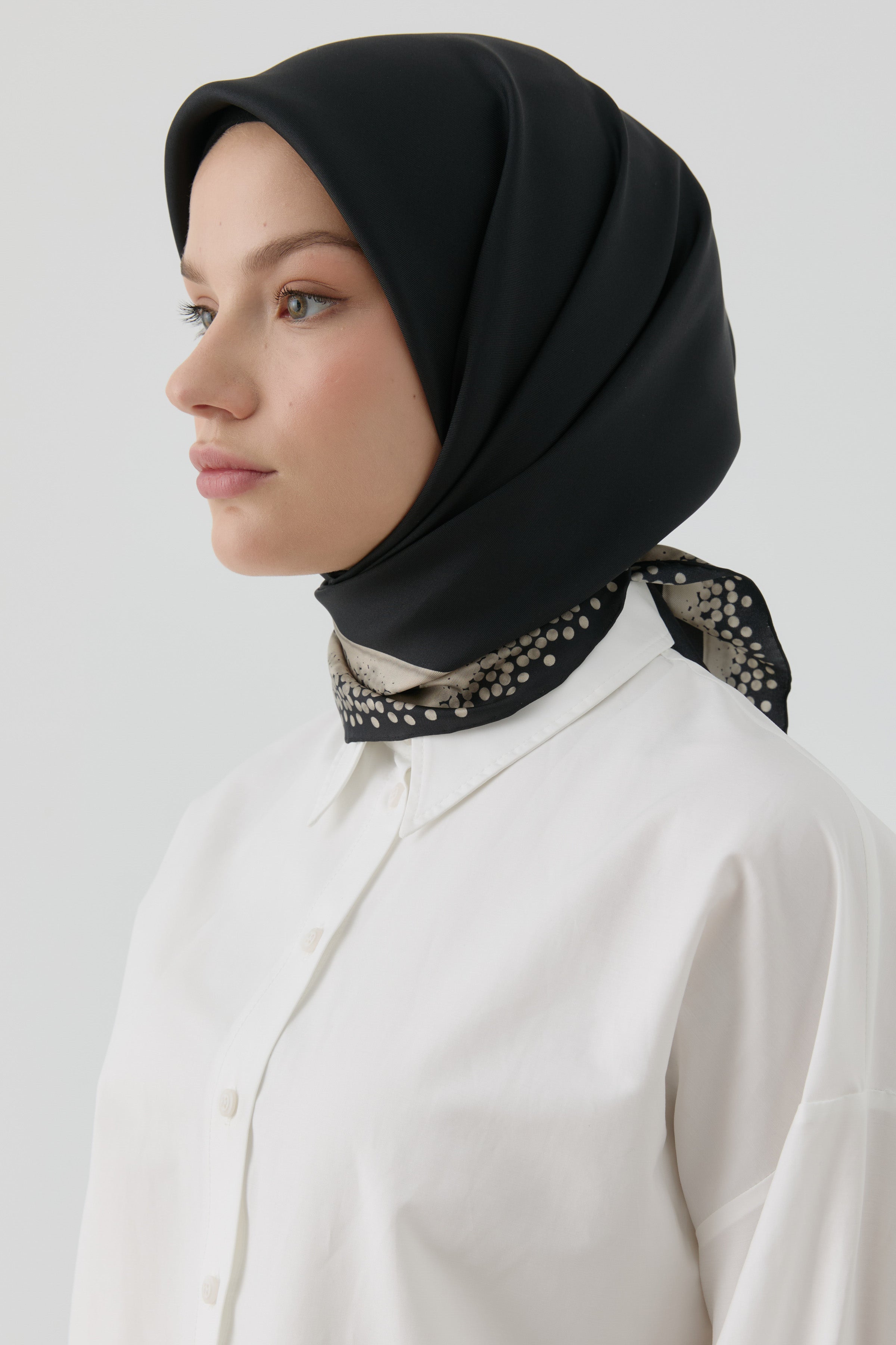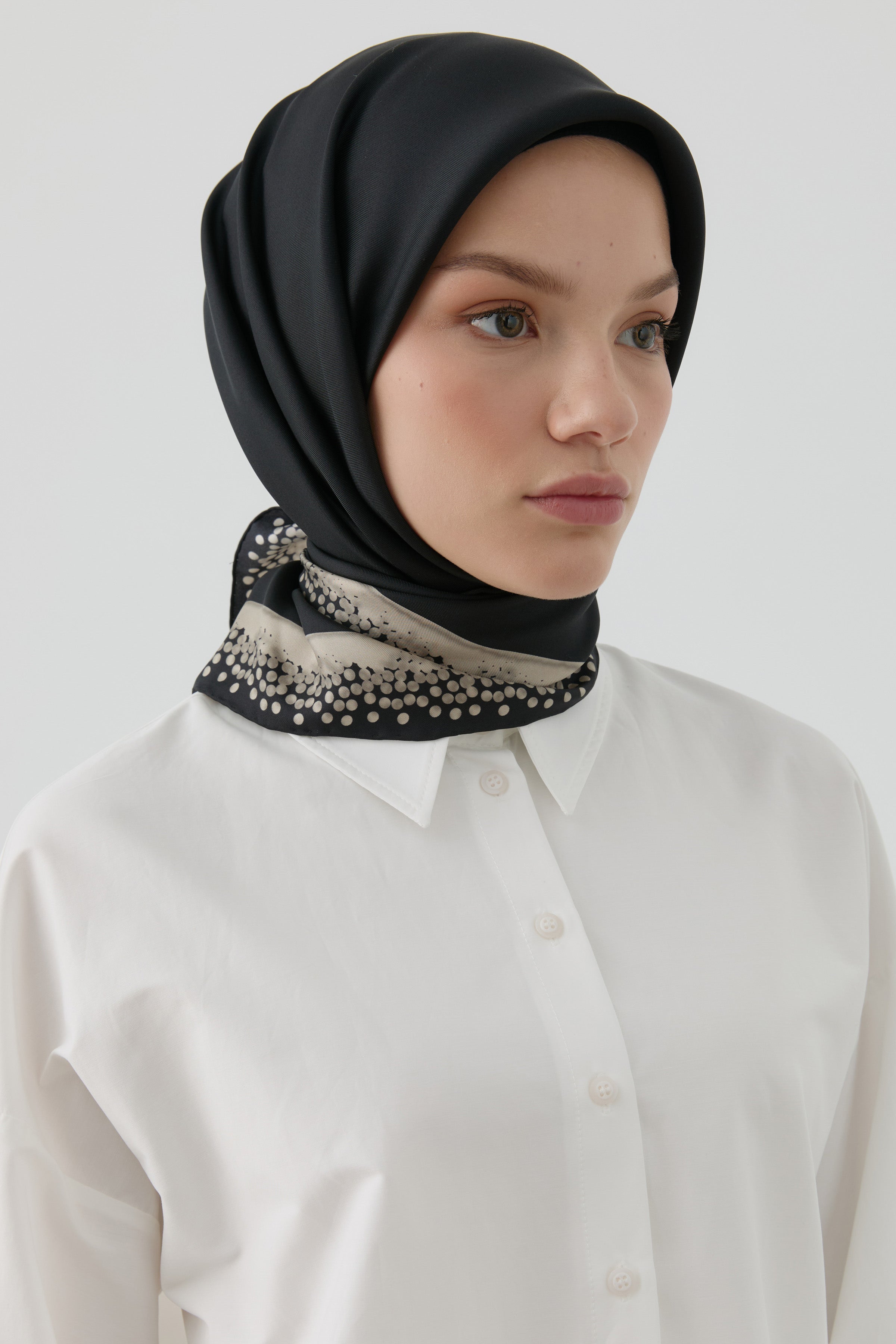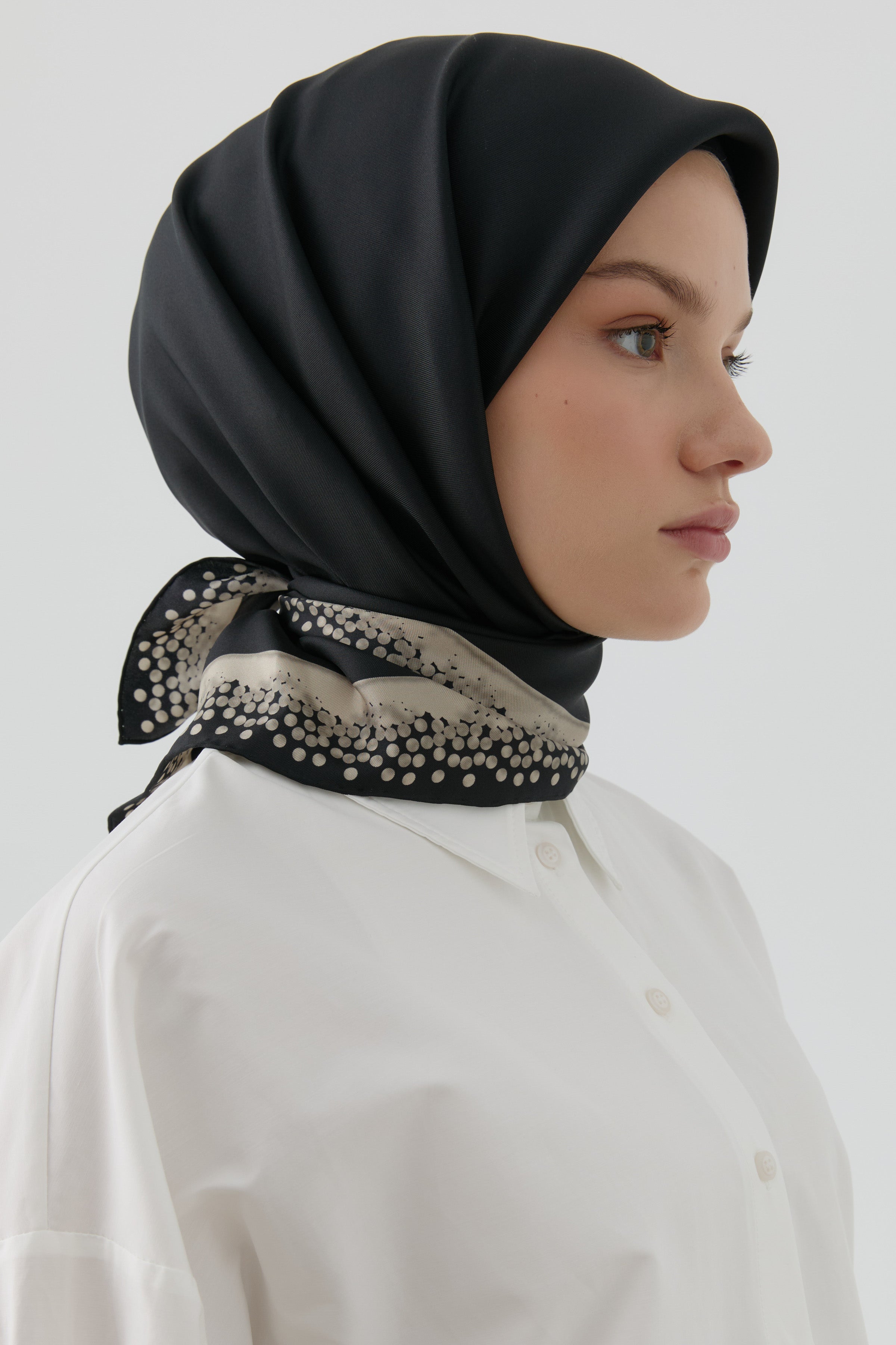 Offering a simple yet striking stance with its elegant dot details on its frame, this silk scarf adds a modern touch to your style. It provides comfortable and stylish use with its fluid texture and shiny structure. It is an indispensable complement to daily and classic combinations.