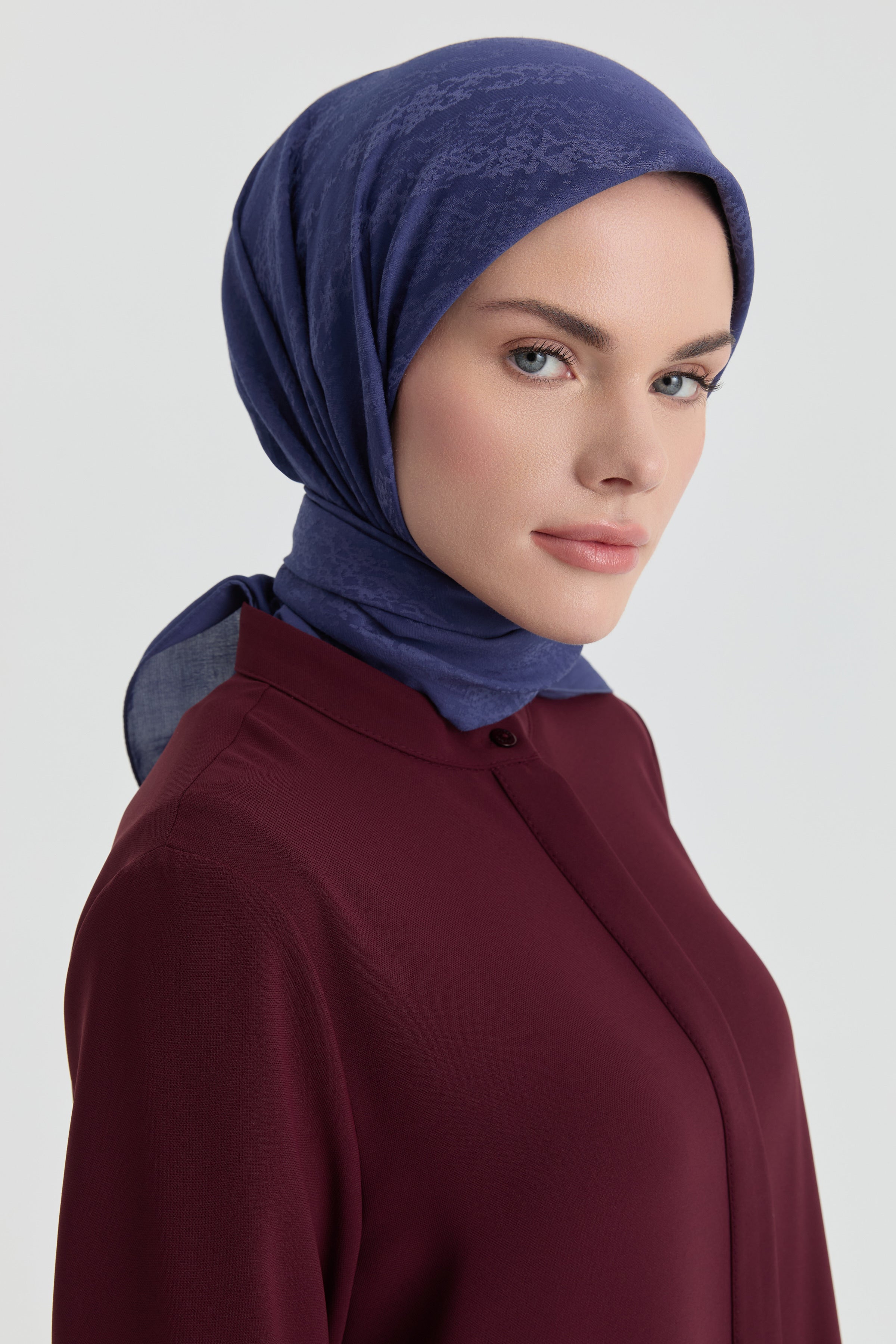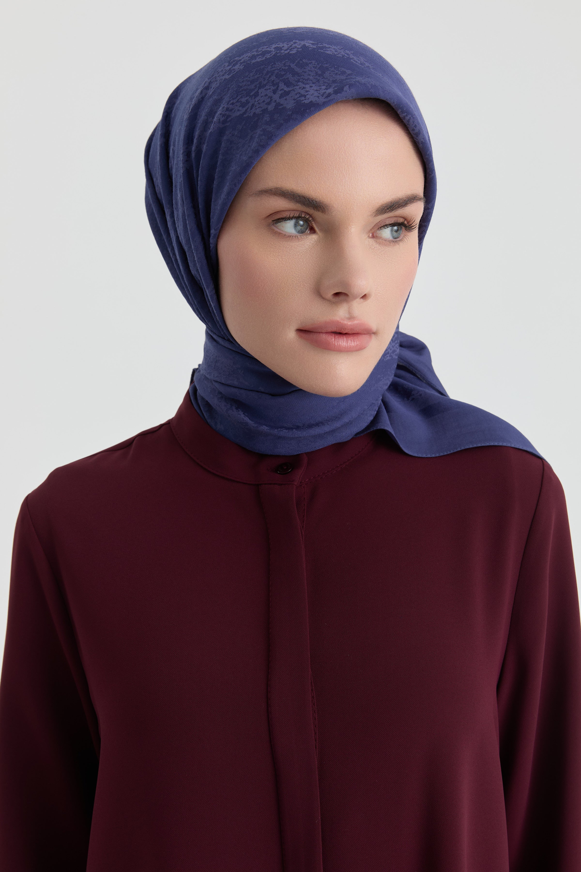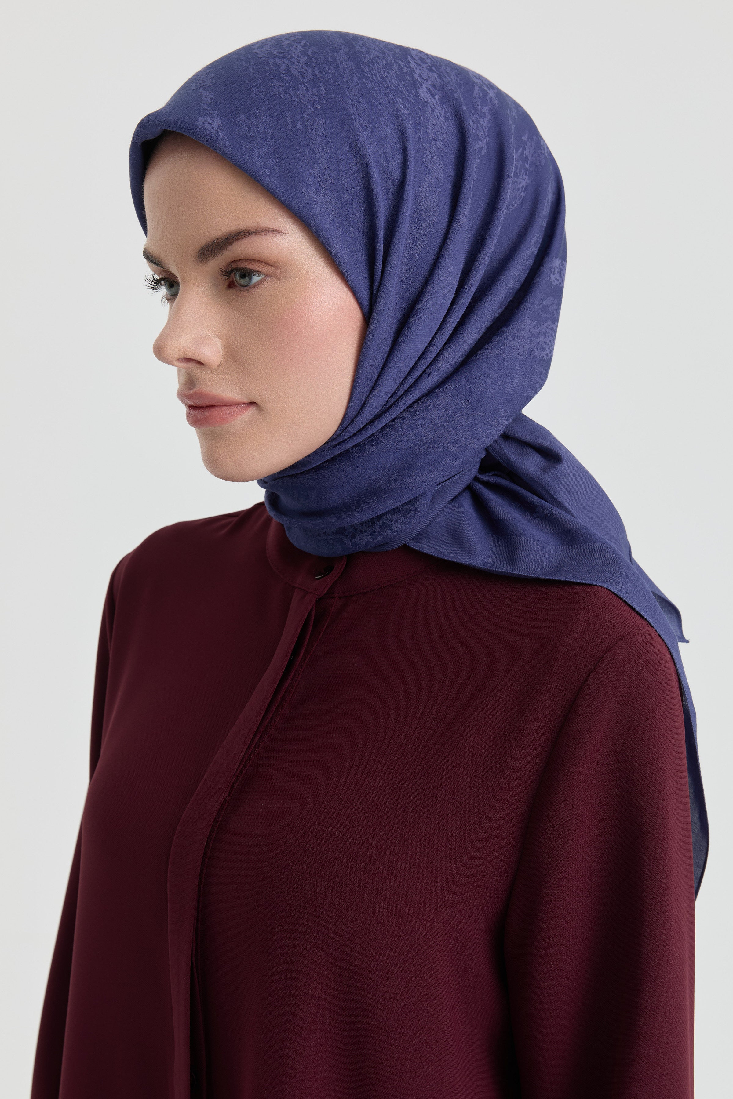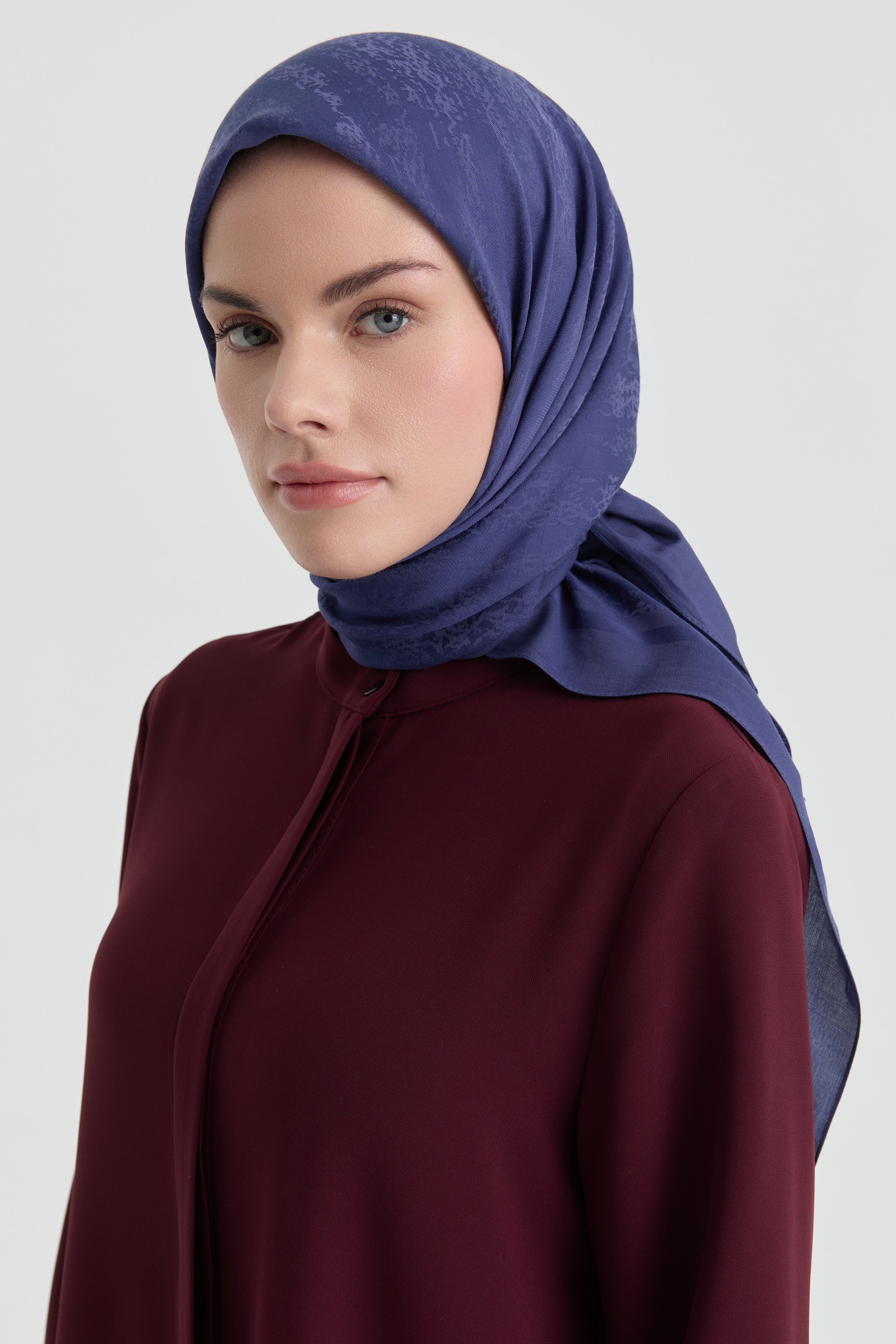 The Efsun Jacquard Scarf emphasizes understated elegance with its delicate patterns. The jacquard weave gives the scarf a slight depth while its matte finish offers a refined look.