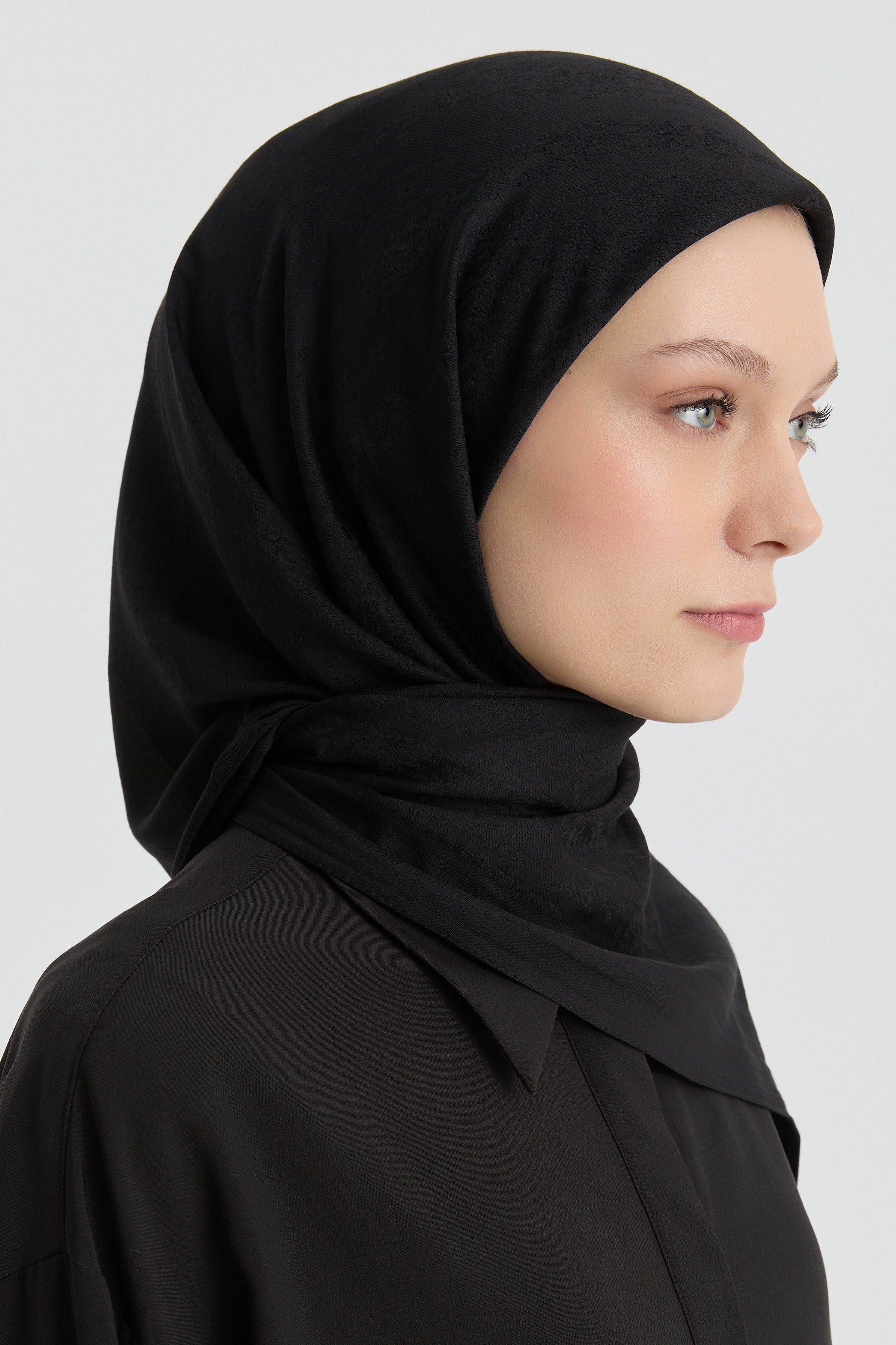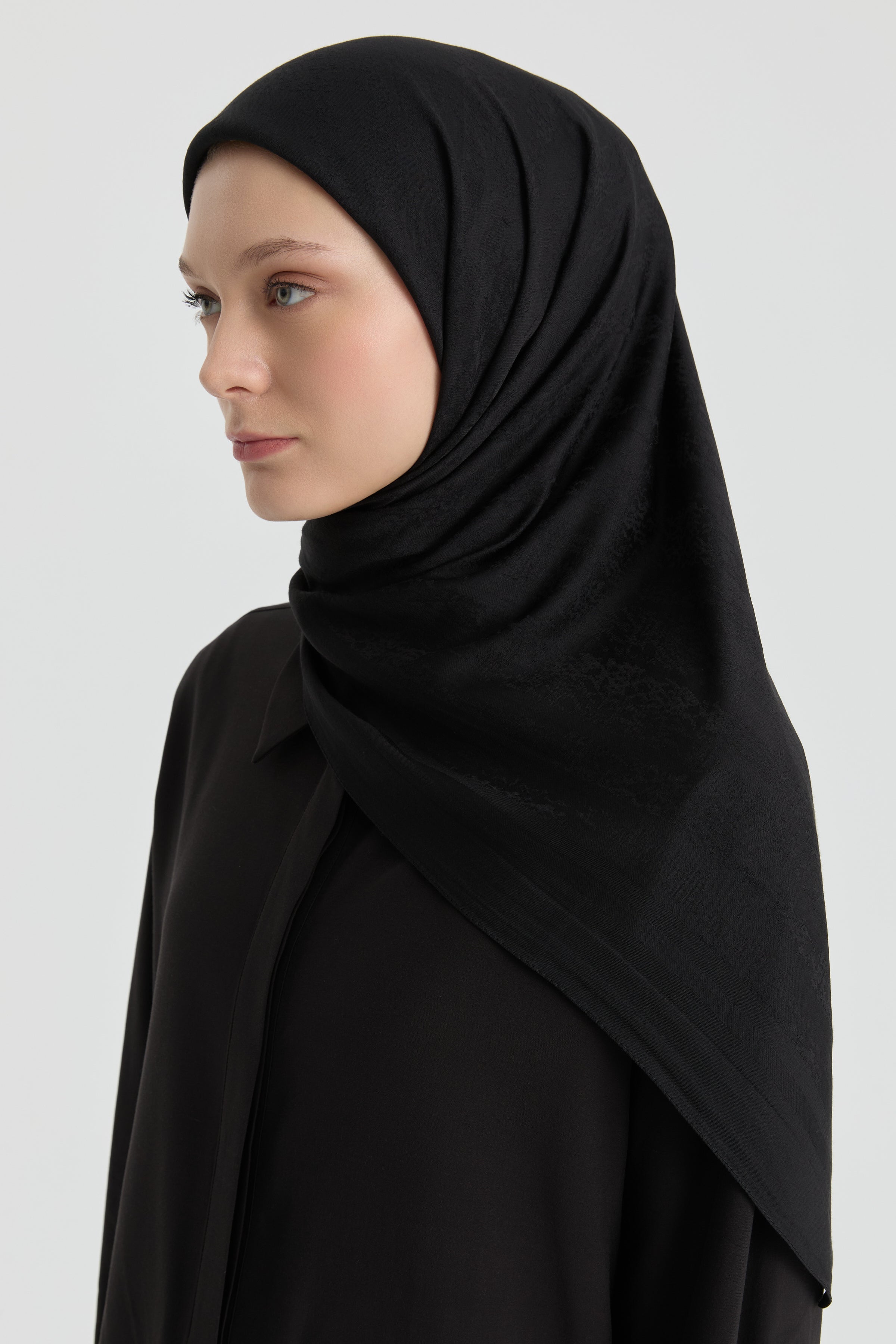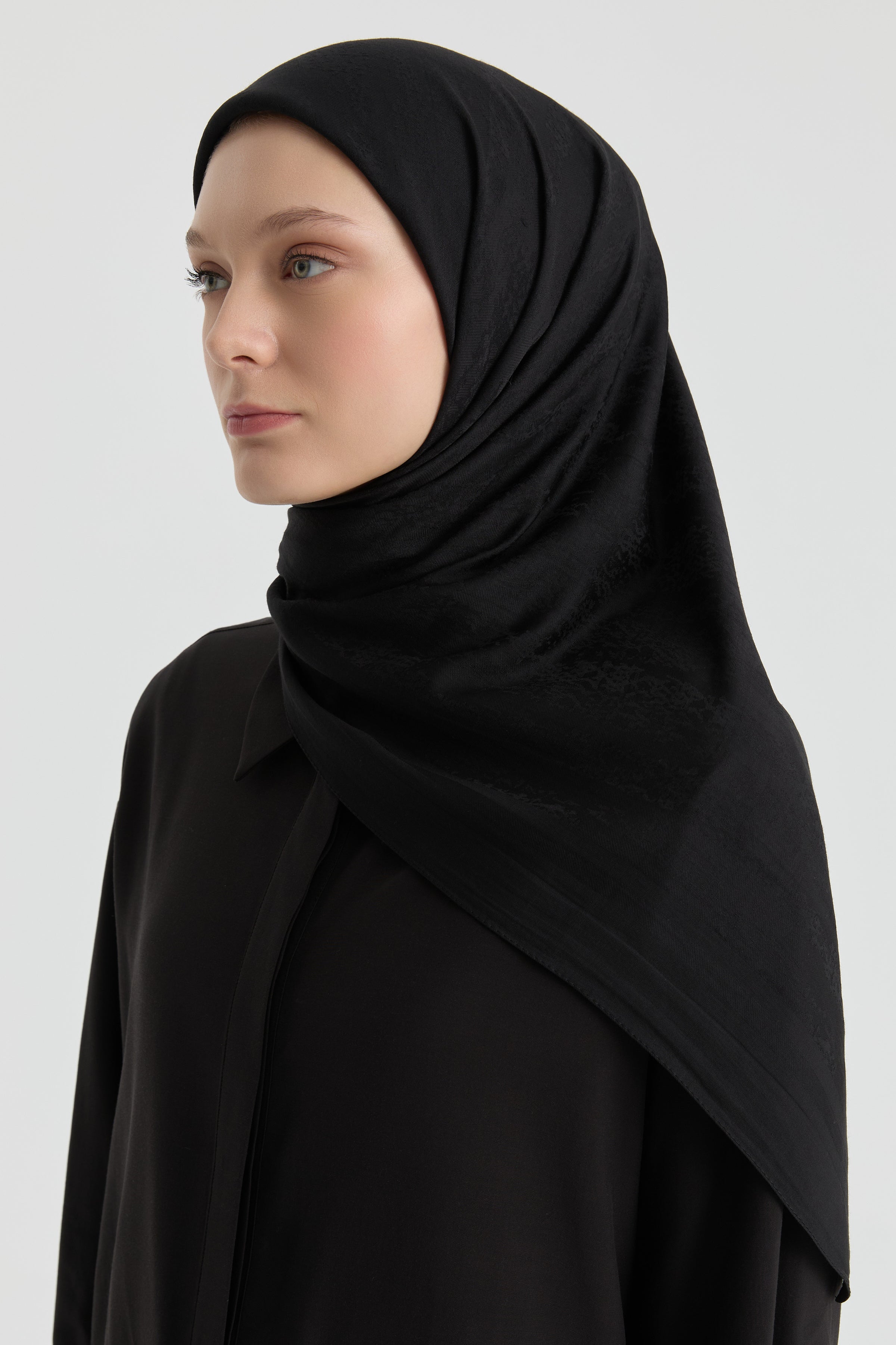 The Efsun Jacquard Scarf emphasizes understated elegance with its delicate patterns. The jacquard weave gives the scarf a slight depth while its matte finish offers a refined look.