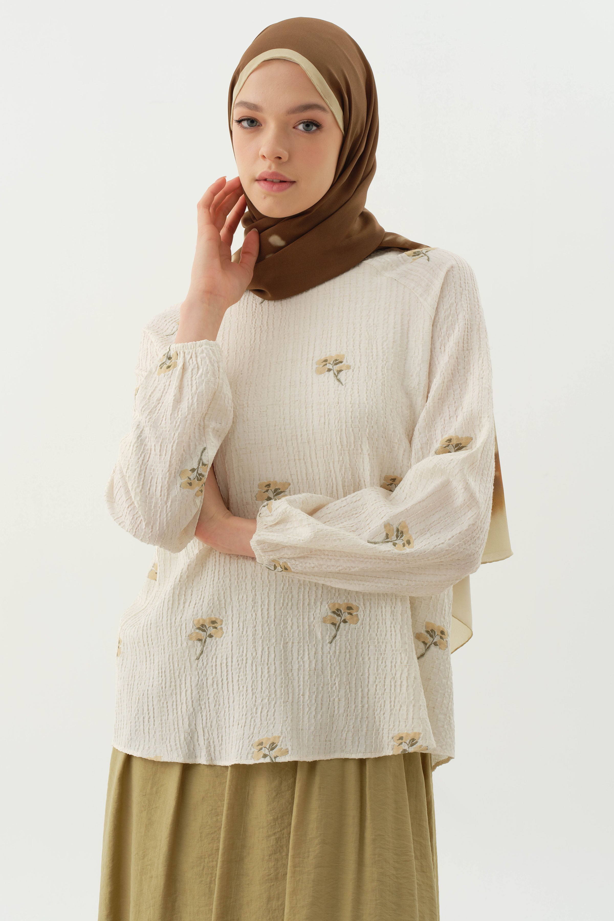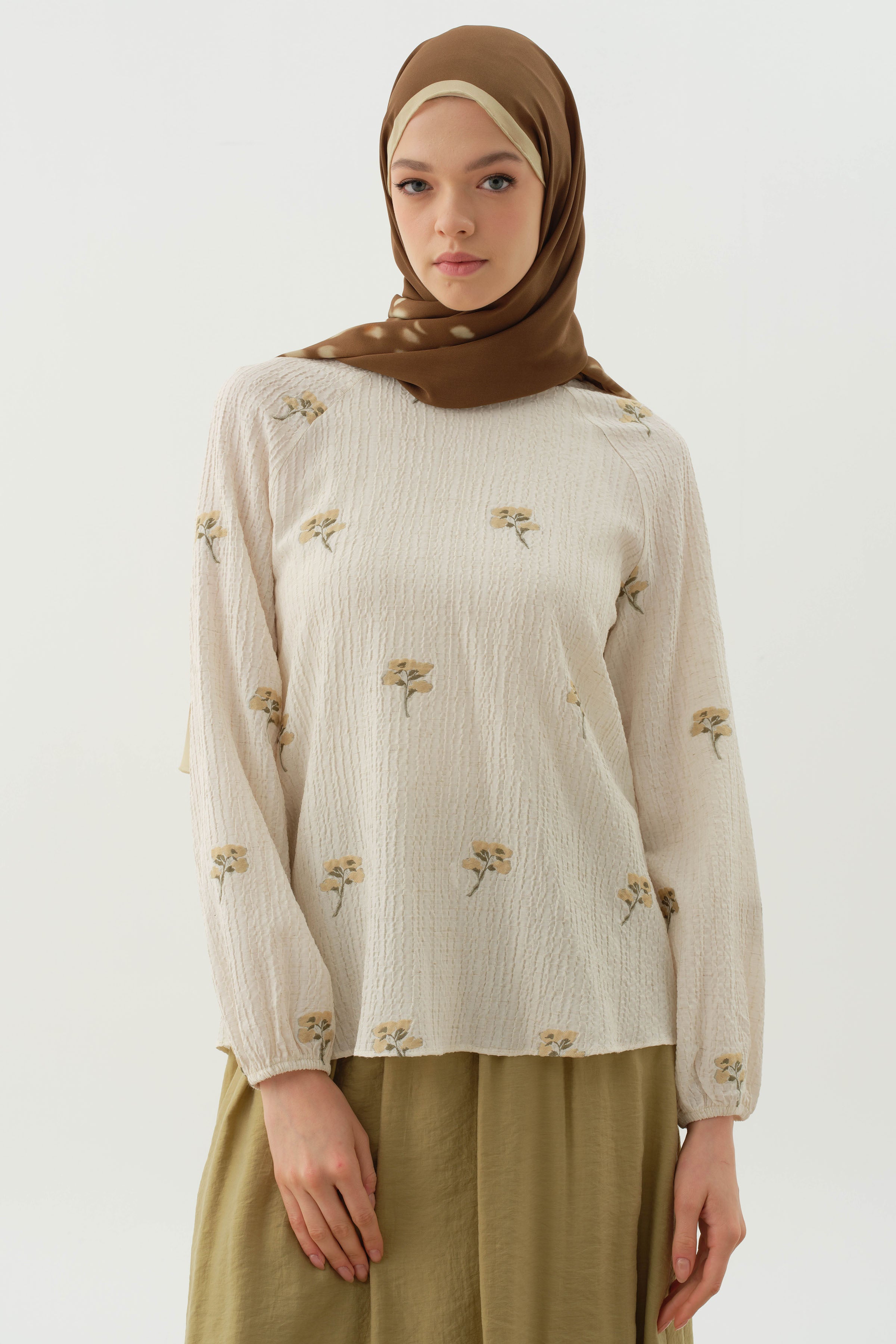 Floral Patterned Blouse - Khaki