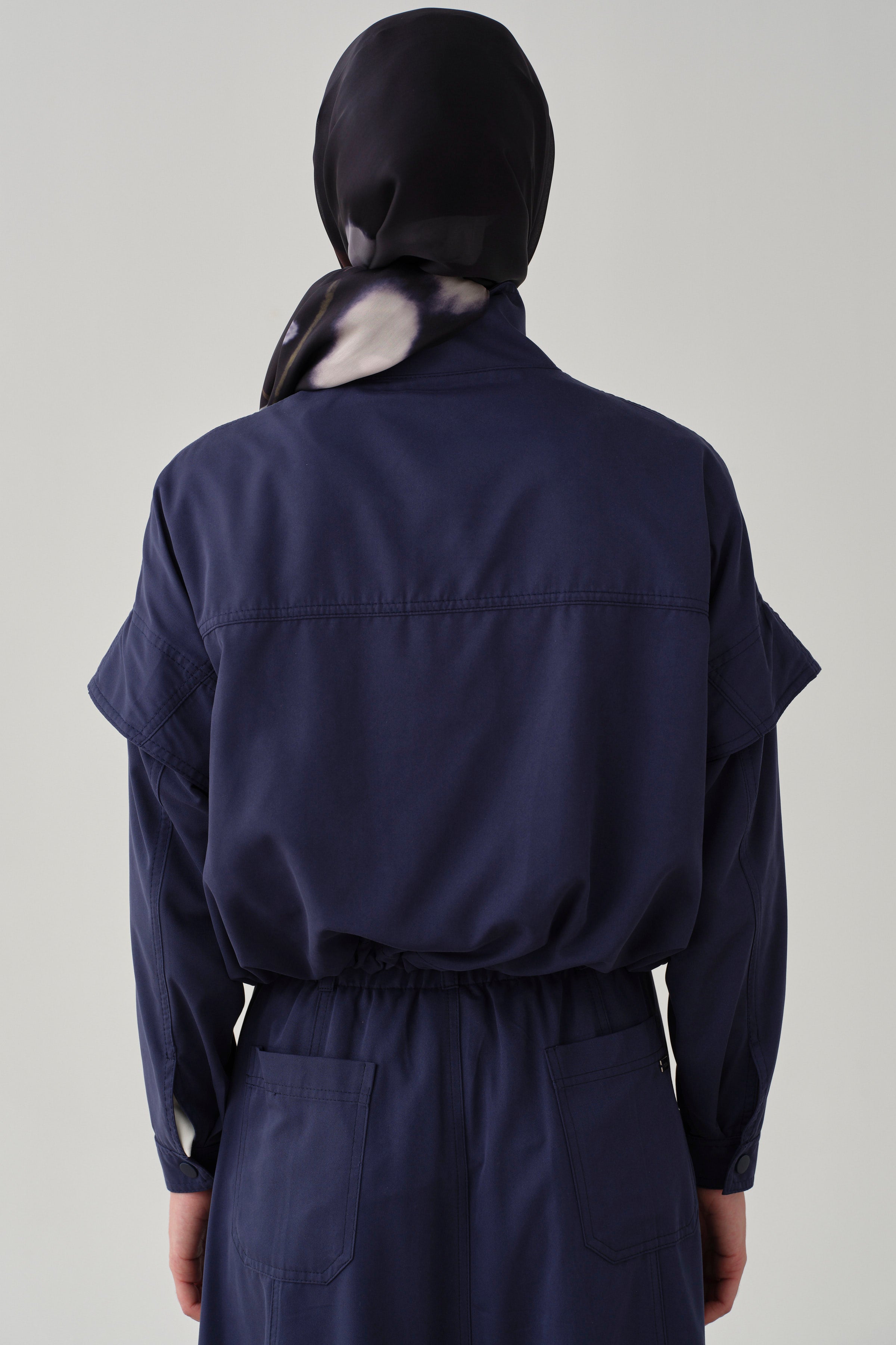 Elastic Waist Crop Jacket - Navy Blue