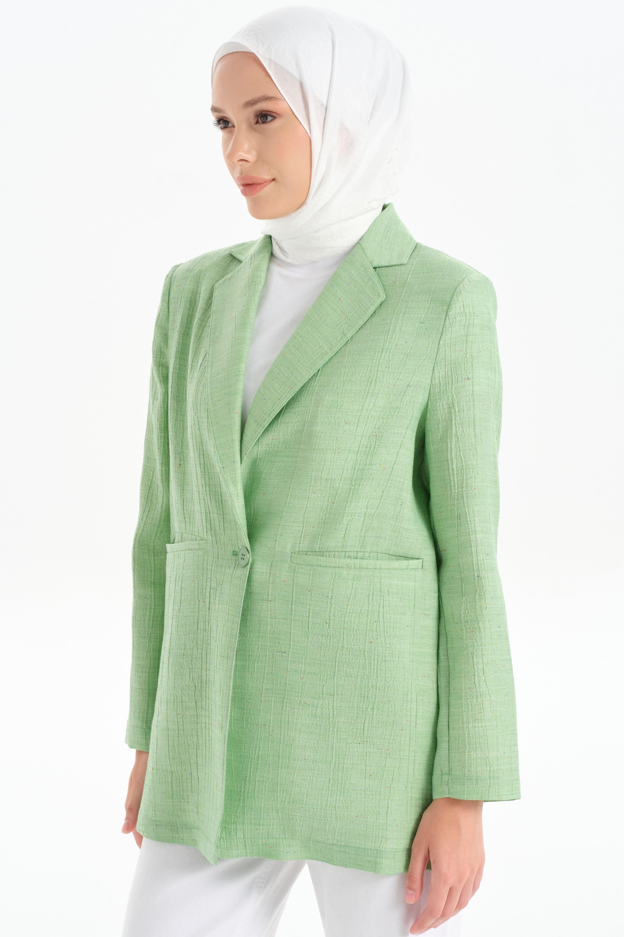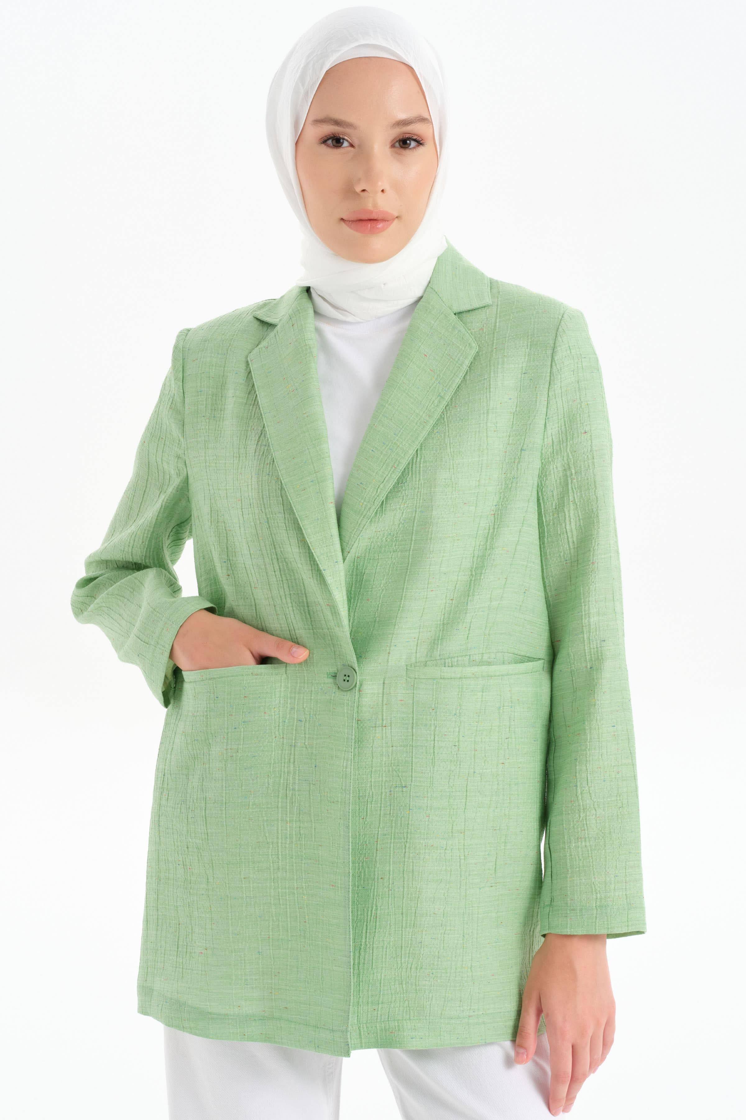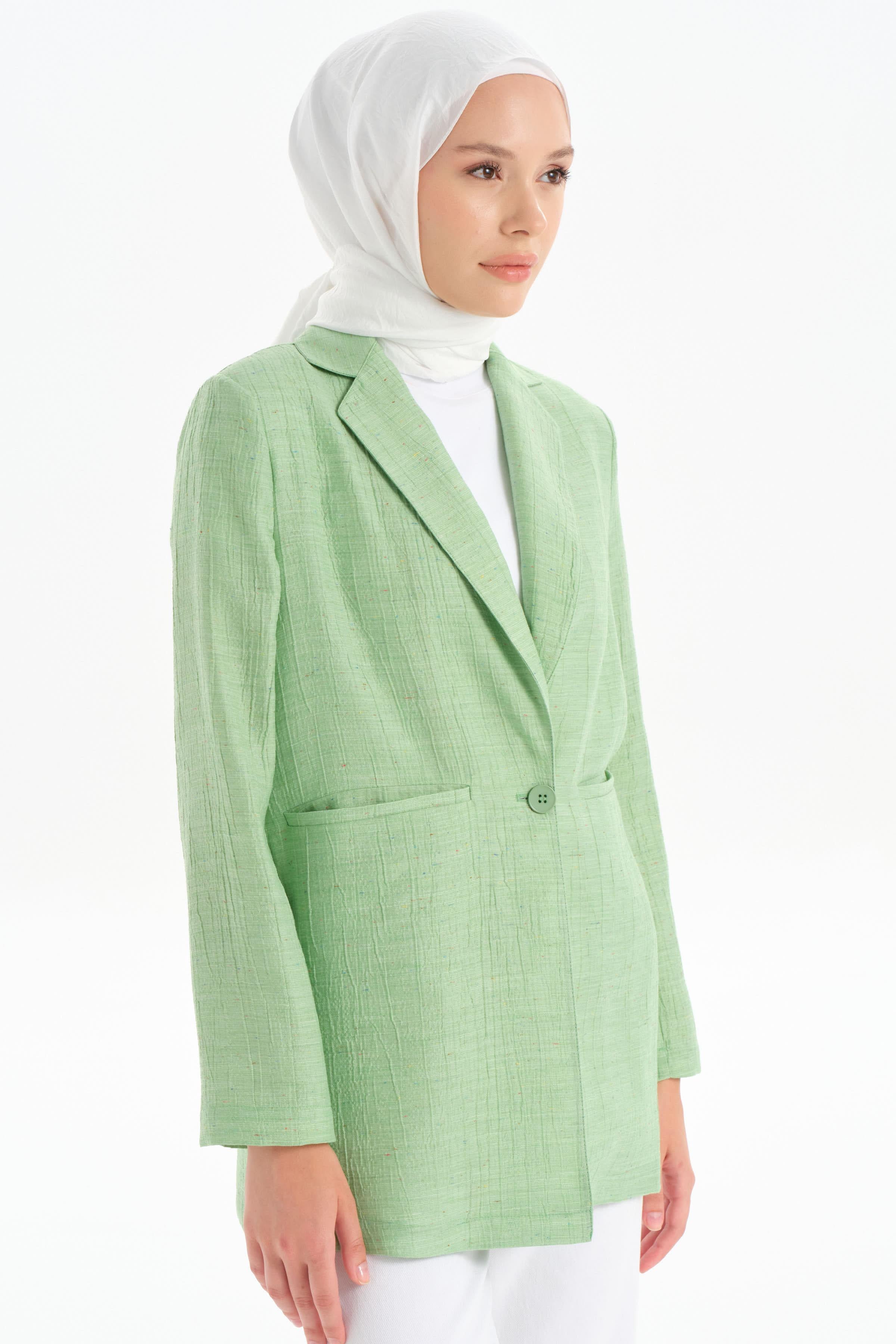 Its single-button design gives the jacket an elegant and minimalist look, and you can create various styles by combining it with different bottoms.