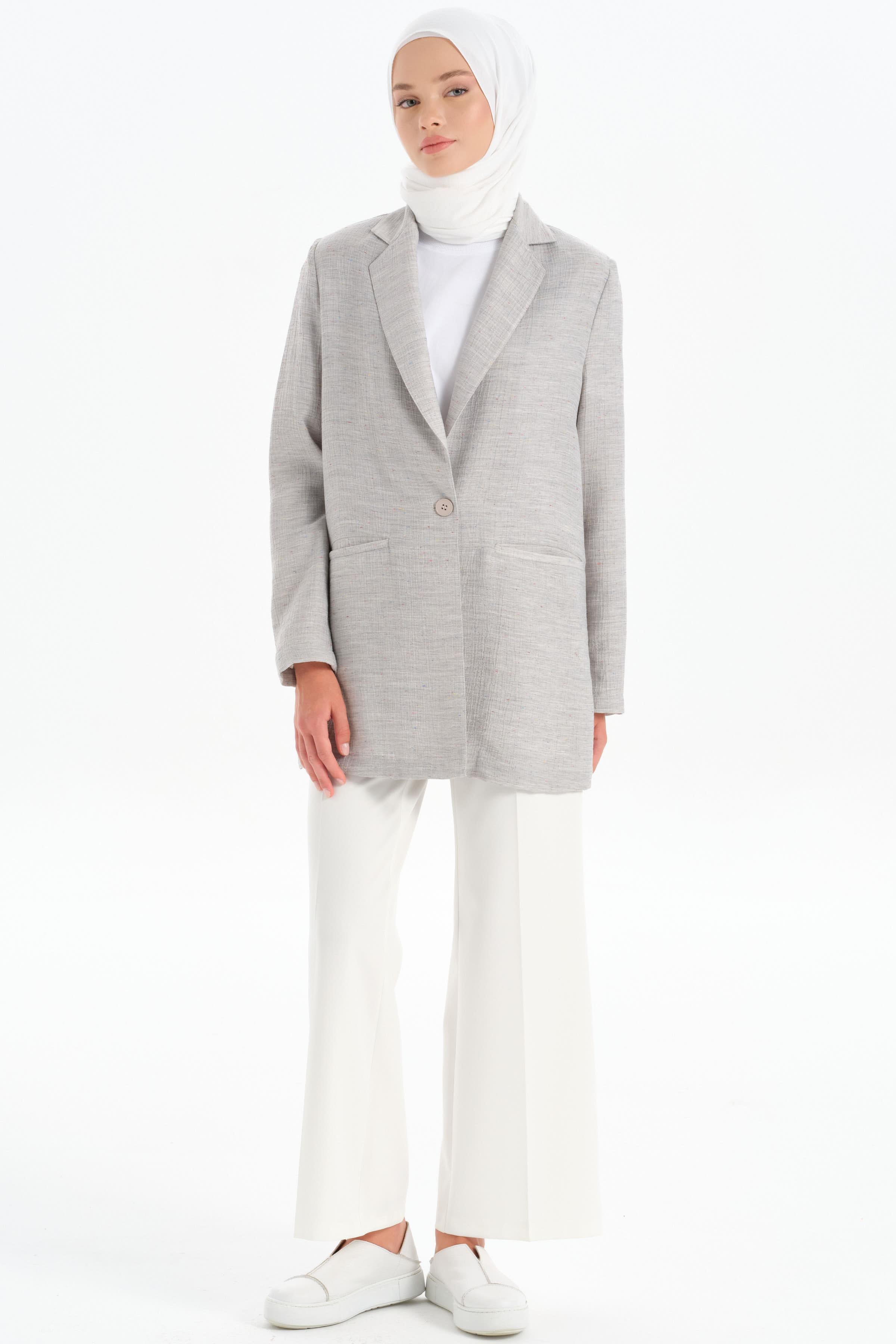 Its single-button design gives the jacket an elegant and minimalist look, and you can create various styles by combining it with different bottoms.