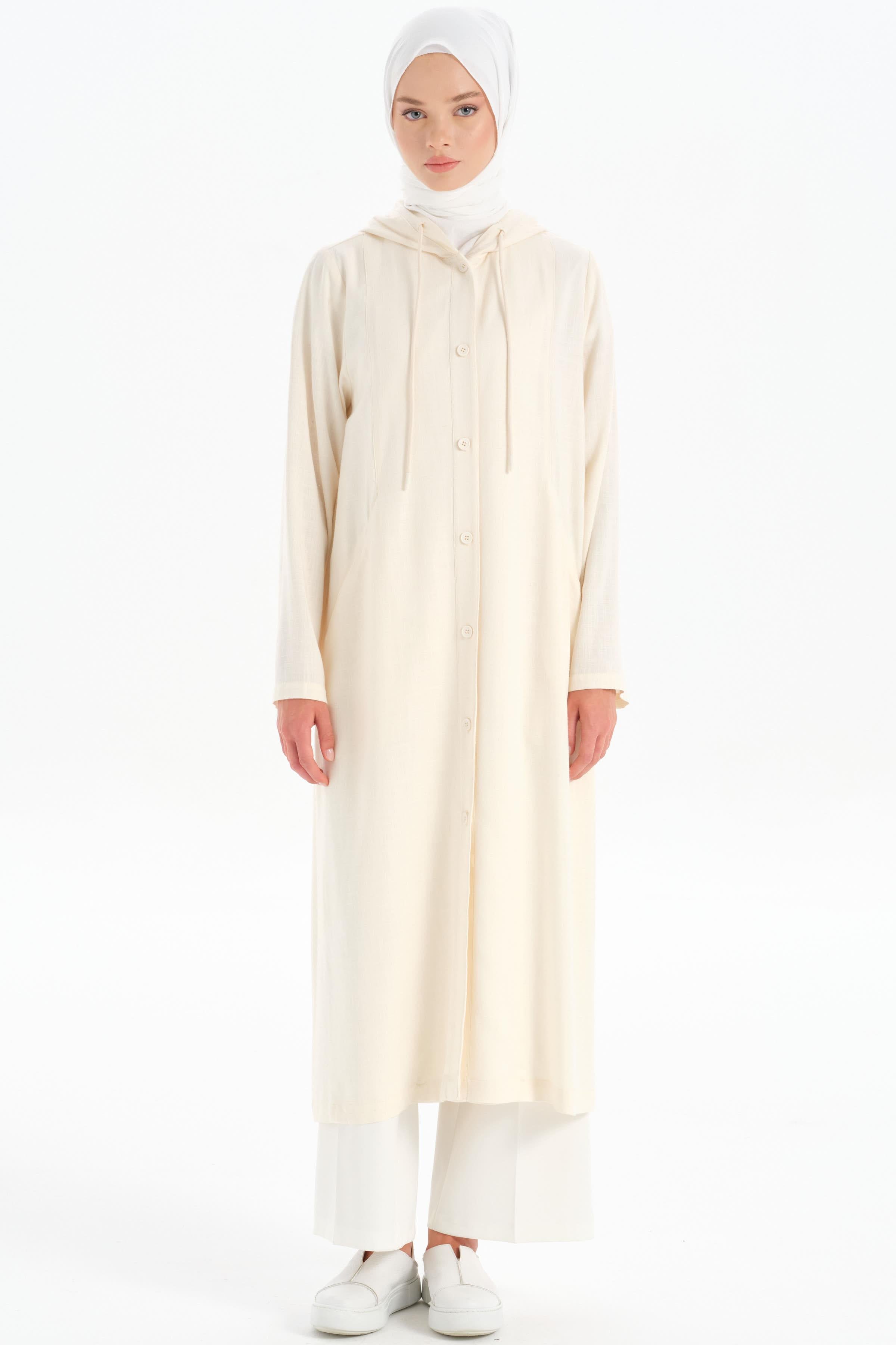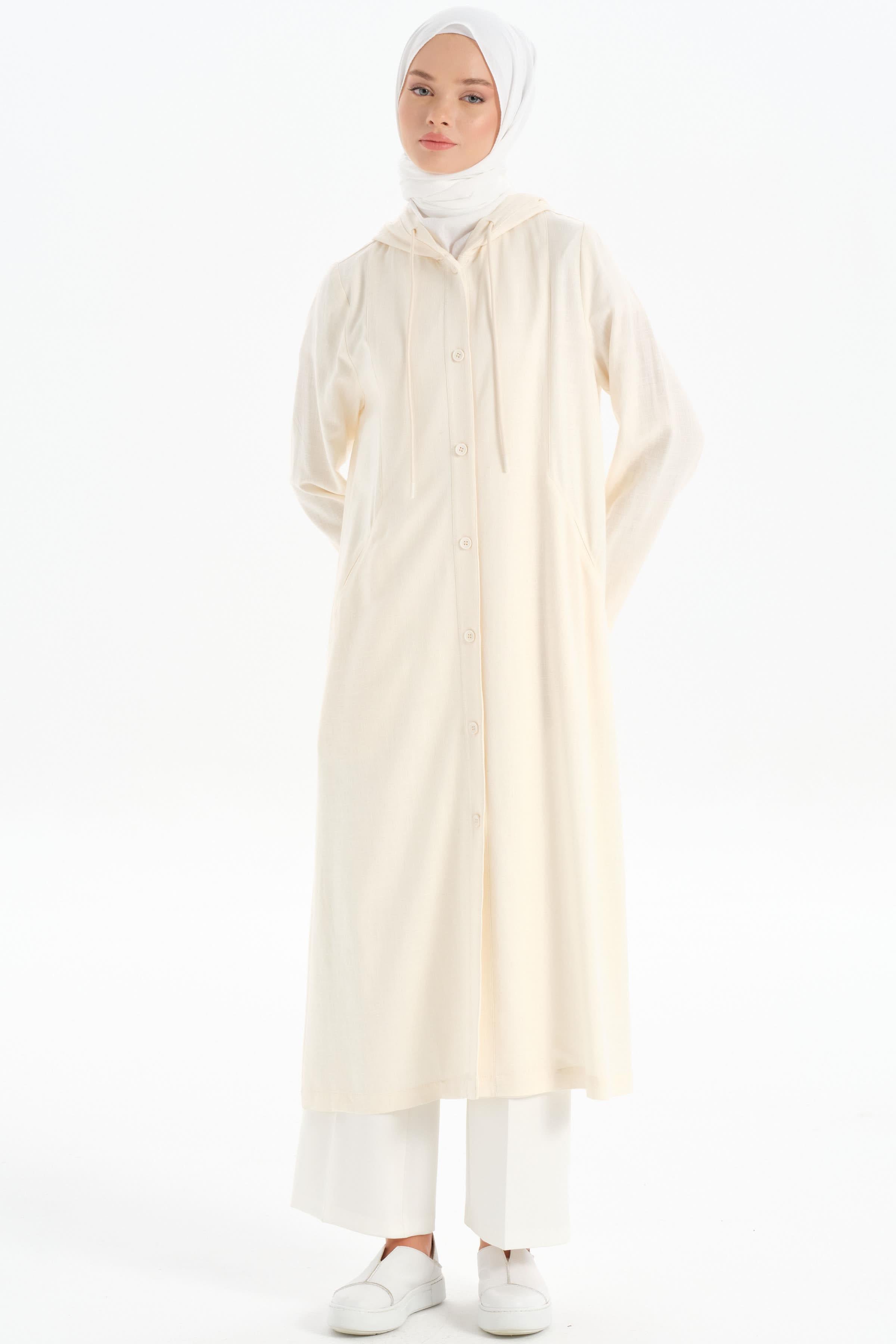 Hooded Elastic Detailed Coat - Ecru