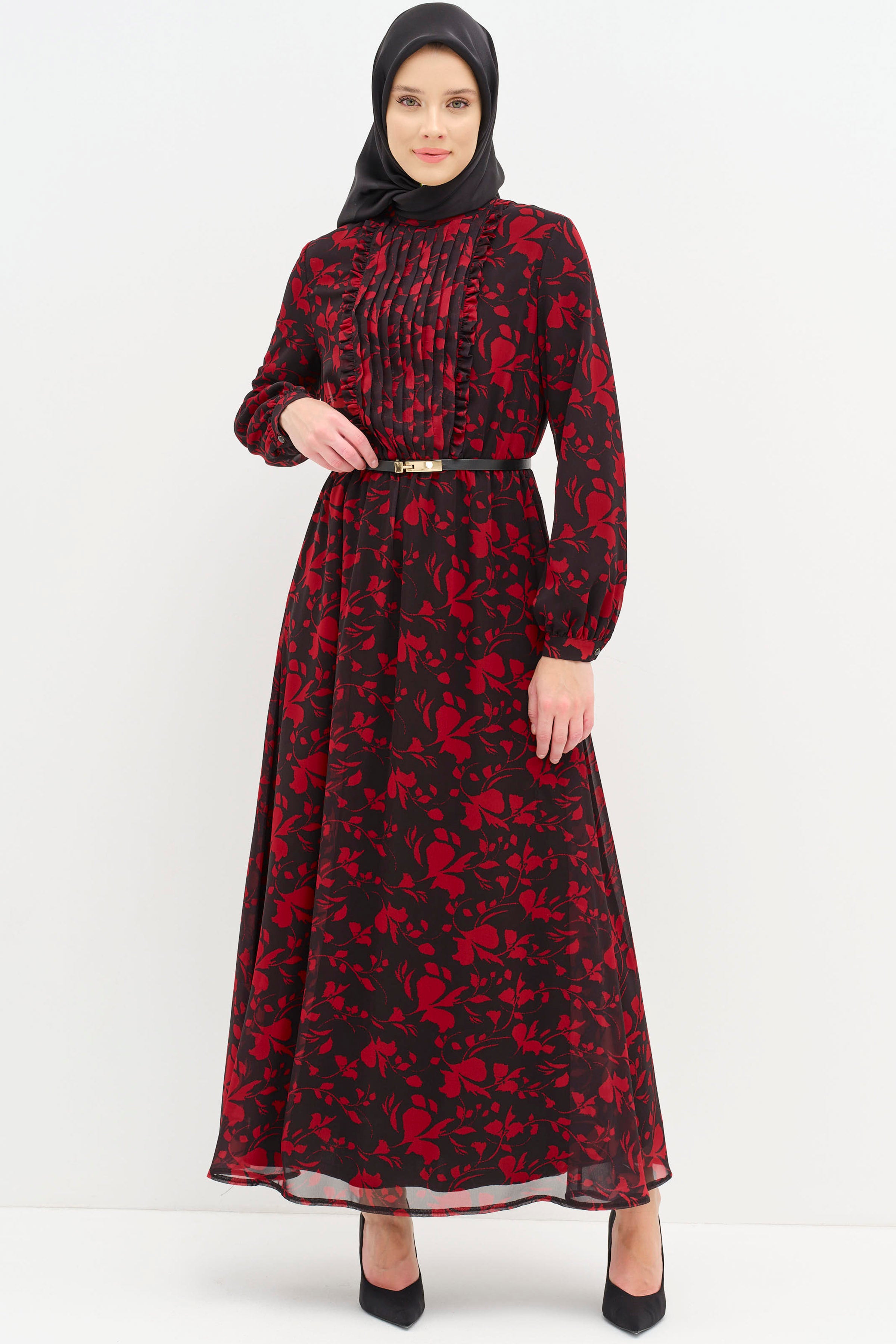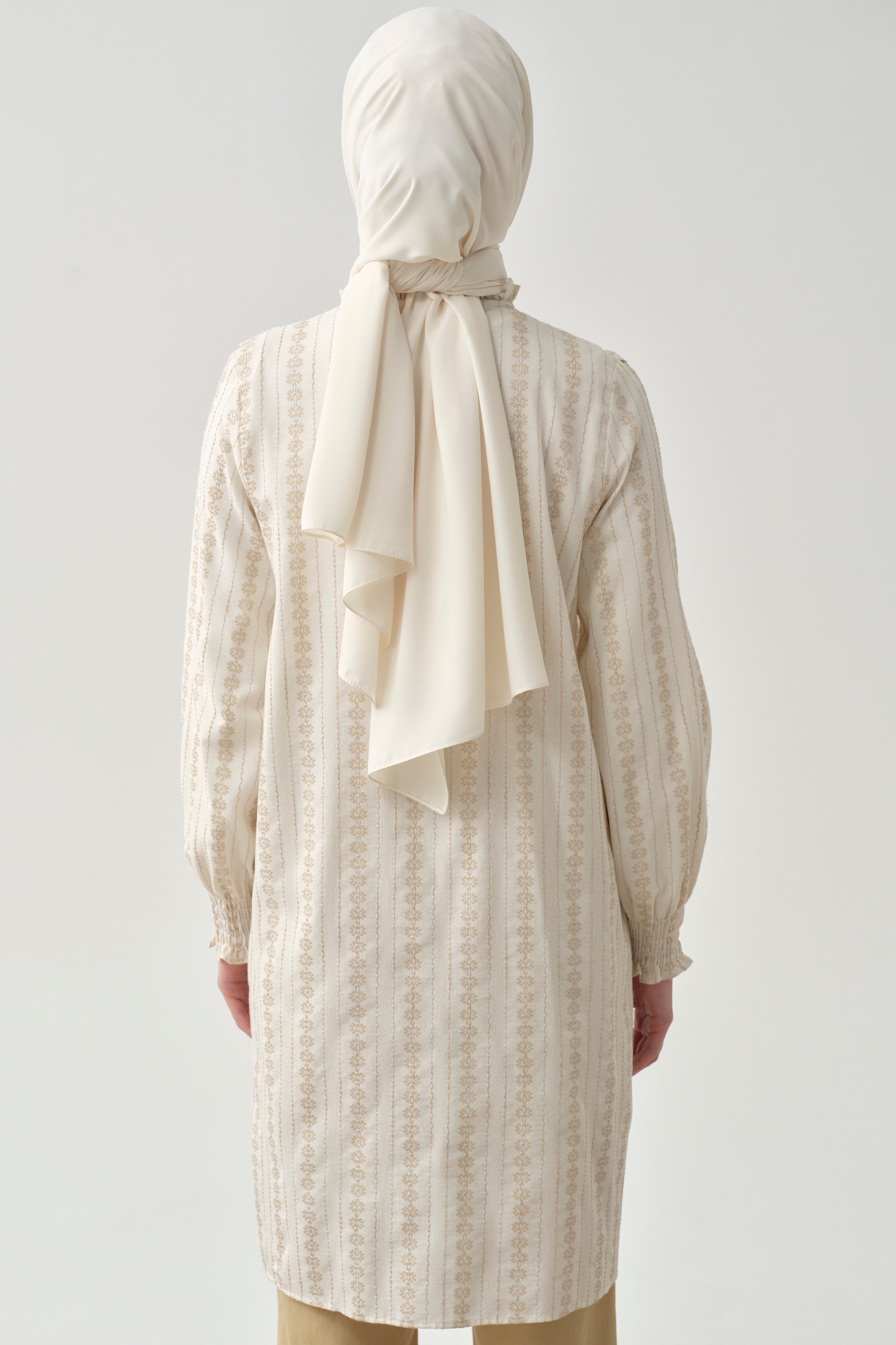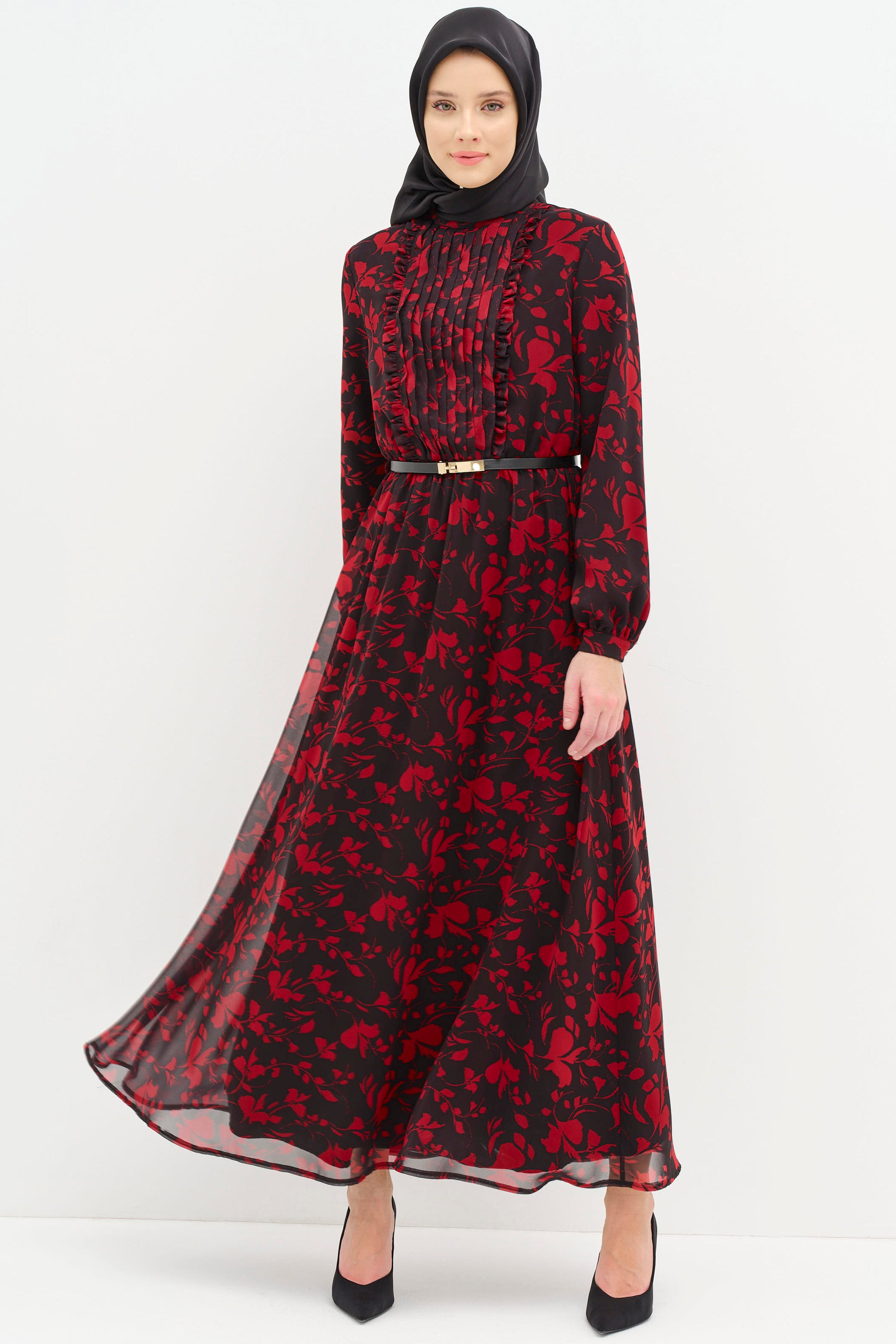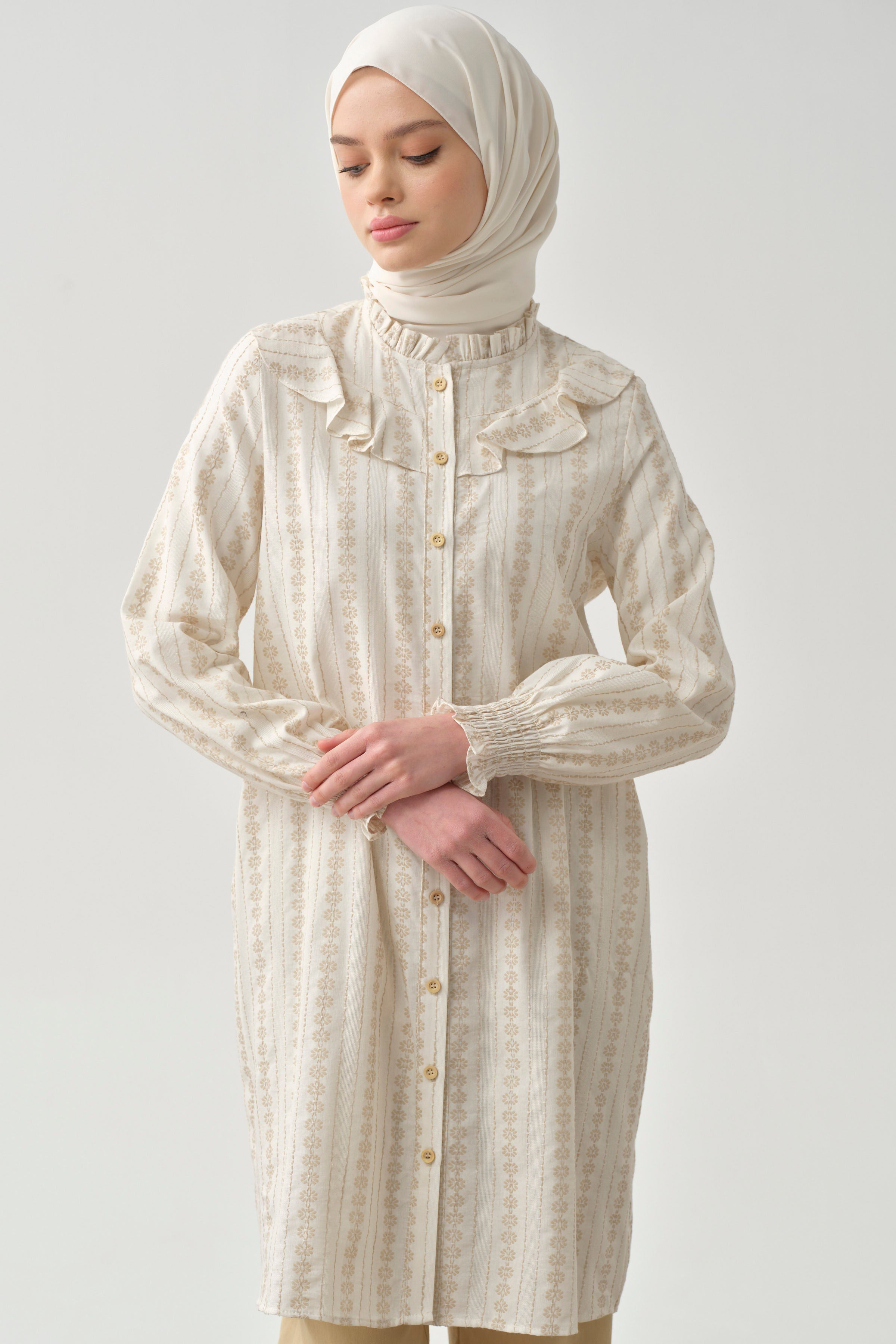 Adorned with ethnic patterns and delicate ruffle details, this dress offers a unique look. Thanks to its comfortable cut and light fabric, it provides freshness even on summer days. While the harmony of ethnic patterns and ruffle details adds an ethnic touch to your style, it also attracts attention with its modern cut.