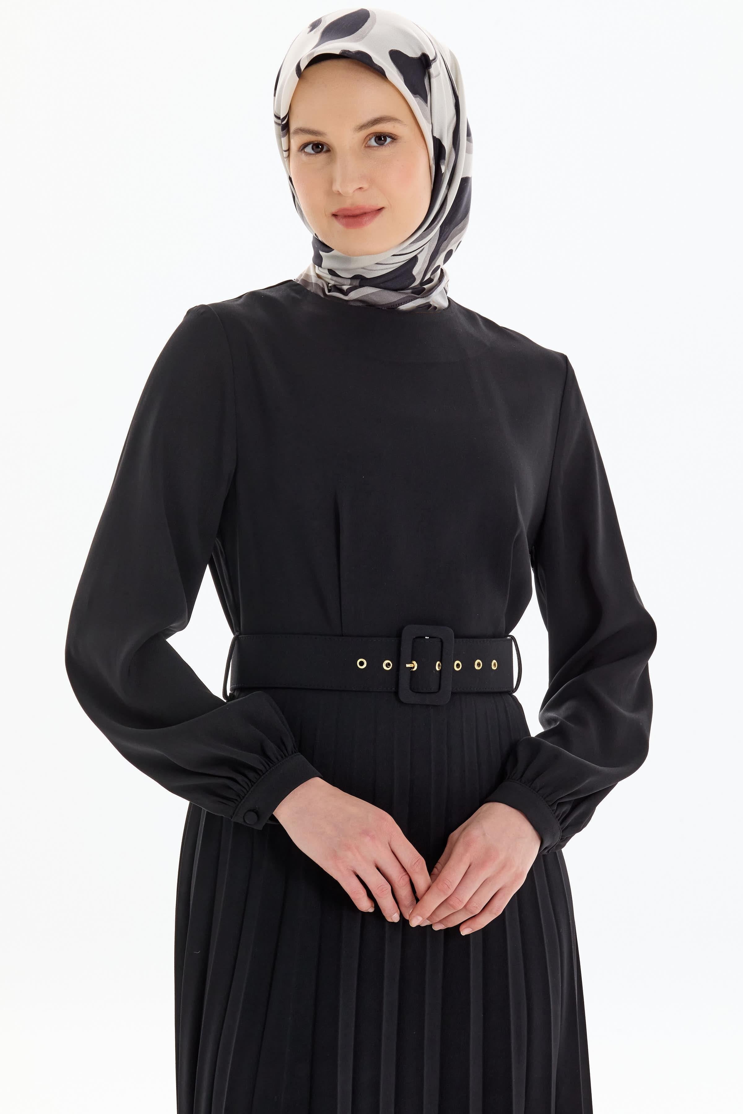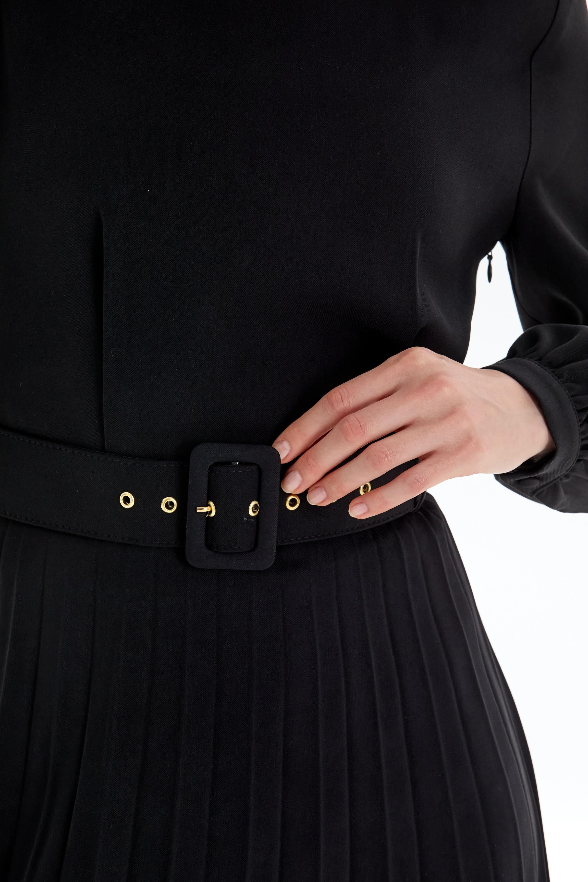 Belted Pleated Skirt Dress, which has a modern design, can be preferred to achieve an elegant and stylish look at special invitations and events.