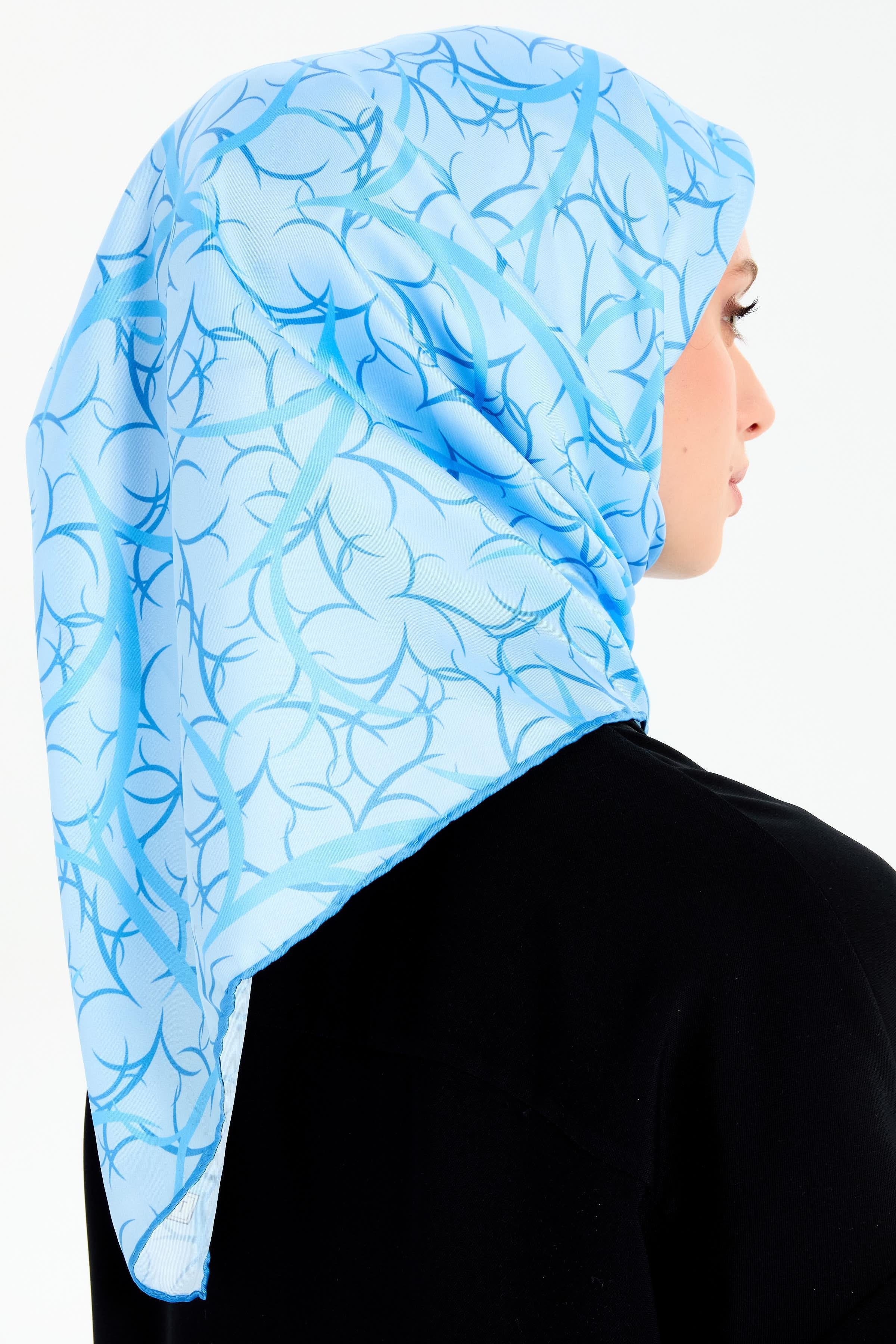Floral Jacquard Nida Natural Scarf - Navy Blue